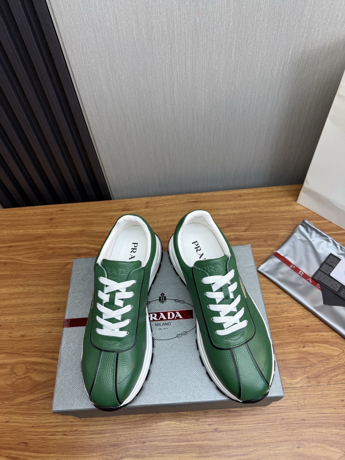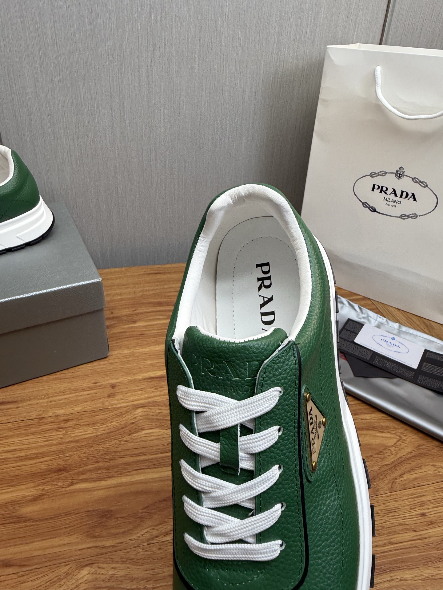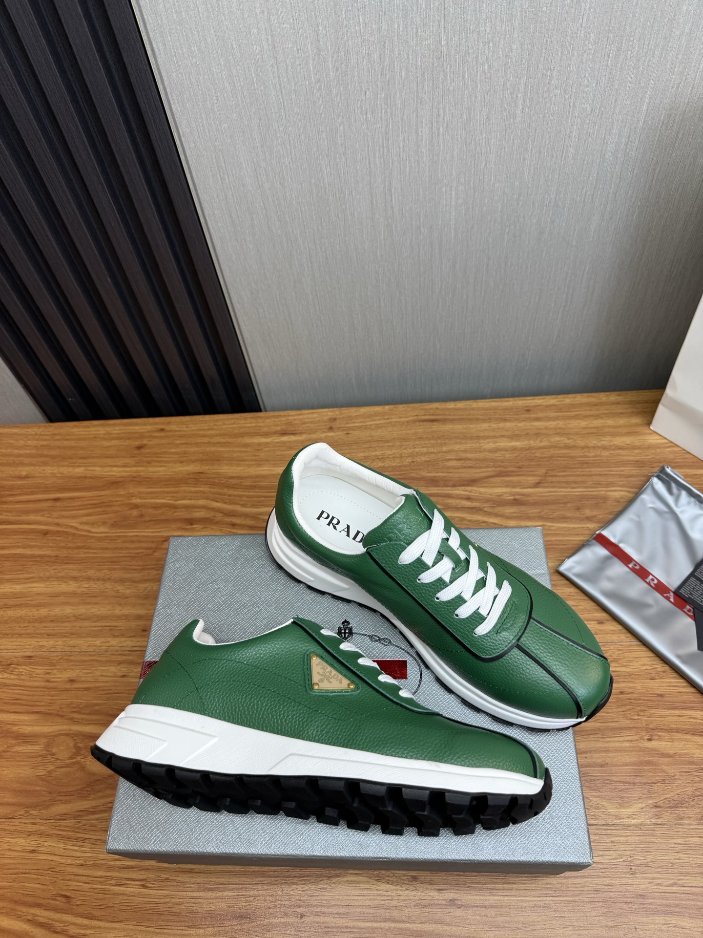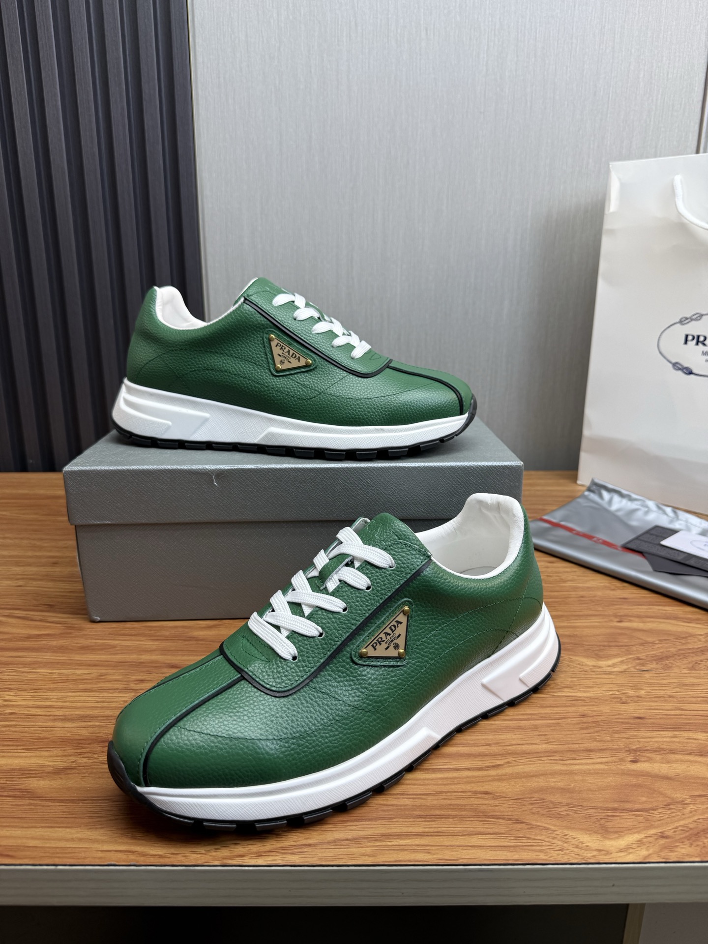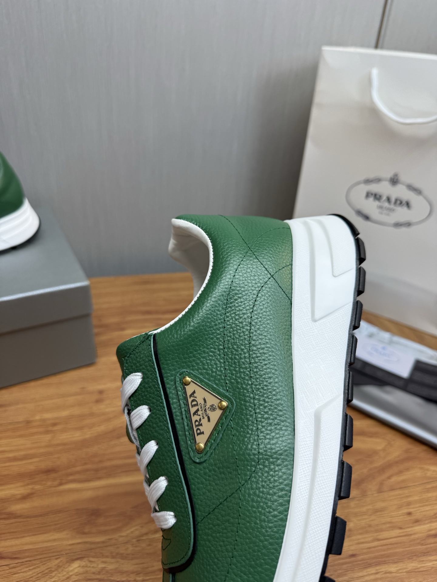 这款鞋子是AAAAA 1:1 质量 (非常棒). 使用了和原版一模一样的材料. 商标部分也保持了和普拉达/Prada一样. 图片拍摄是实物鞋子拍摄, 您所收到的实物保证和我们图片一模一样.