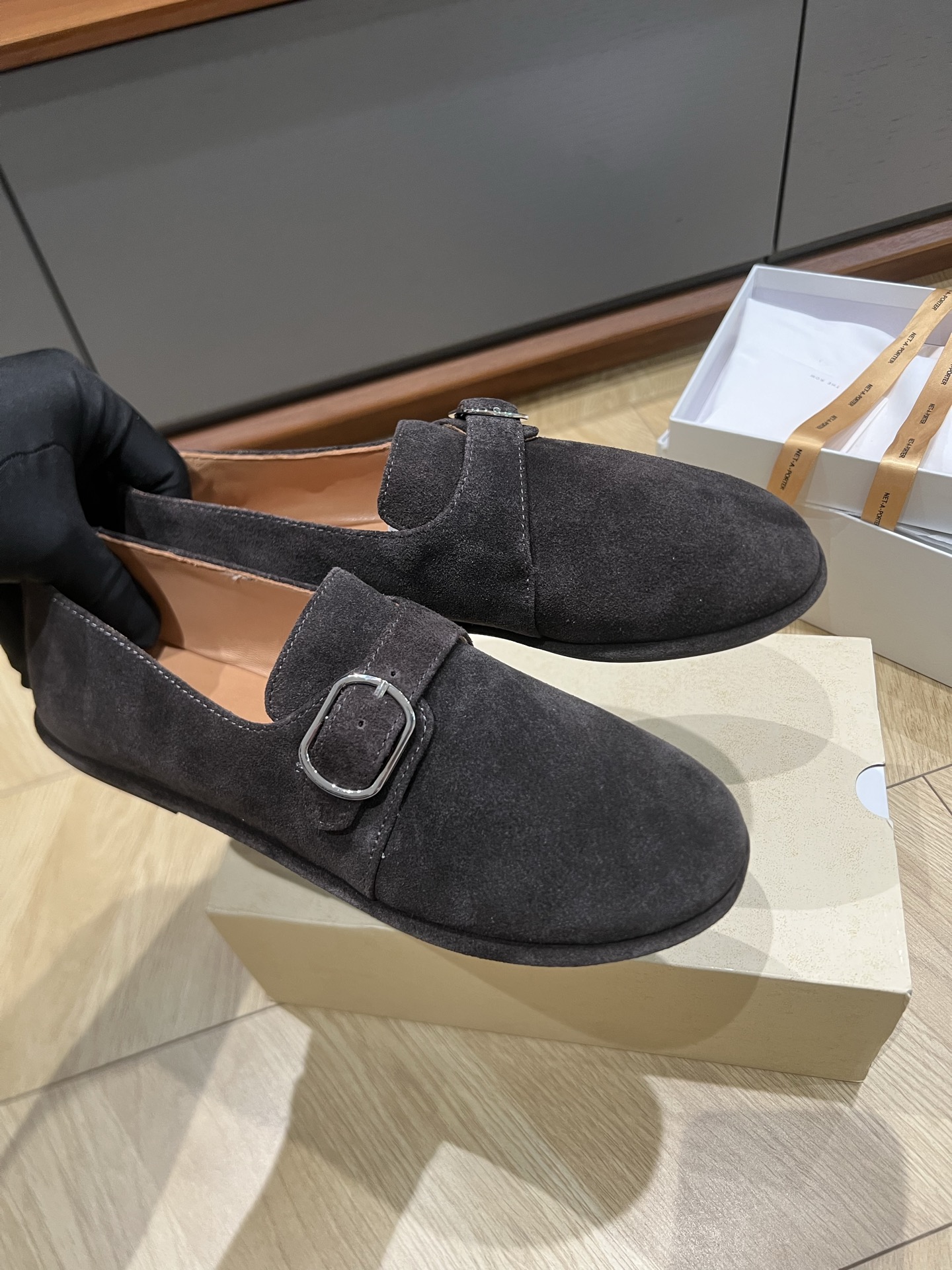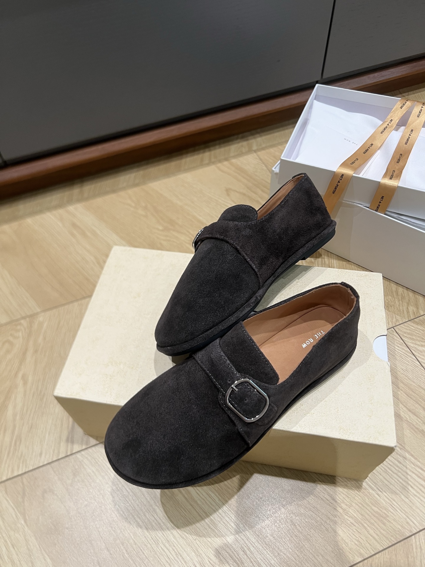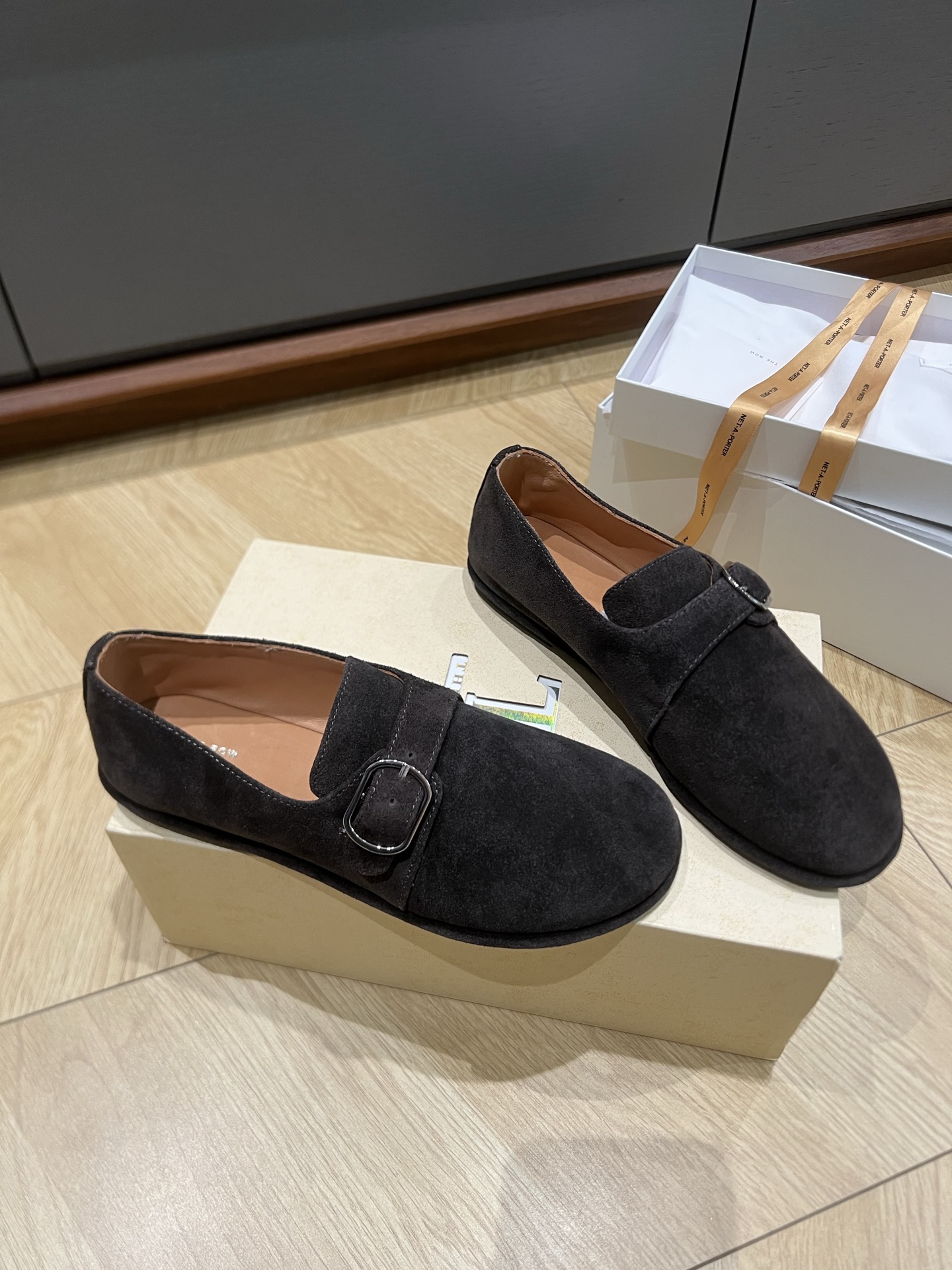 这款鞋子是AAAAA 1:1 质量 (非常棒). 使用了和原版一模一样的材料. 商标部分也保持了和The Row一样. 图片拍摄是实物鞋子拍摄, 您所收到的实物保证和我们图片一模一样.