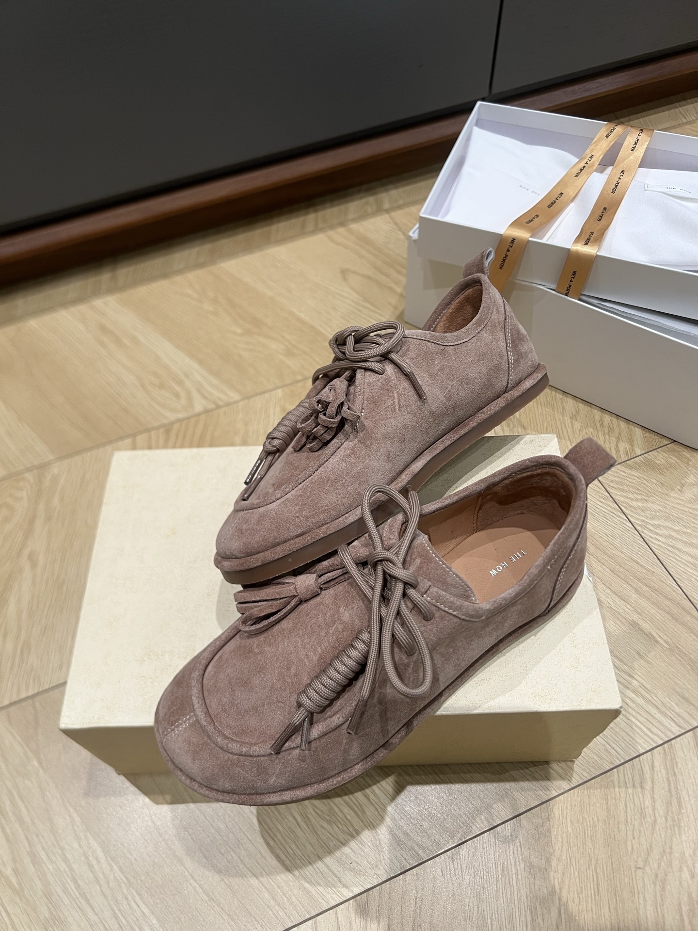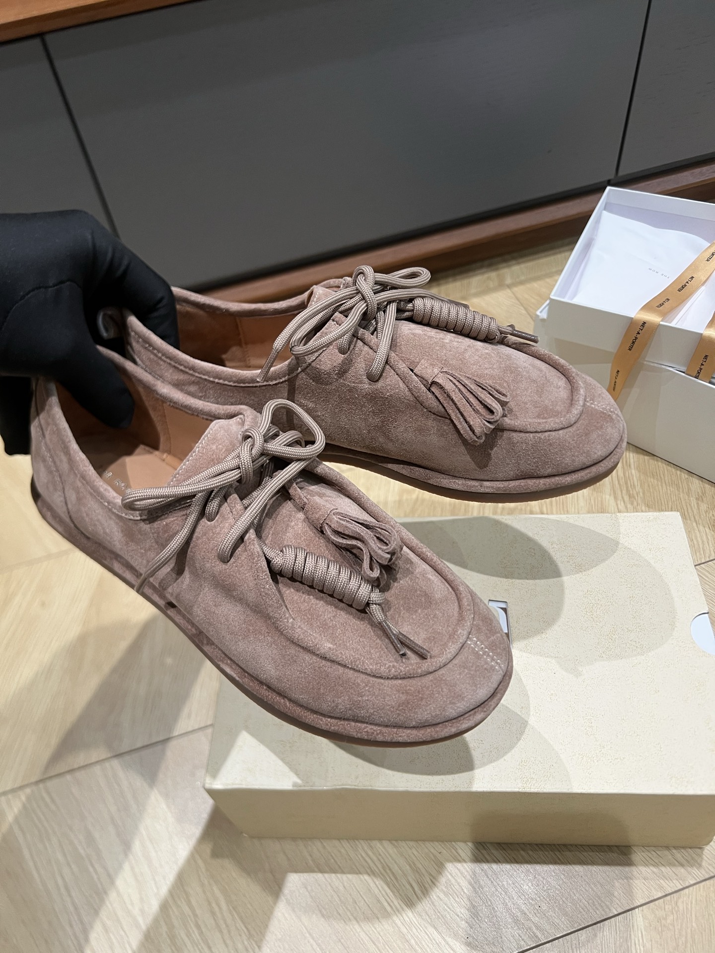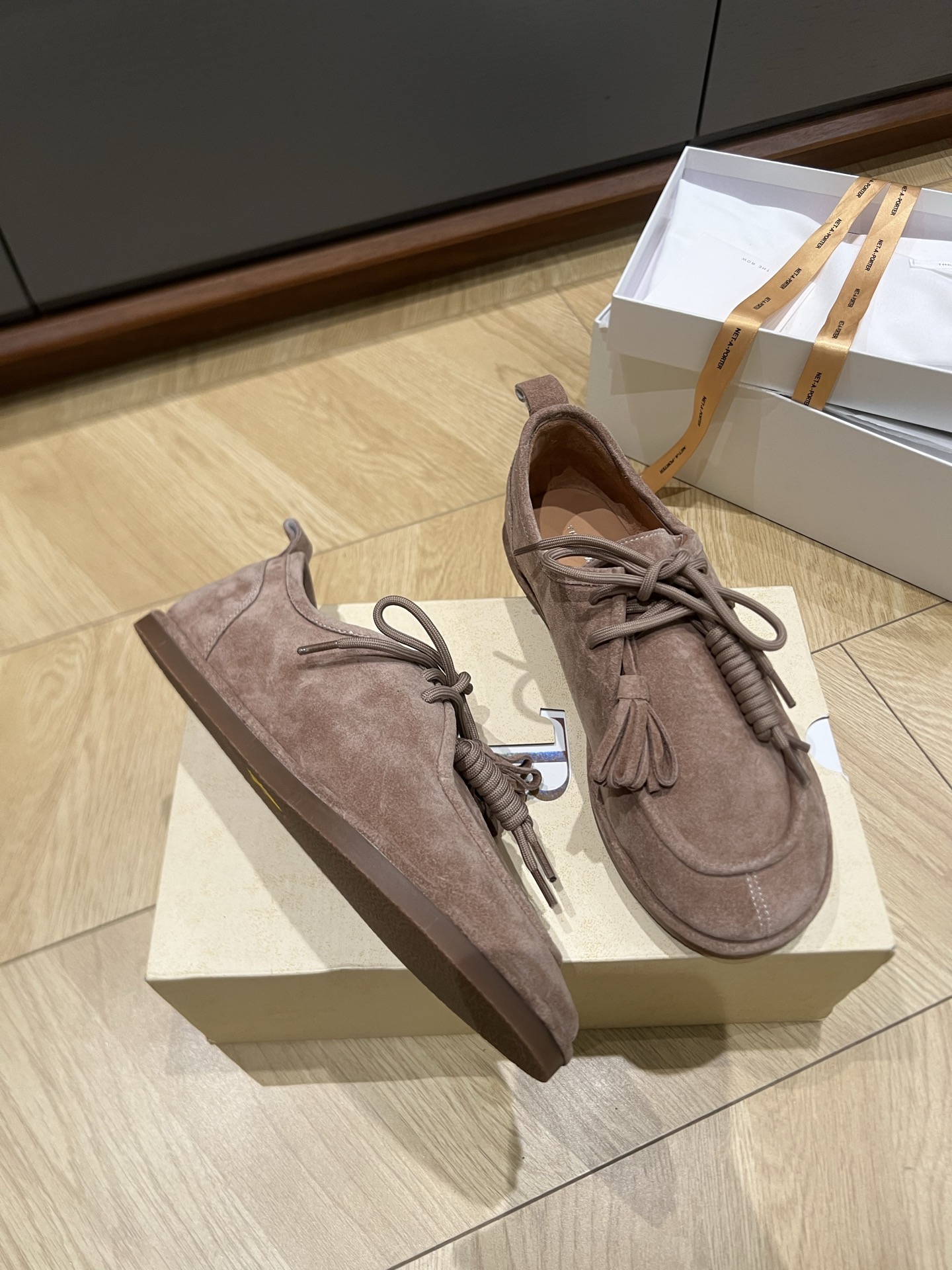 这款鞋子是AAAAA 1:1 质量 (非常棒). 使用了和原版一模一样的材料. 商标部分也保持了和The Row一样. 图片拍摄是实物鞋子拍摄, 您所收到的实物保证和我们图片一模一样.