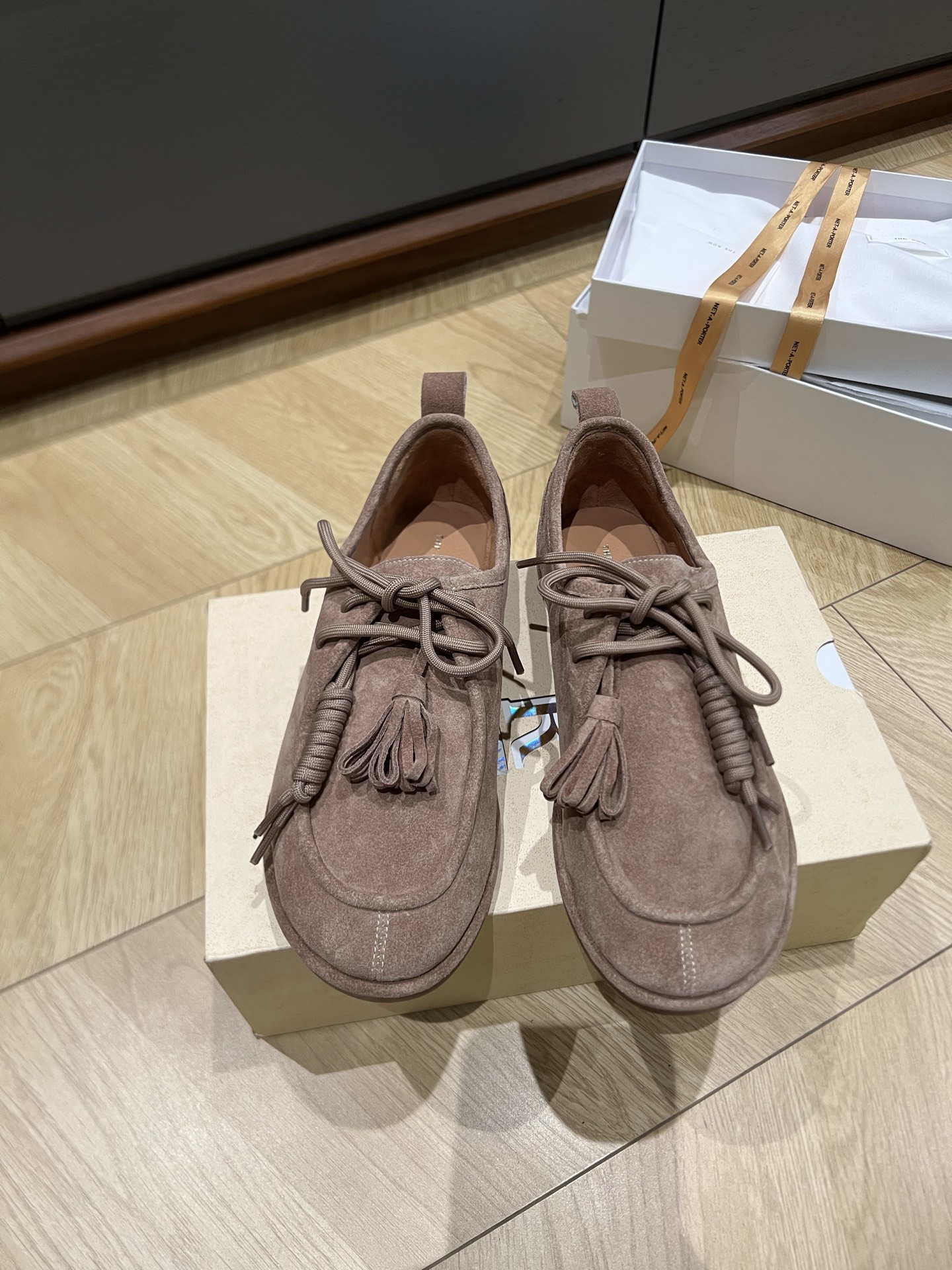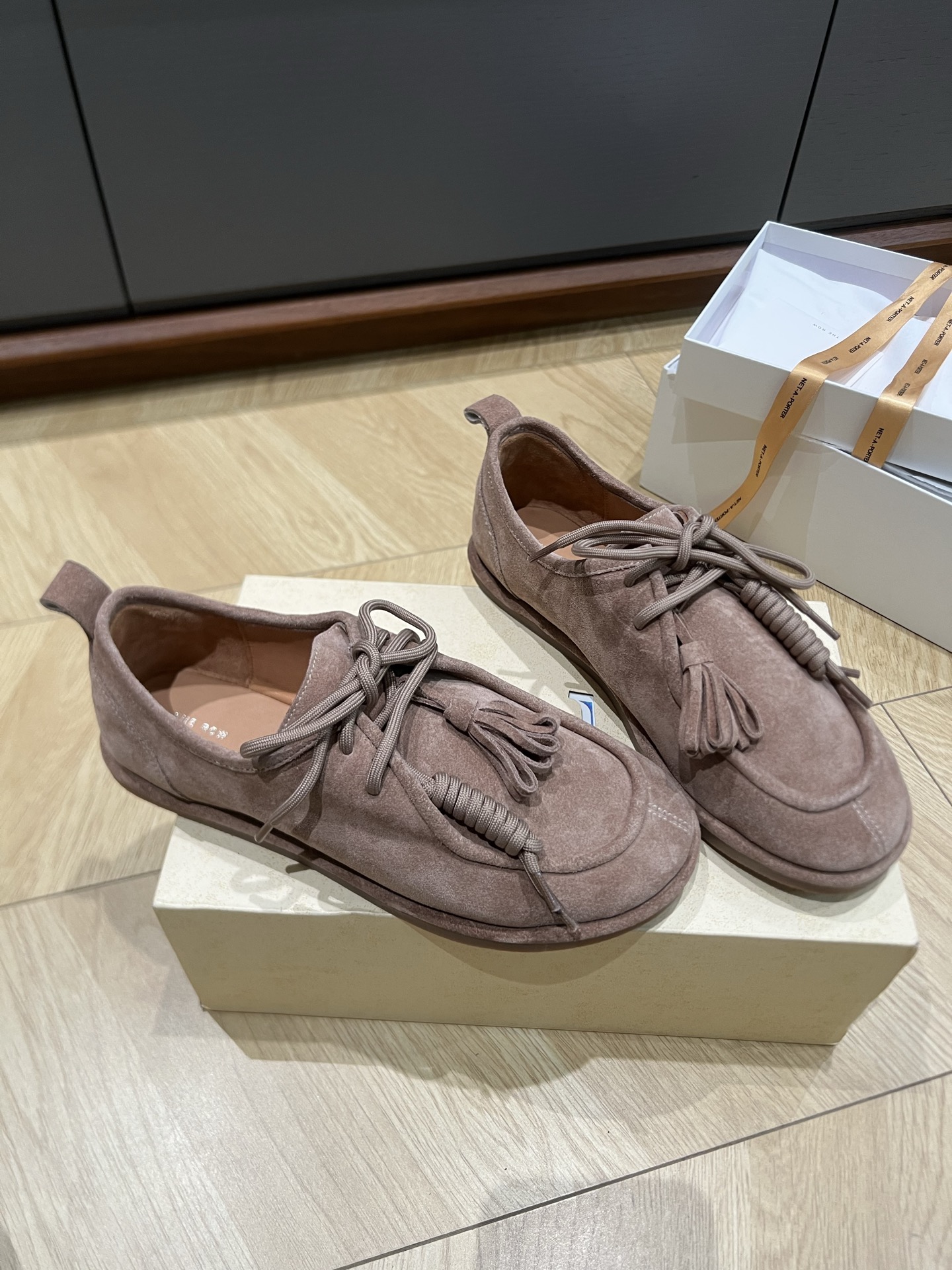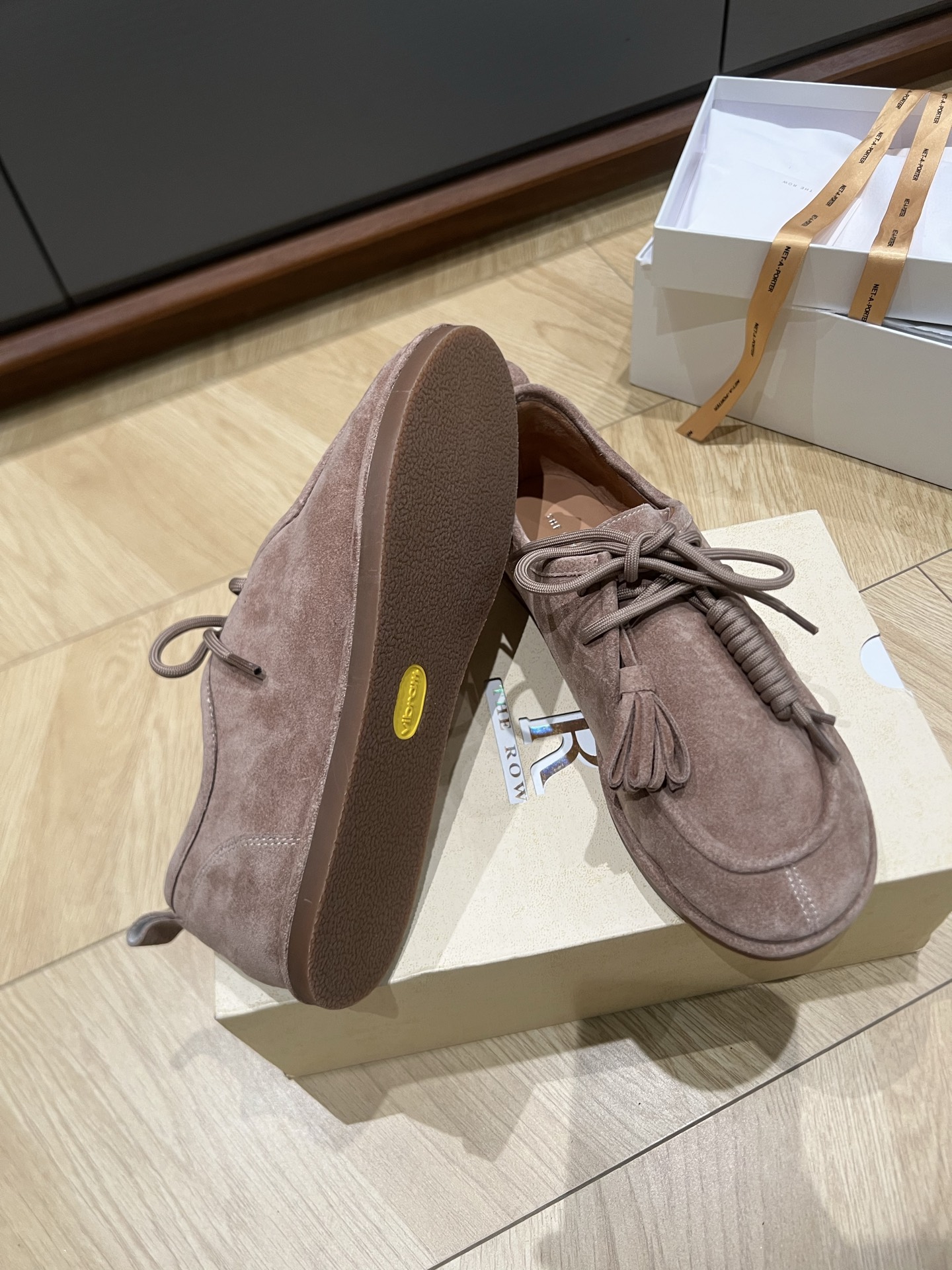 这款鞋子是AAAAA 1:1 质量 (非常棒). 使用了和原版一模一样的材料. 商标部分也保持了和The Row一样. 图片拍摄是实物鞋子拍摄, 您所收到的实物保证和我们图片一模一样.