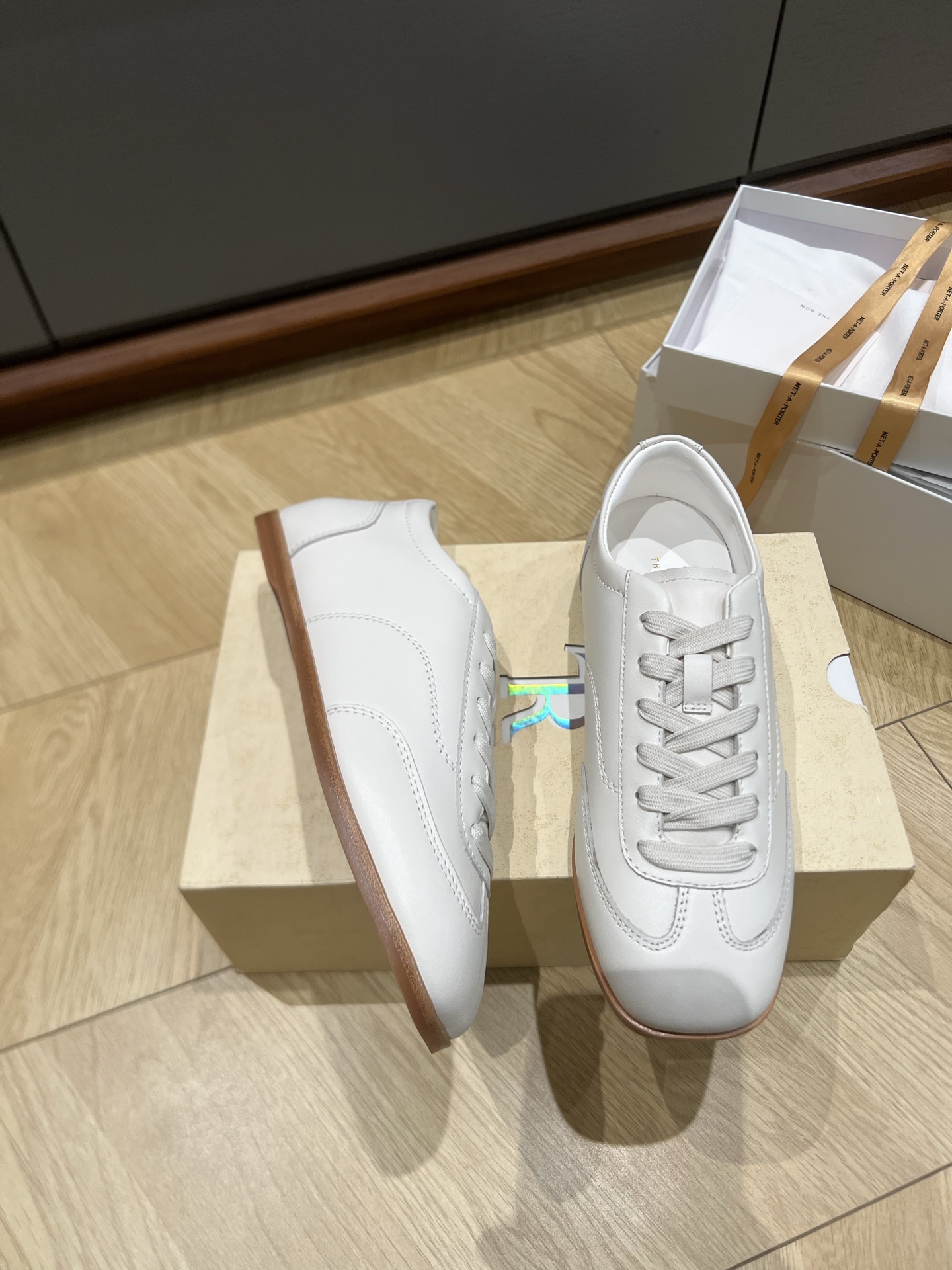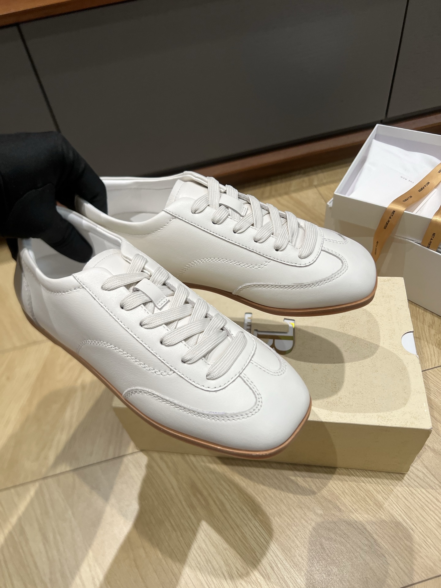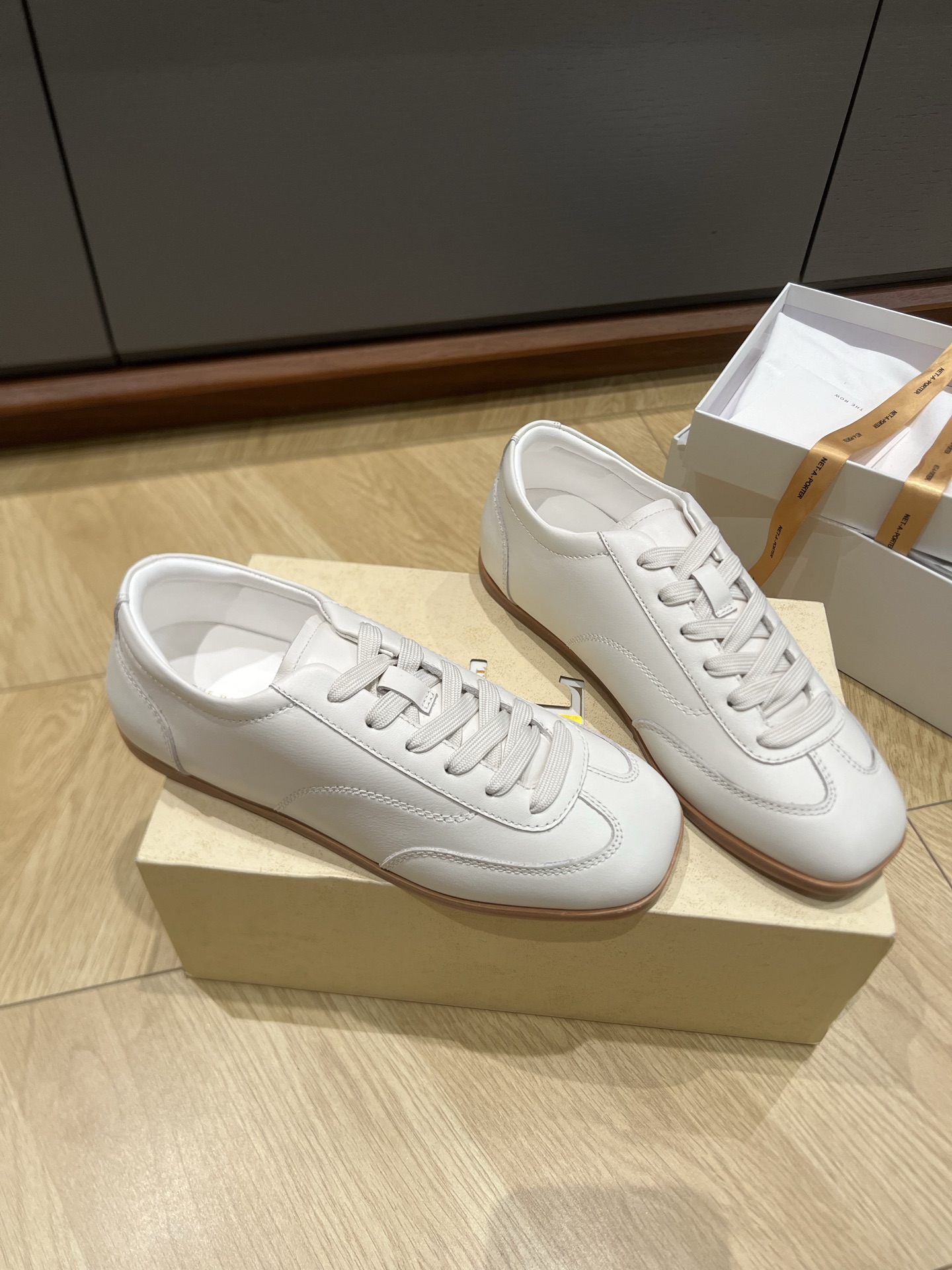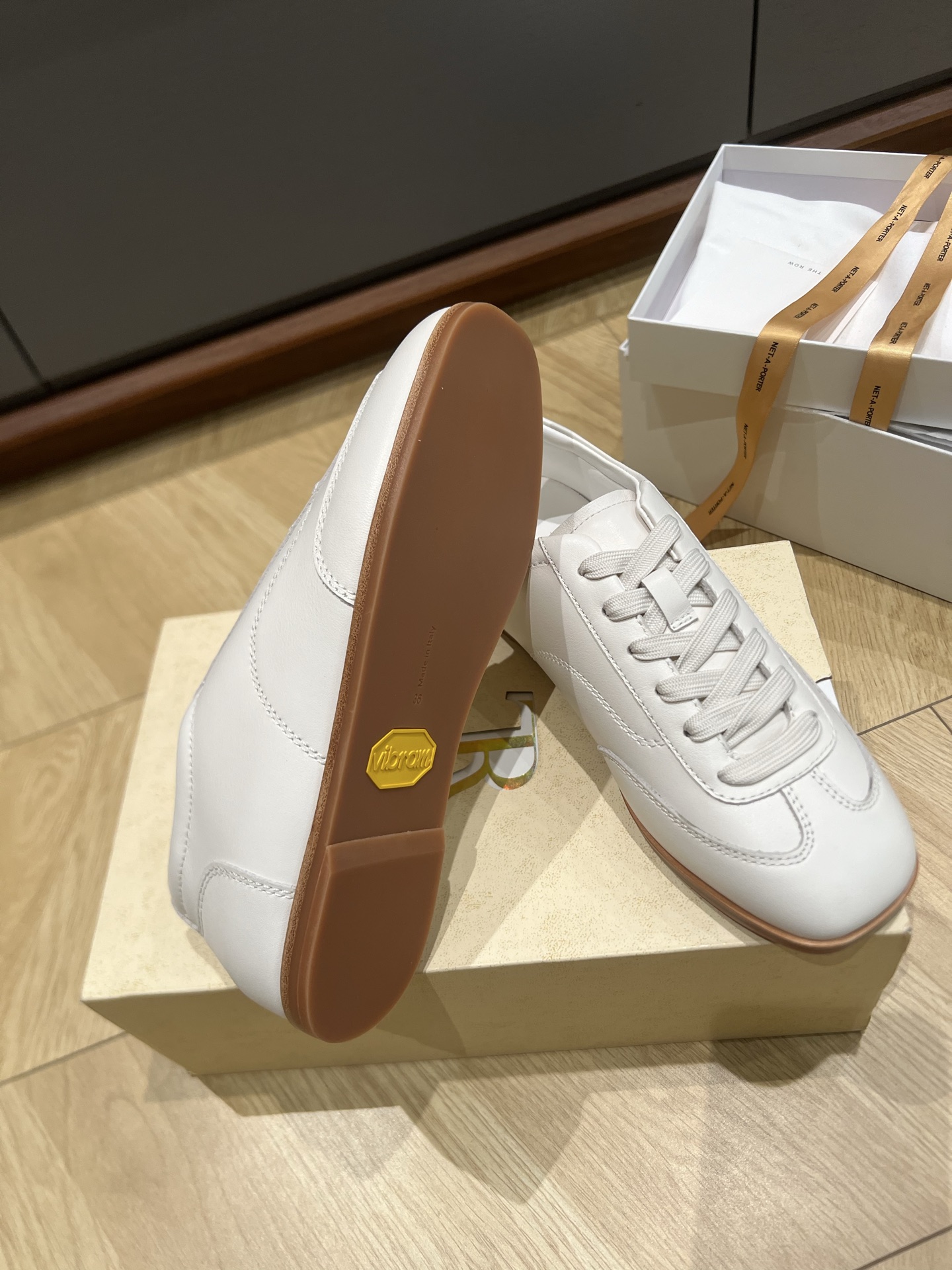 这款鞋子是AAAAA 1:1 质量 (非常棒). 使用了和原版一模一样的材料. 商标部分也保持了和The Row一样. 图片拍摄是实物鞋子拍摄, 您所收到的实物保证和我们图片一模一样.
