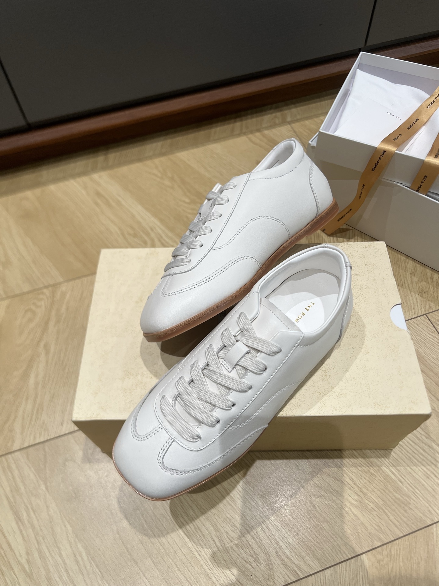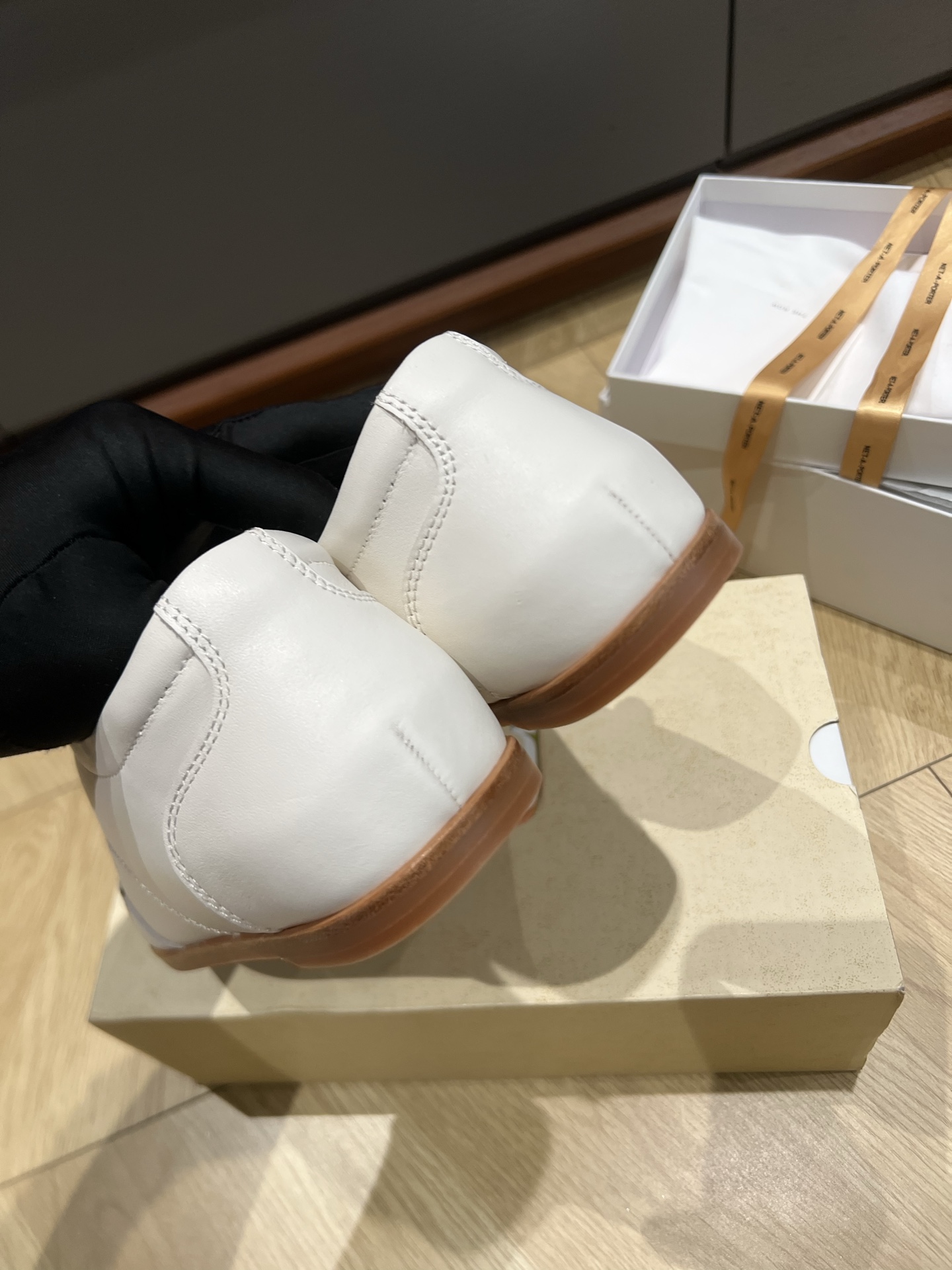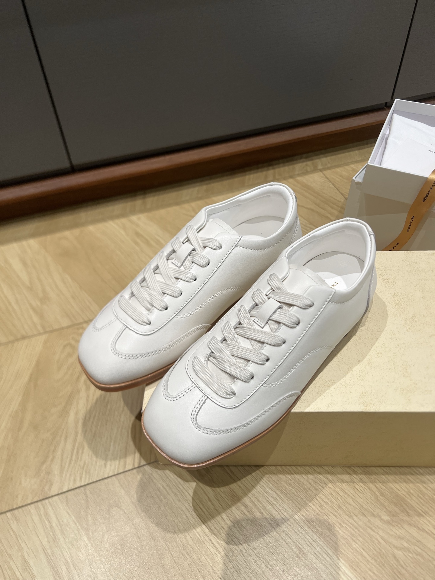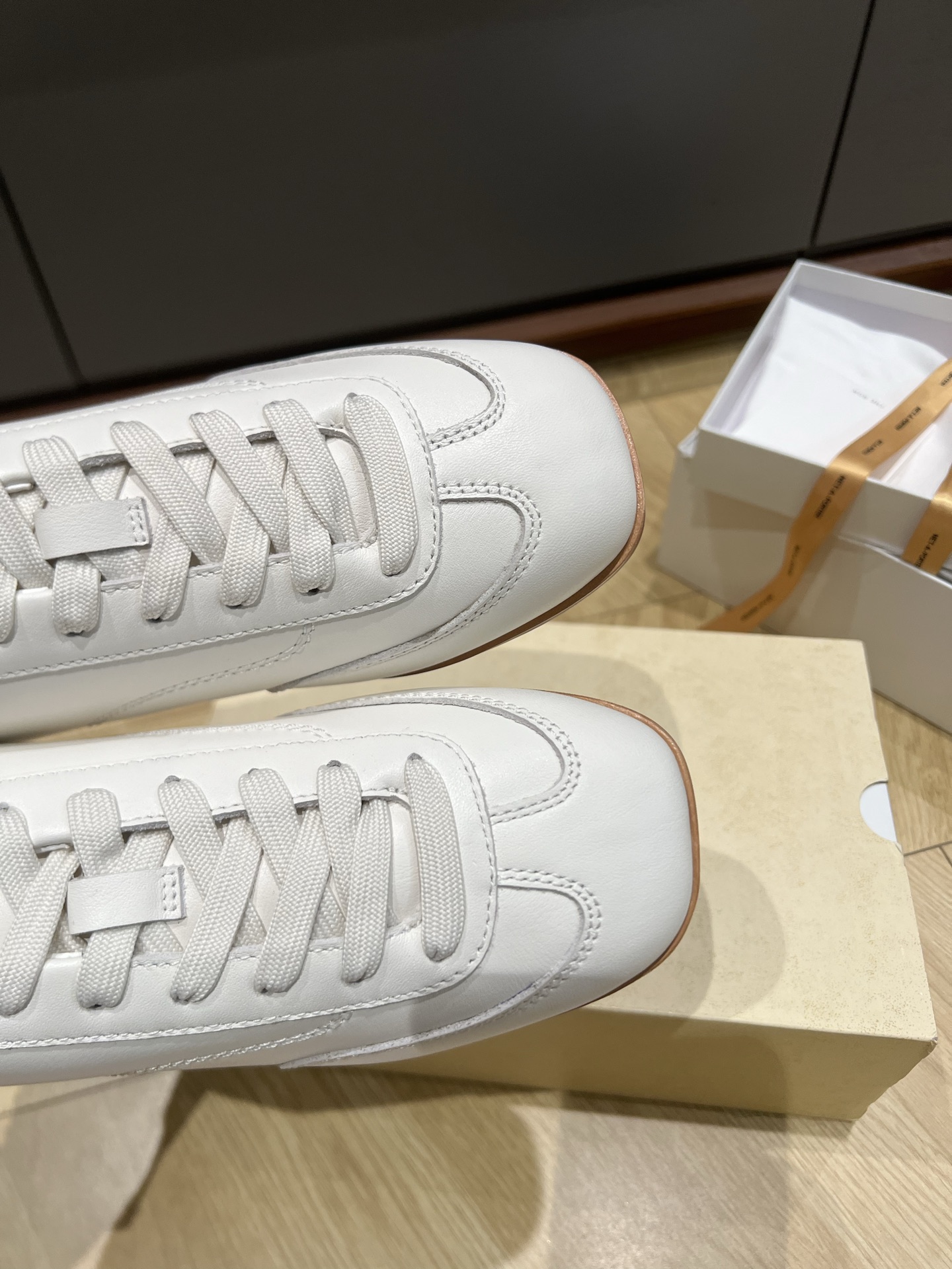 这款鞋子是AAAAA 1:1 质量 (非常棒). 使用了和原版一模一样的材料. 商标部分也保持了和The Row一样. 图片拍摄是实物鞋子拍摄, 您所收到的实物保证和我们图片一模一样.