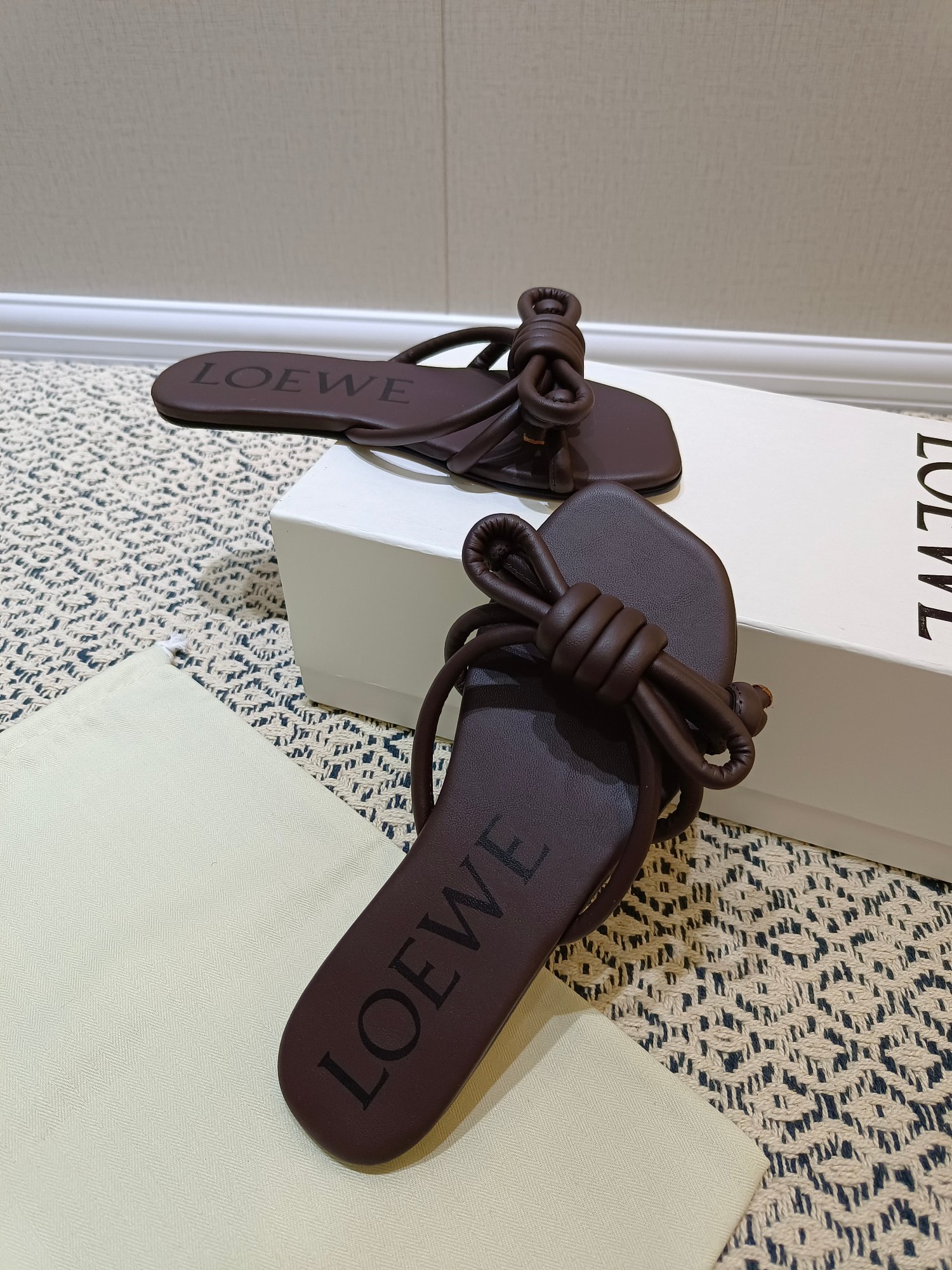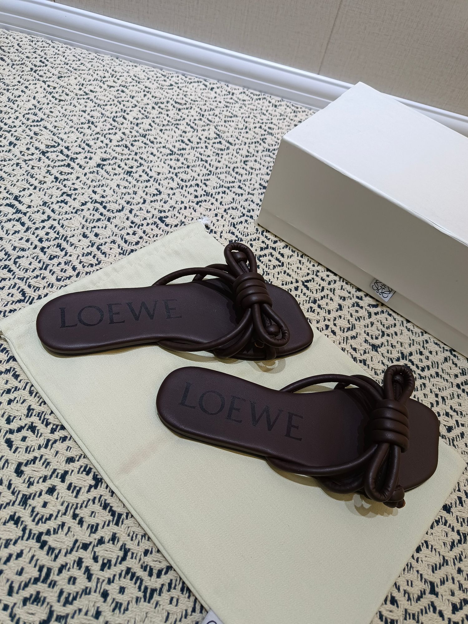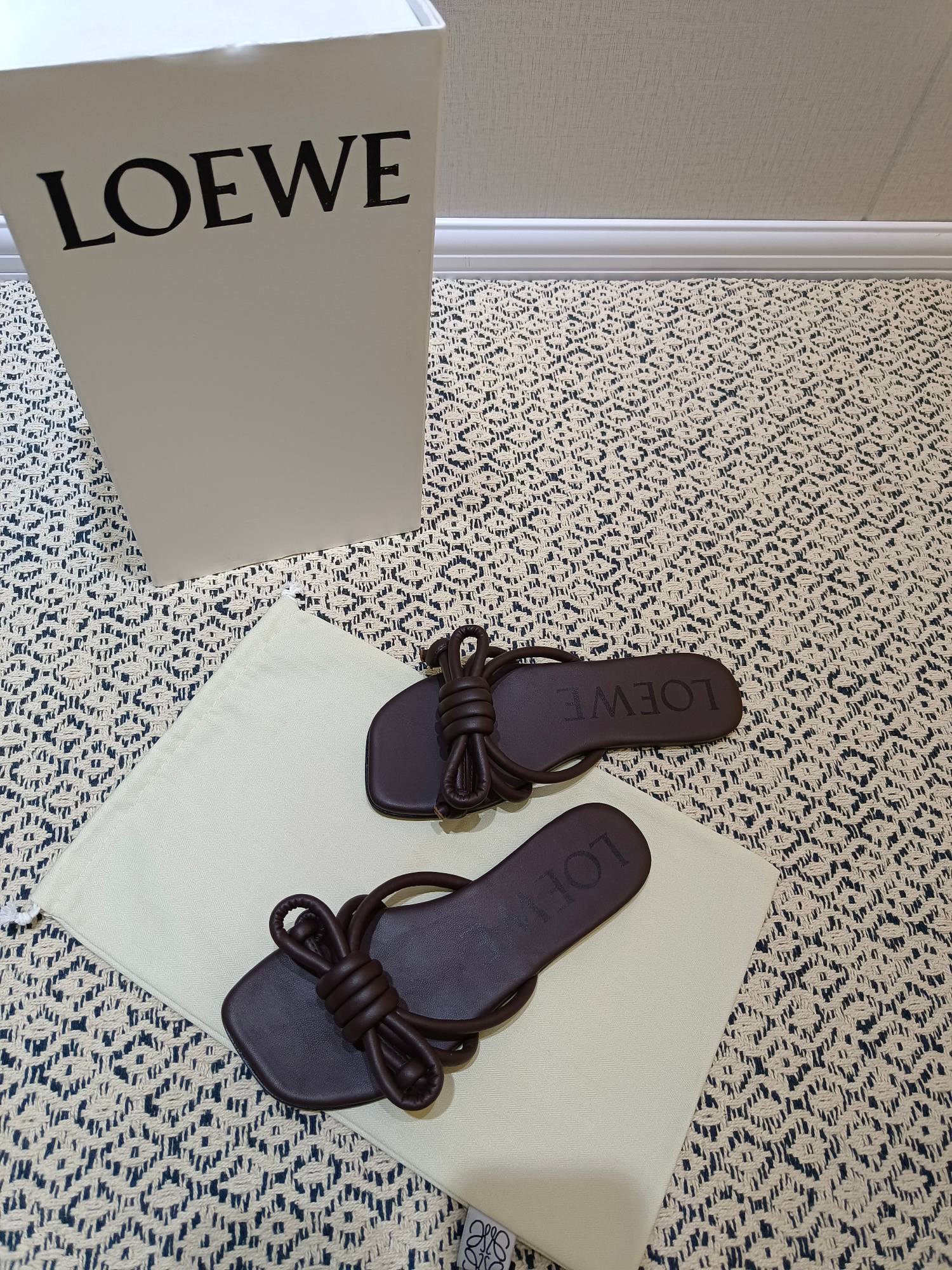 这款鞋子是AAAAA 1:1 质量 (非常棒). 使用了和原版一模一样的材料. 商标部分也保持了和罗意威/Loewe一样. 图片拍摄是实物鞋子拍摄, 您所收到的实物保证和我们图片一模一样.