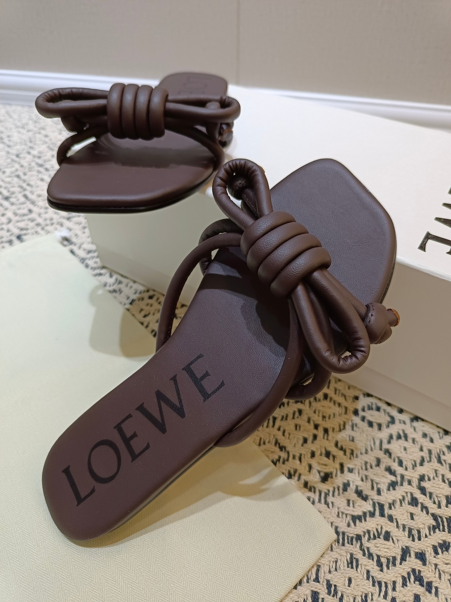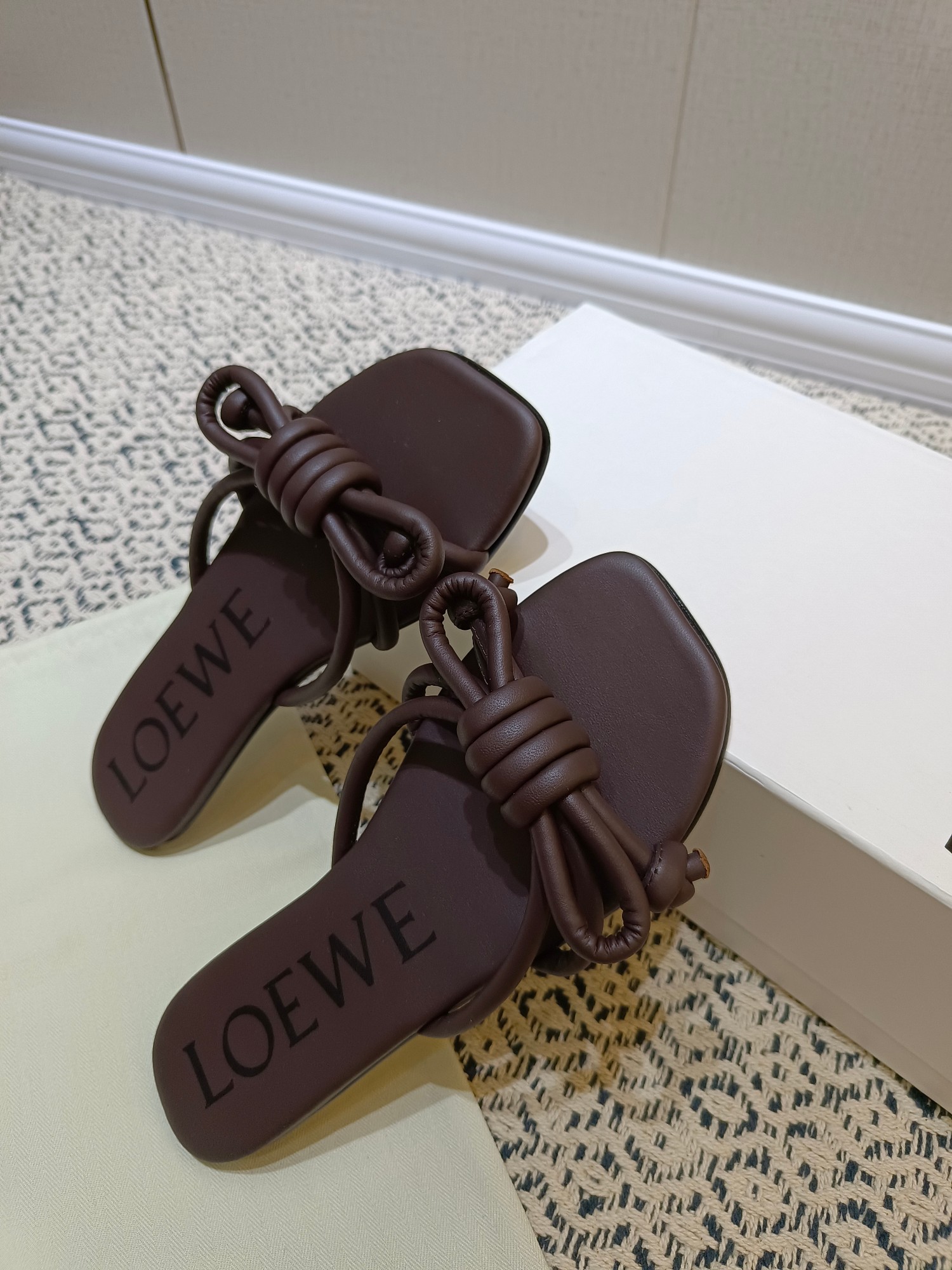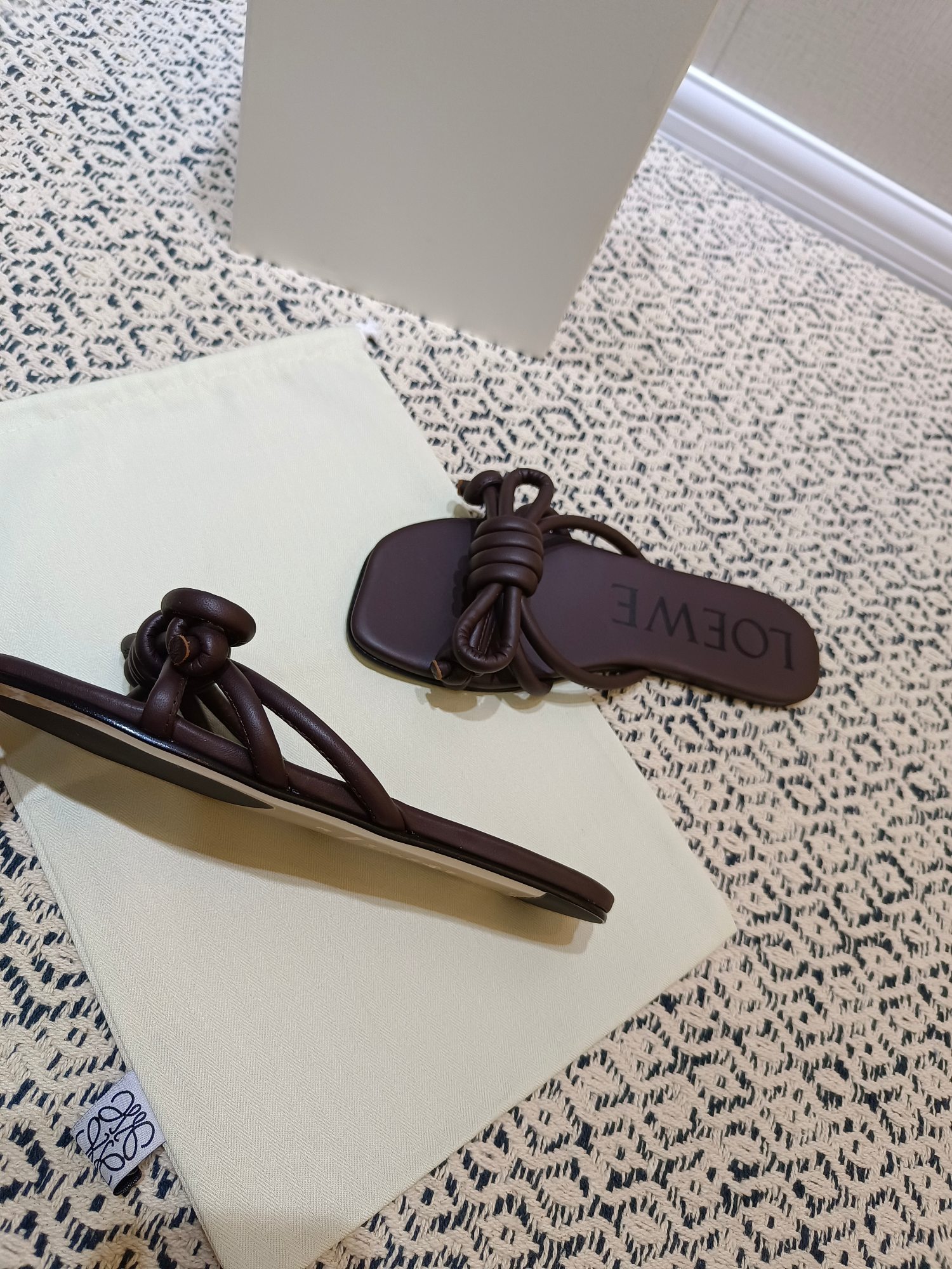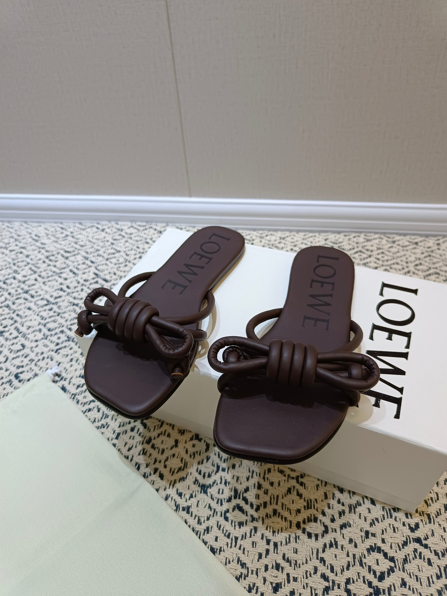 这款鞋子是AAAAA 1:1 质量 (非常棒). 使用了和原版一模一样的材料. 商标部分也保持了和罗意威/Loewe一样. 图片拍摄是实物鞋子拍摄, 您所收到的实物保证和我们图片一模一样.
