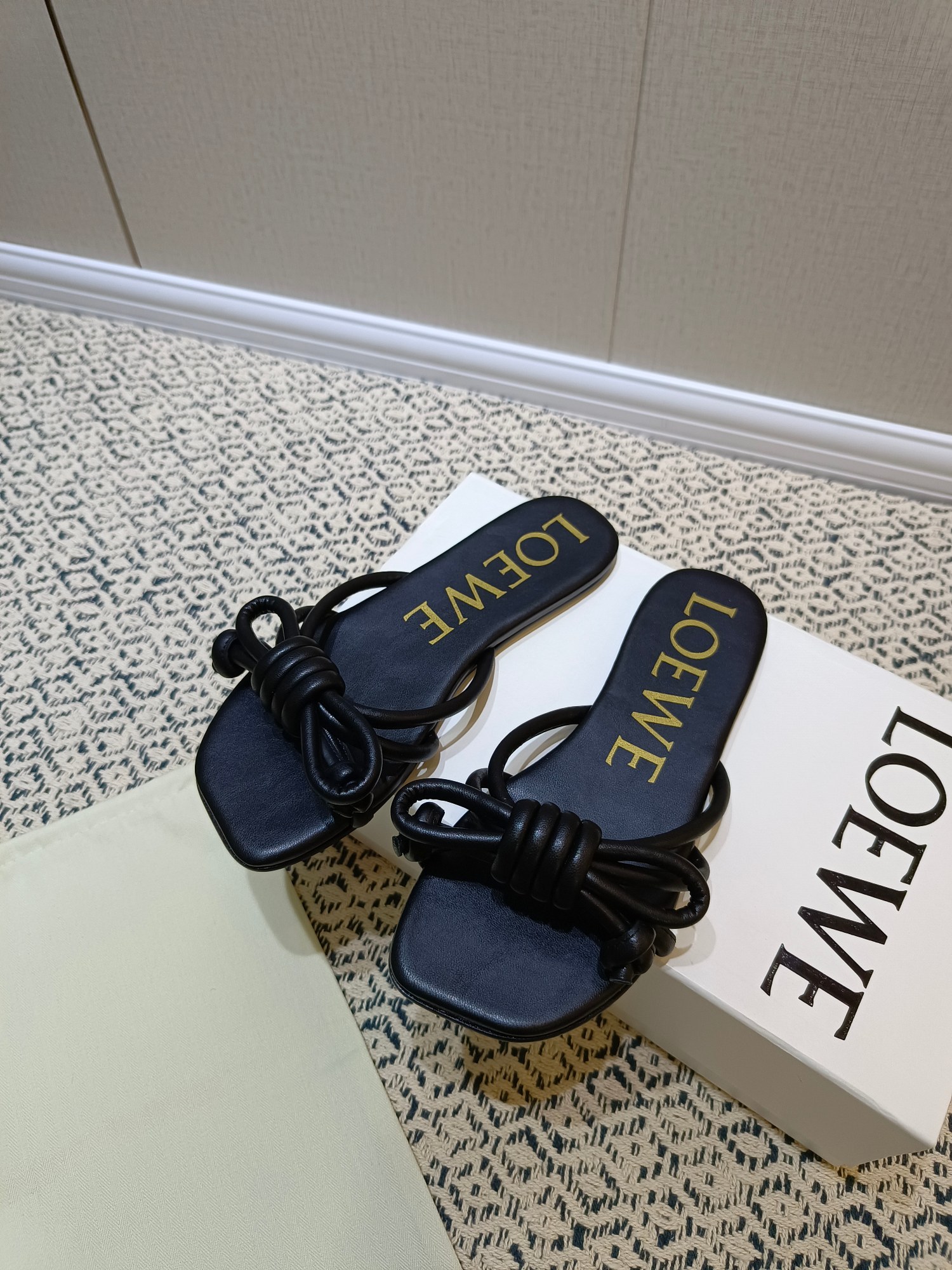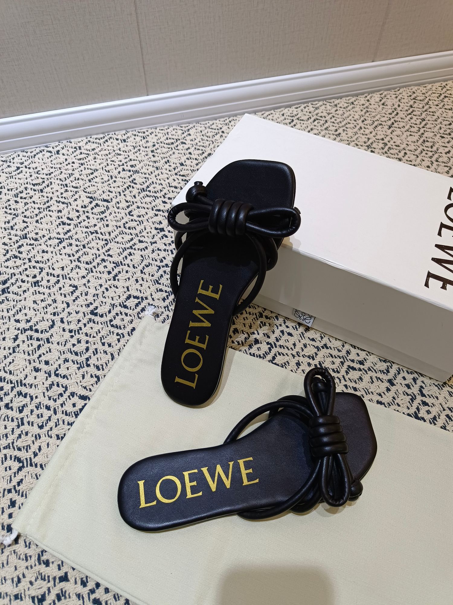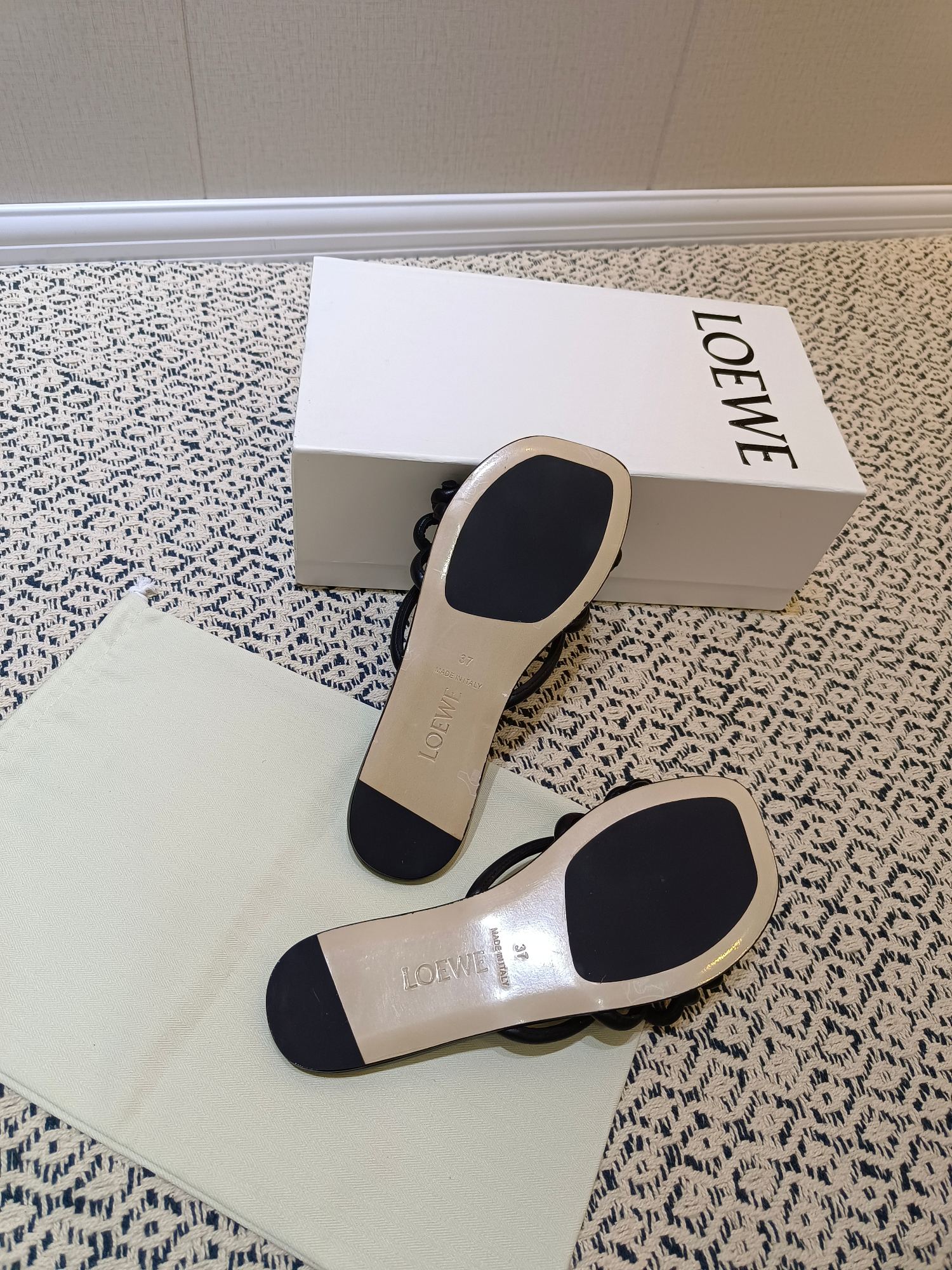 这款鞋子是AAAAA 1:1 质量 (非常棒). 使用了和原版一模一样的材料. 商标部分也保持了和罗意威/Loewe一样. 图片拍摄是实物鞋子拍摄, 您所收到的实物保证和我们图片一模一样.