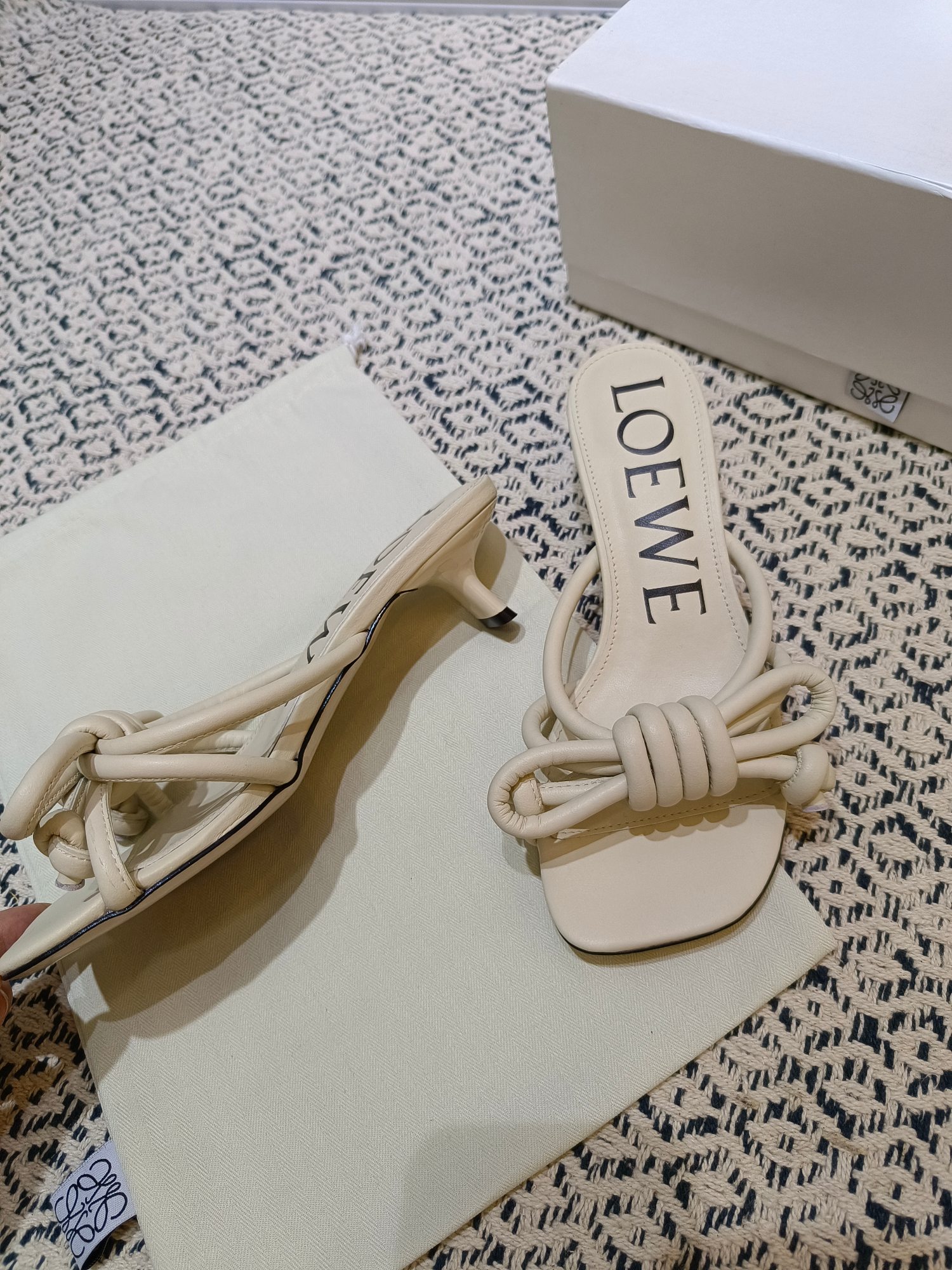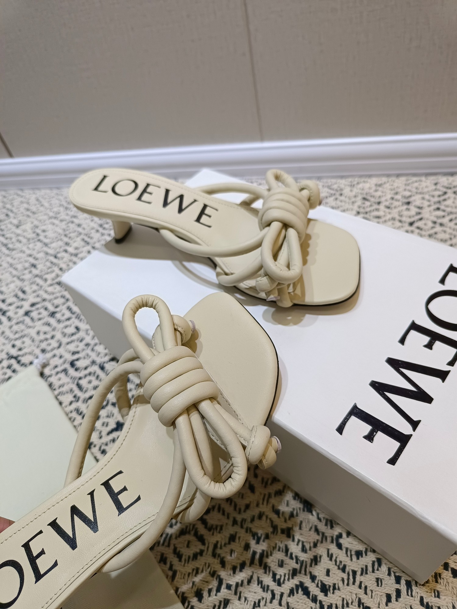 这款鞋子是AAAAA 1:1 质量 (非常棒). 使用了和原版一模一样的材料. 商标部分也保持了和罗意威/Loewe一样. 图片拍摄是实物鞋子拍摄, 您所收到的实物保证和我们图片一模一样.