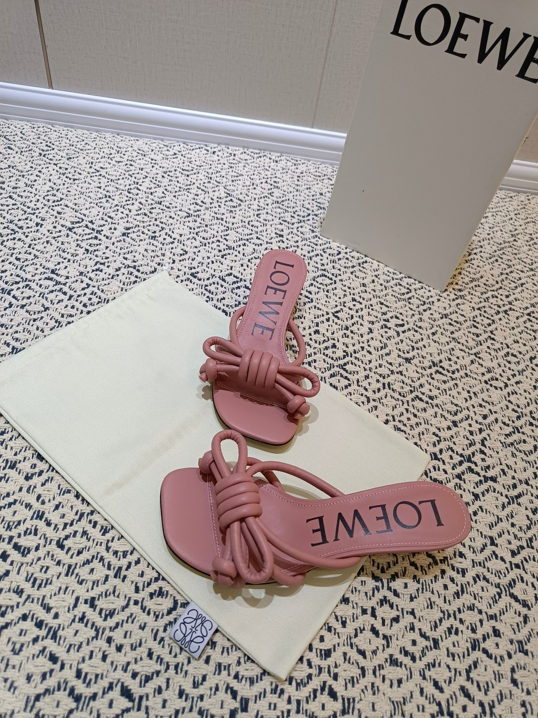 这款鞋子是AAAAA 1:1 质量 (非常棒). 使用了和原版一模一样的材料. 商标部分也保持了和罗意威/Loewe一样. 图片拍摄是实物鞋子拍摄, 您所收到的实物保证和我们图片一模一样.