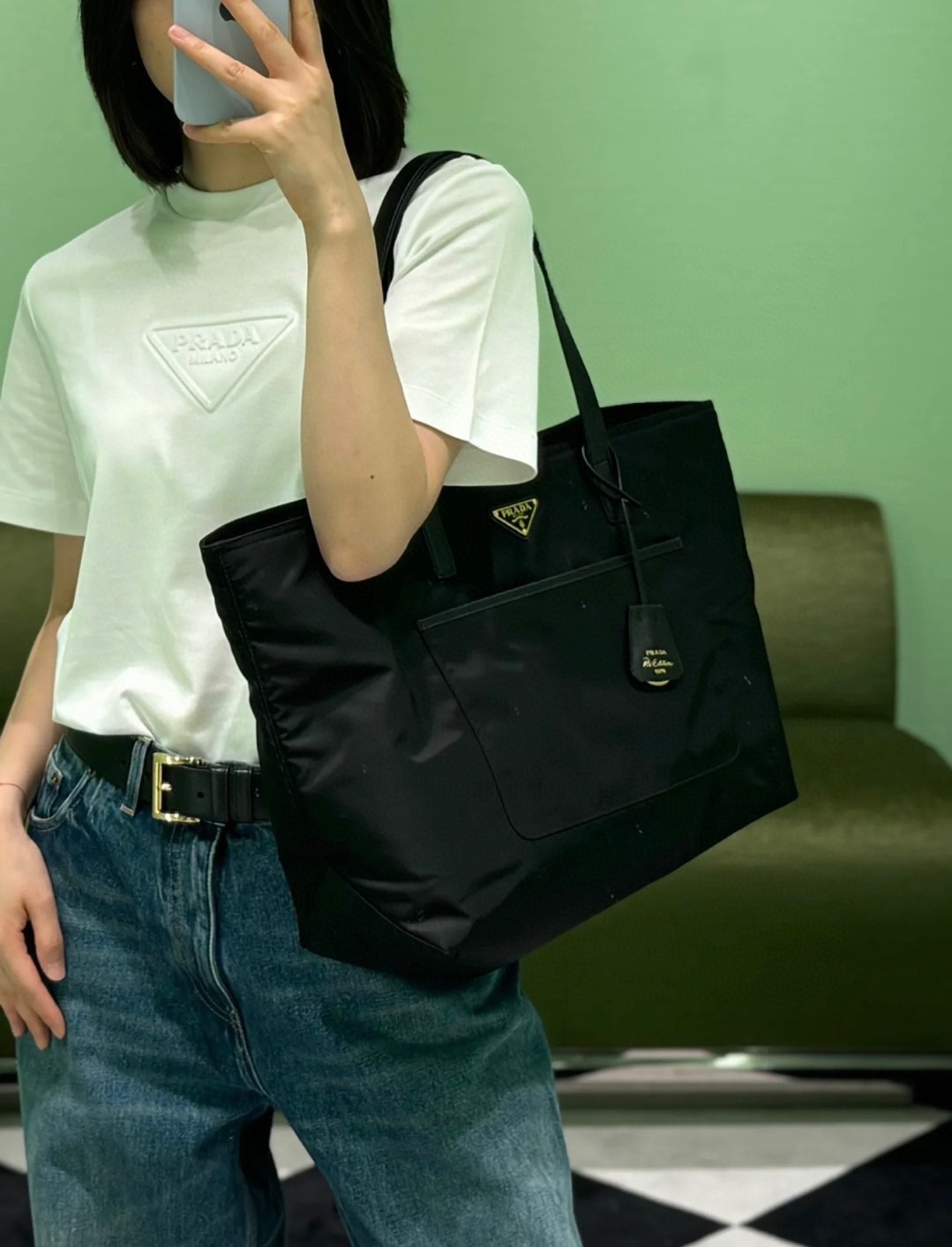 这款包包是AAAAA 1:1 质量 (非常棒). 使用了和原版一模一样的材料. 商标部分也保持了和普拉达/Prada一样. 图片拍摄是实物包包拍摄, 您所收到的实物保证和我们图片一模一样.