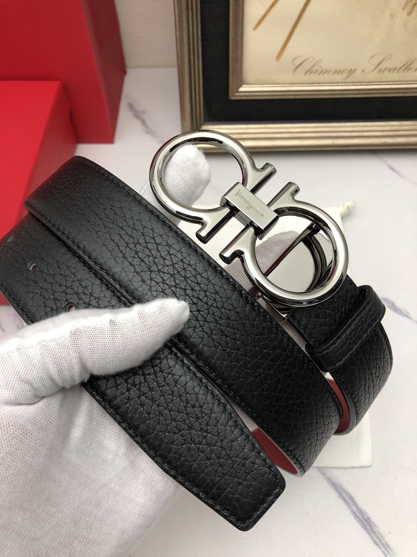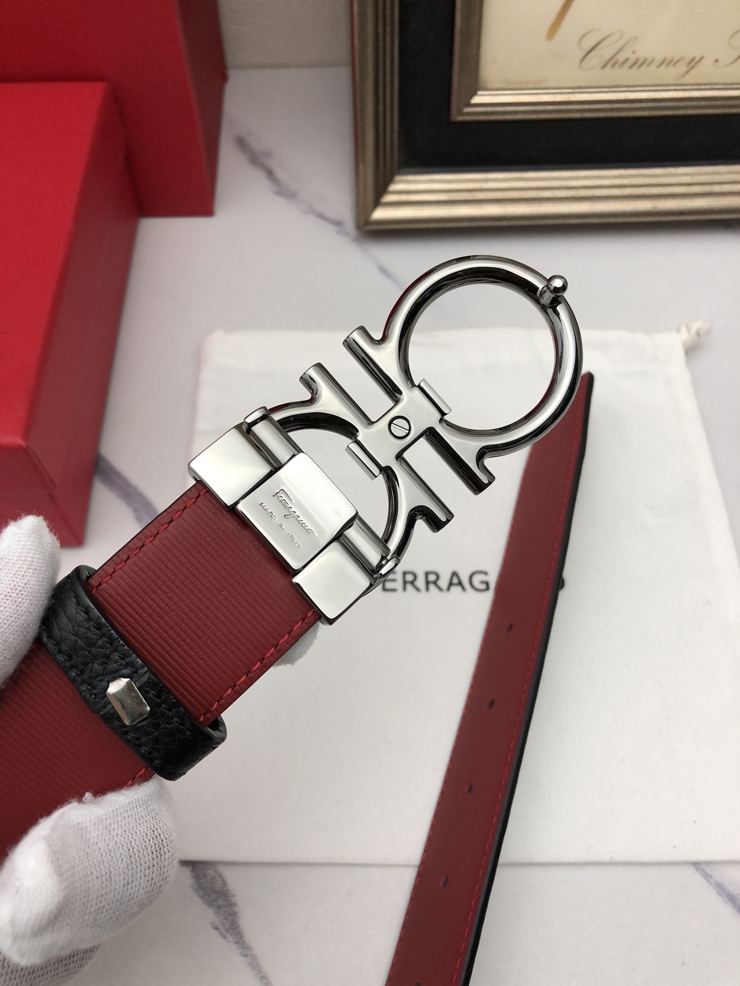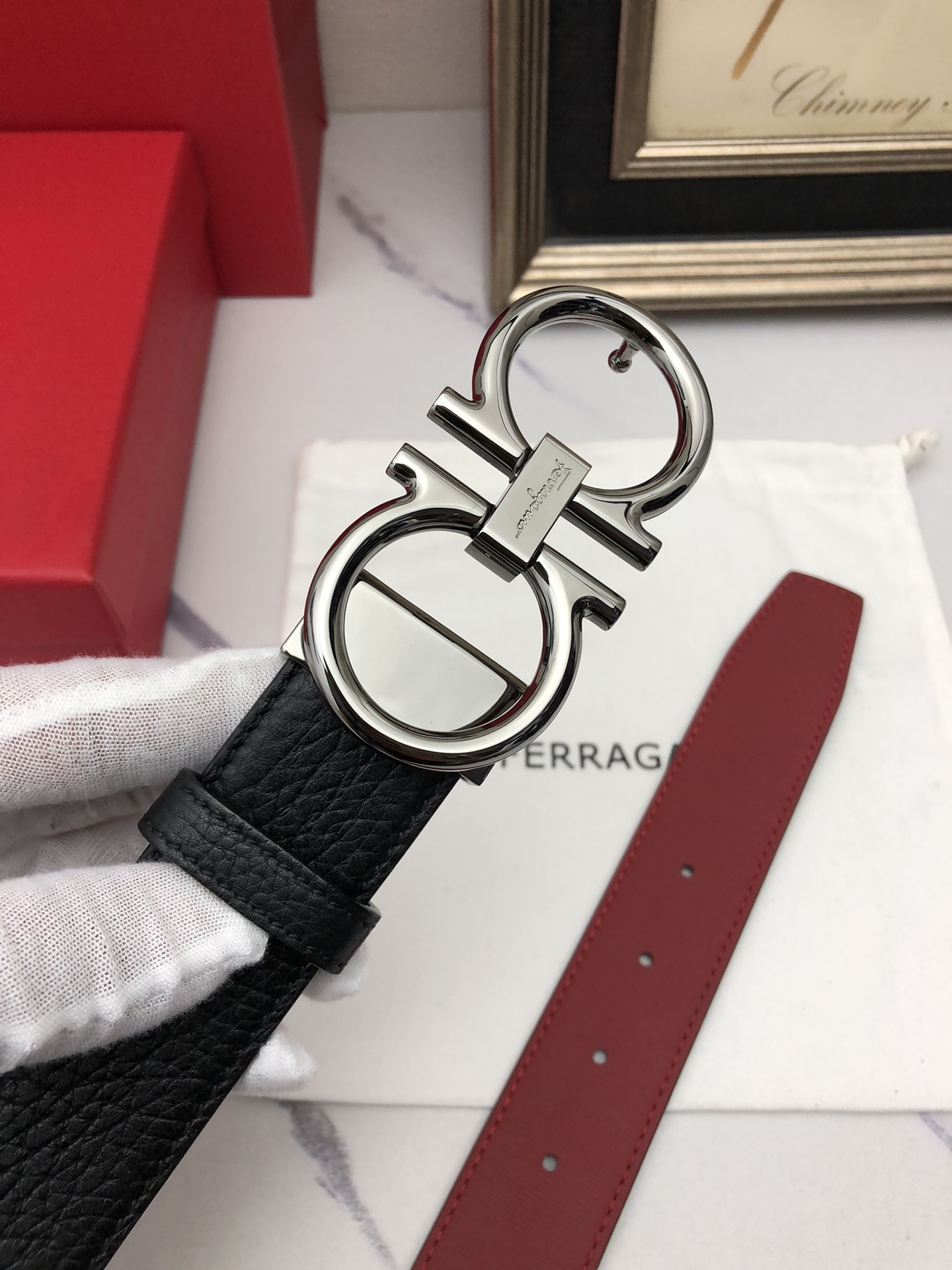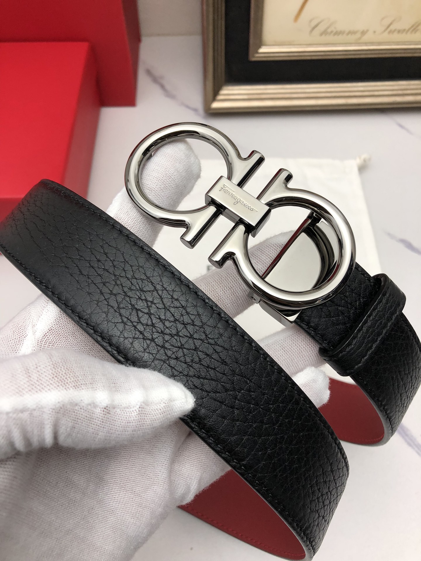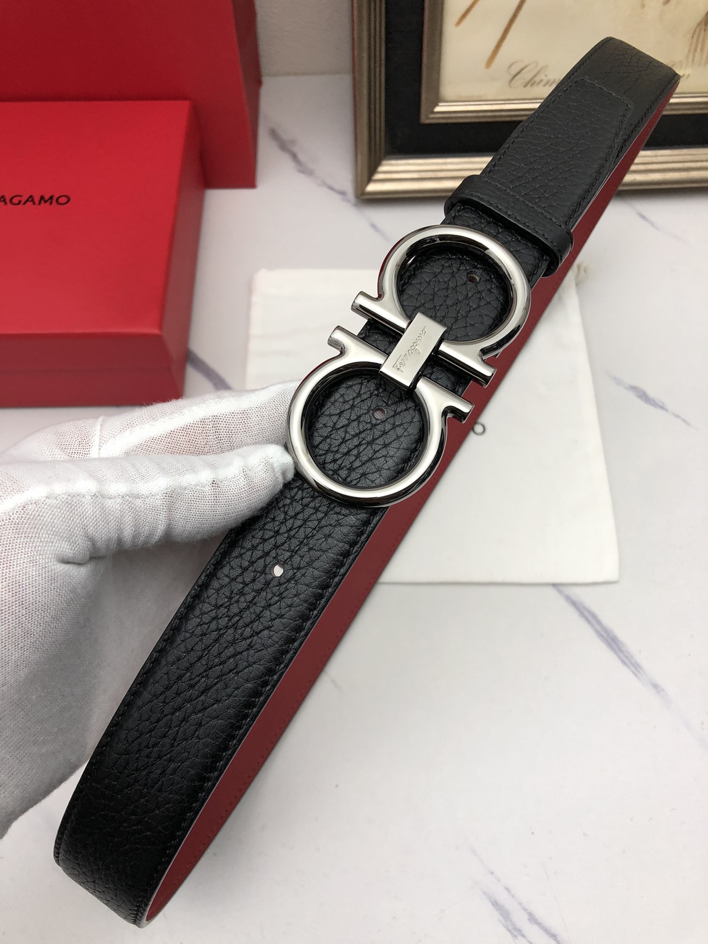 这款皮带是AAAAA 1:1 质量 (非常棒). 使用了和原版一模一样的材料. 商标部分也保持了和菲拉格慕/Salvatore Ferragamo一样. 图片拍摄是实物皮带拍摄, 您所收到的实物保证和我们图片一模一样.
