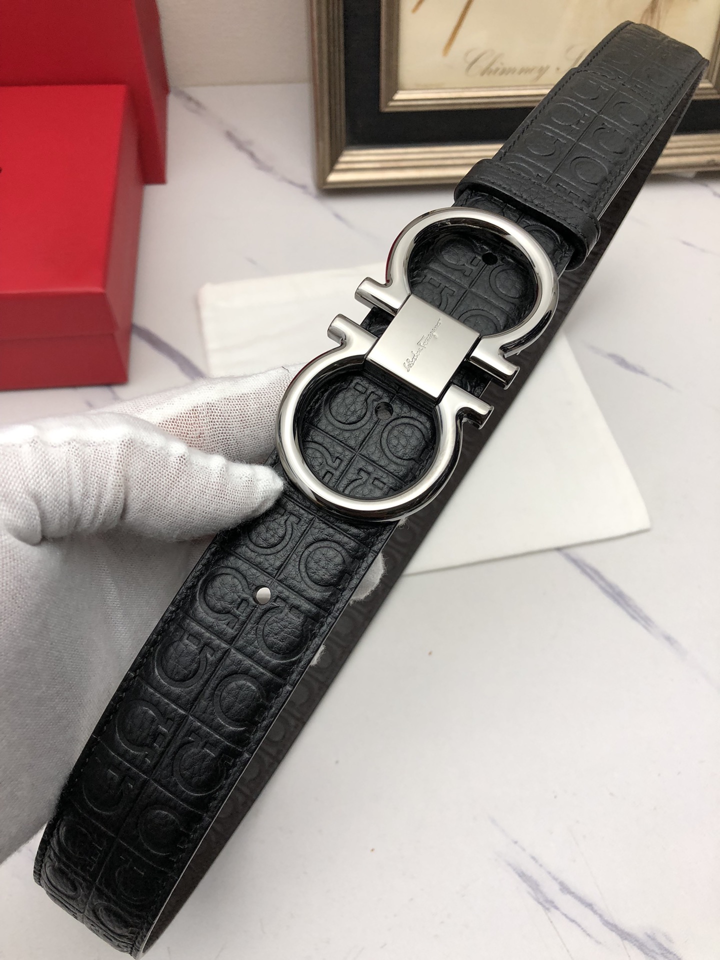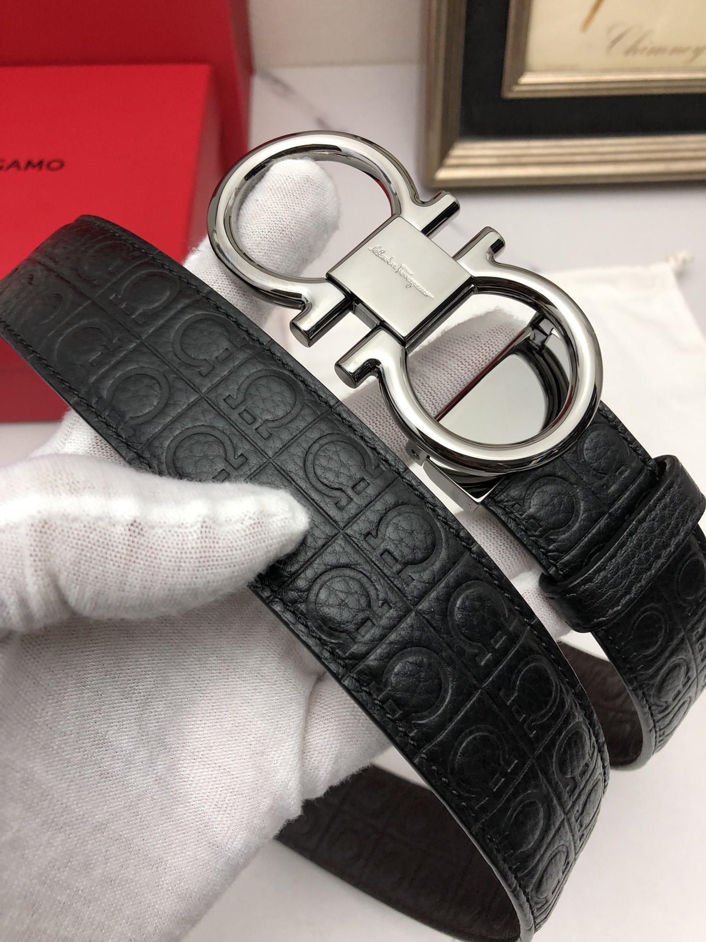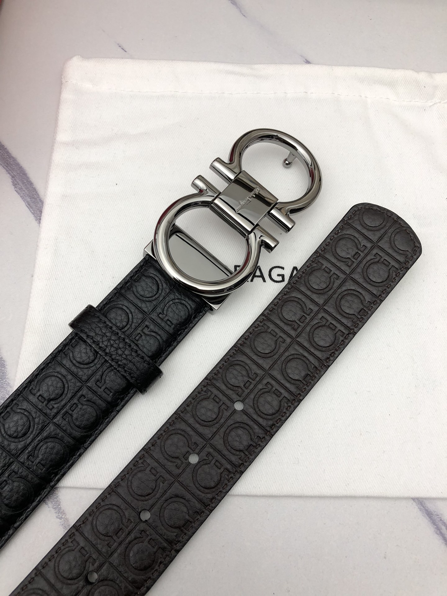 这款皮带是AAAAA 1:1 质量 (非常棒). 使用了和原版一模一样的材料. 商标部分也保持了和菲拉格慕/Salvatore Ferragamo一样. 图片拍摄是实物皮带拍摄, 您所收到的实物保证和我们图片一模一样.