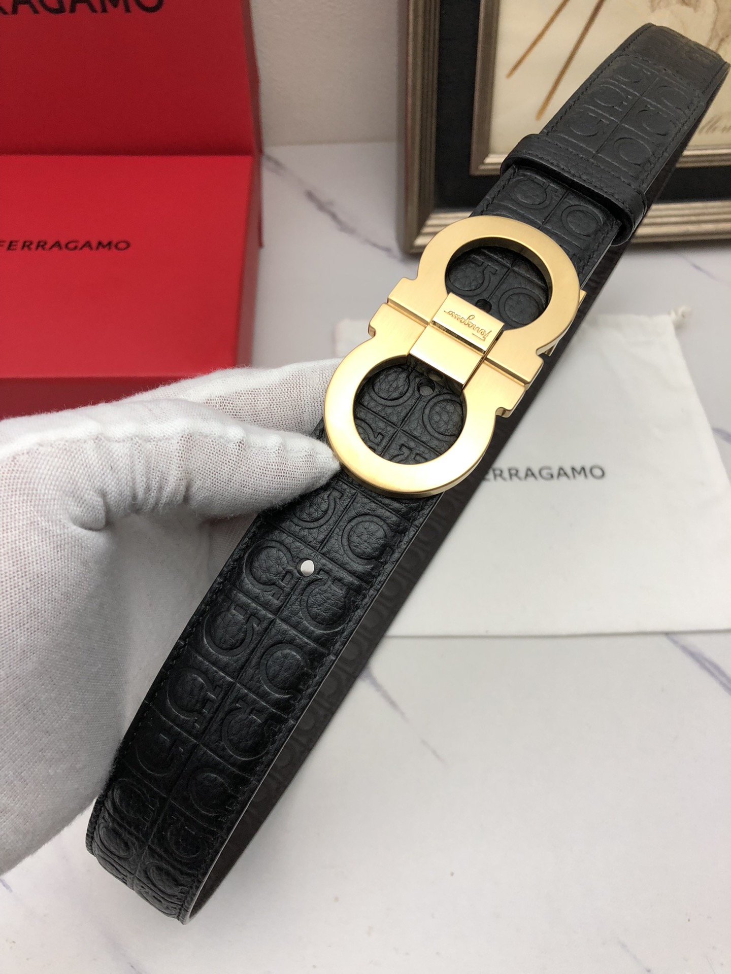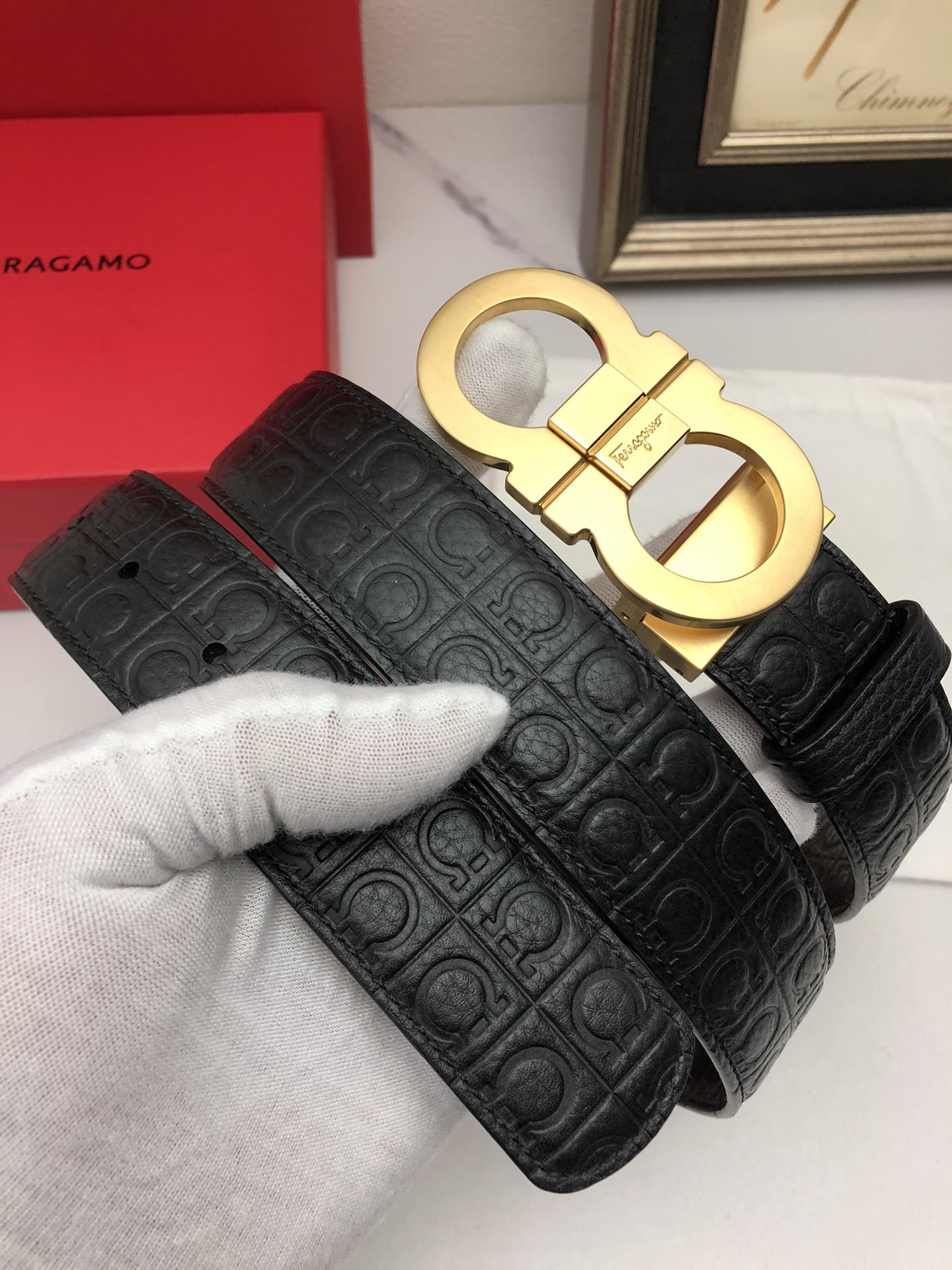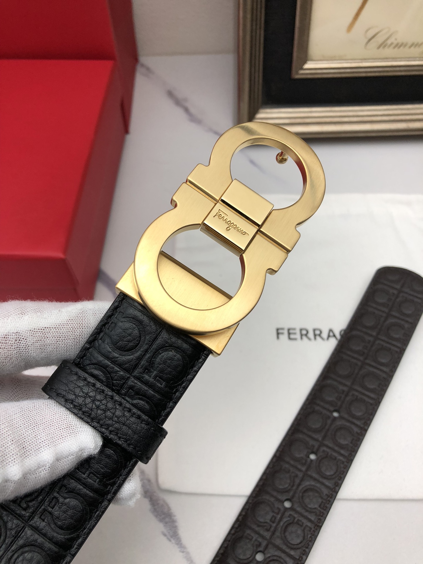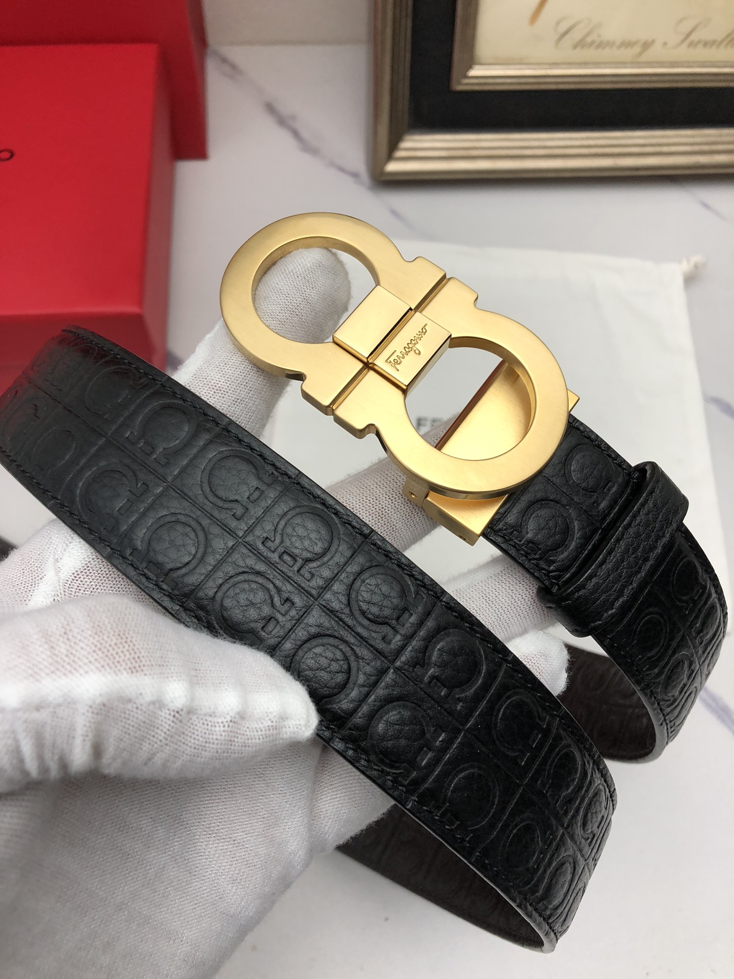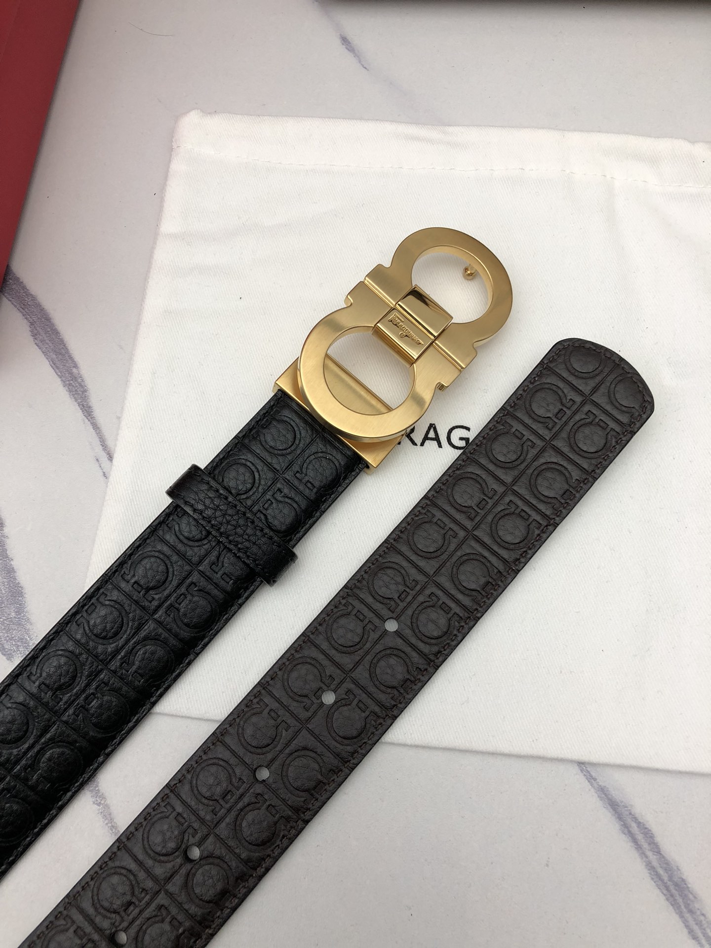 这款皮带是AAAAA 1:1 质量 (非常棒). 使用了和原版一模一样的材料. 商标部分也保持了和菲拉格慕/Salvatore Ferragamo一样. 图片拍摄是实物皮带拍摄, 您所收到的实物保证和我们图片一模一样.