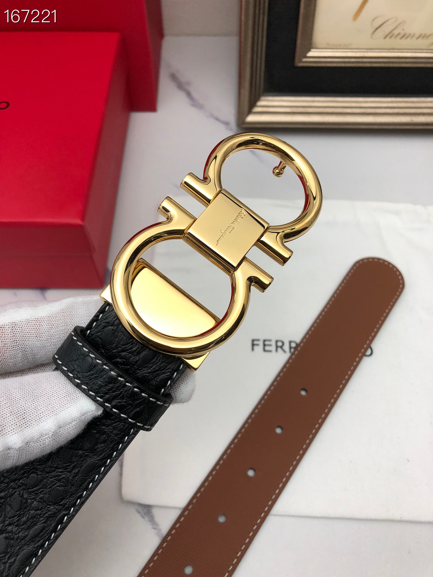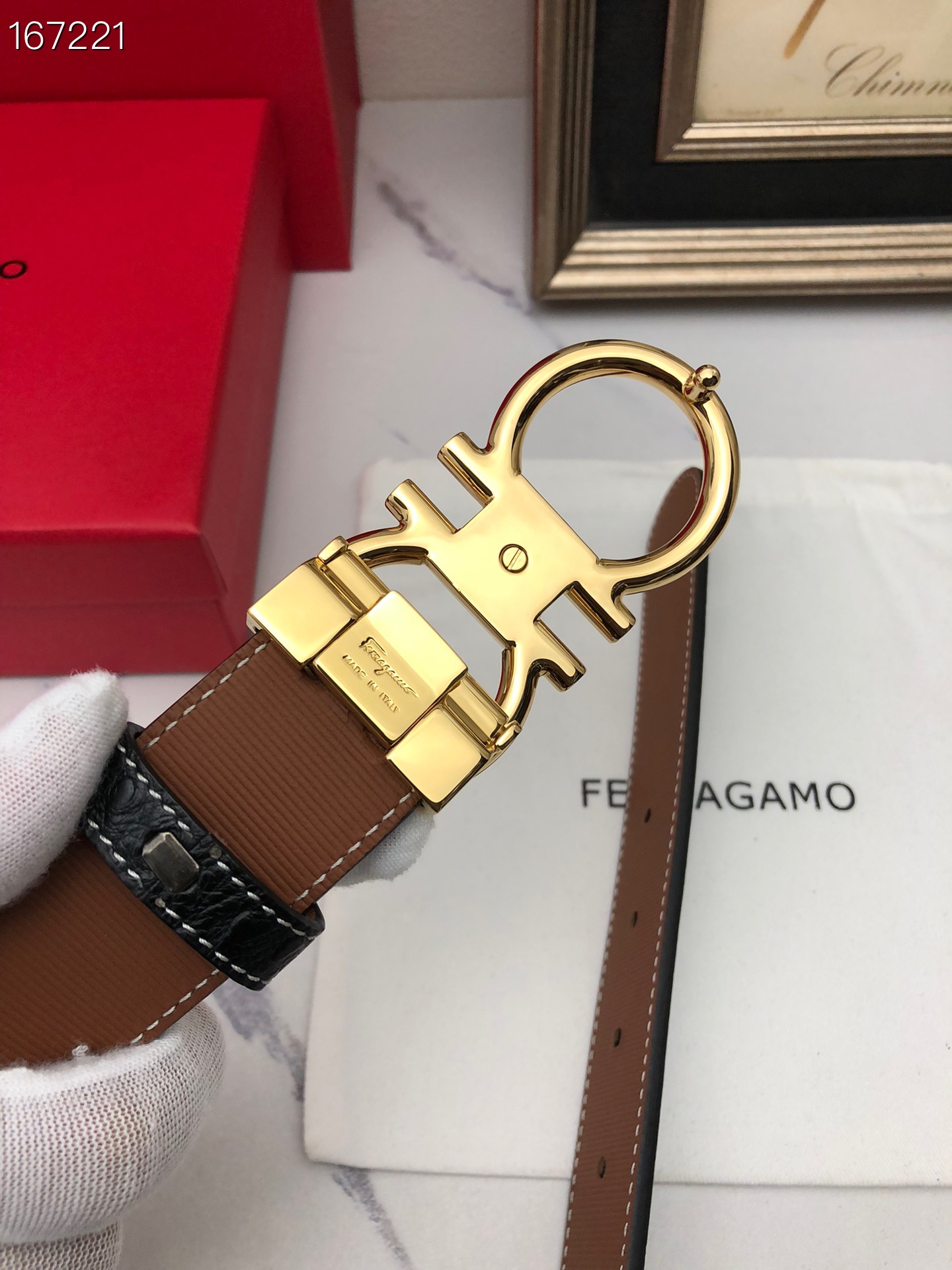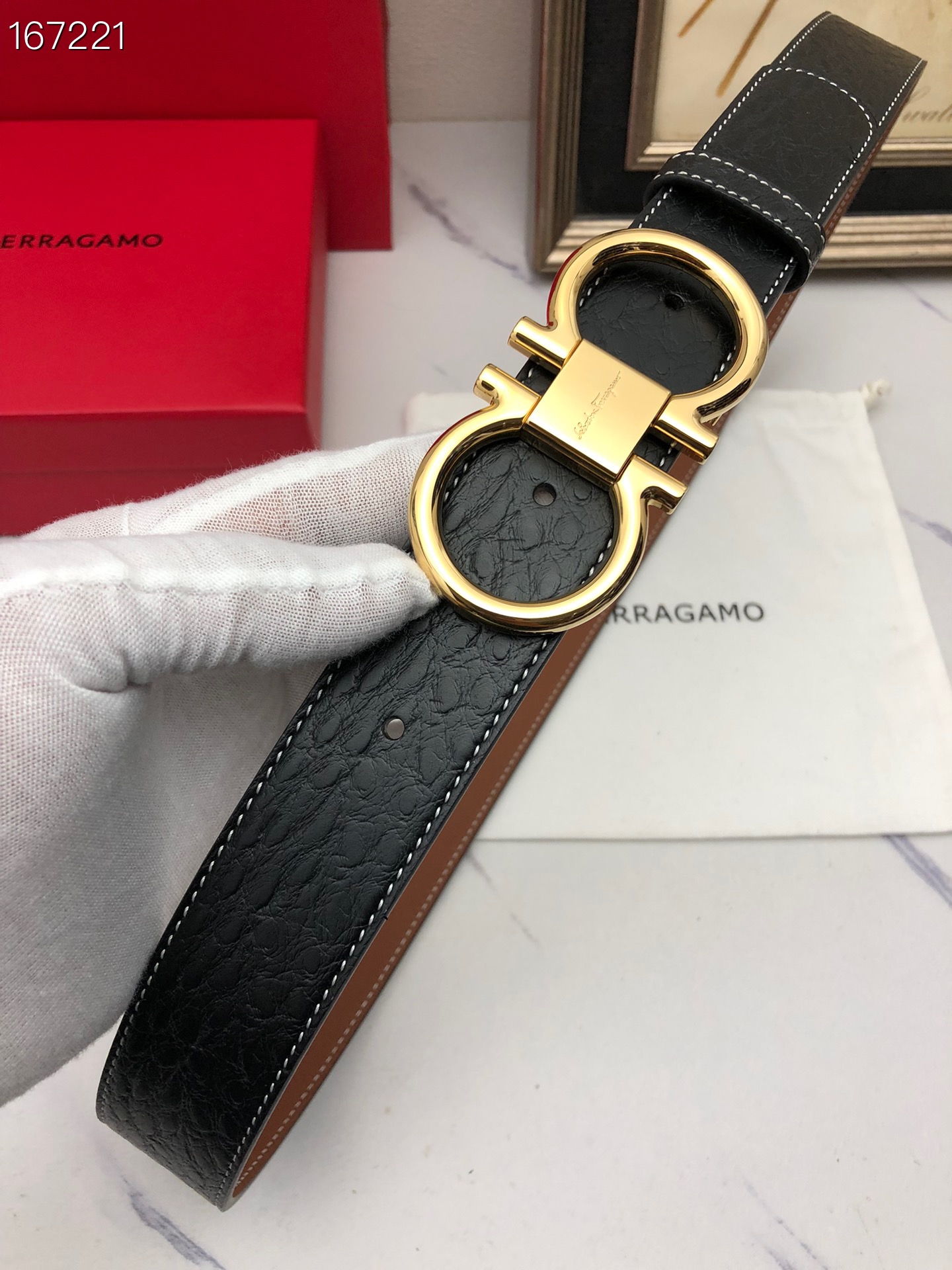 这款皮带是AAAAA 1:1 质量 (非常棒). 使用了和原版一模一样的材料. 商标部分也保持了和菲拉格慕/Salvatore Ferragamo一样. 图片拍摄是实物皮带拍摄, 您所收到的实物保证和我们图片一模一样.