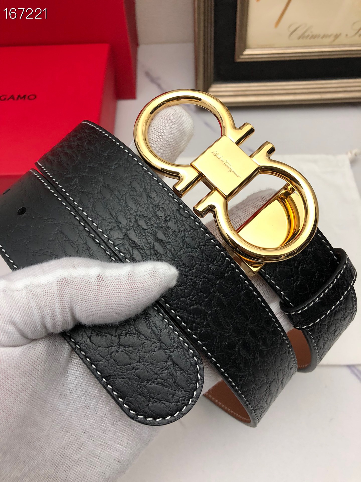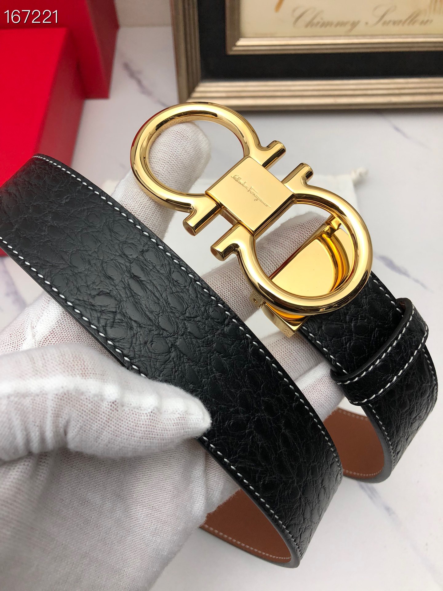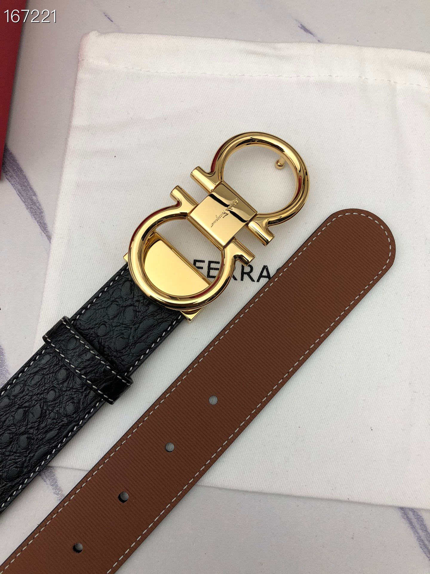 这款皮带是AAAAA 1:1 质量 (非常棒). 使用了和原版一模一样的材料. 商标部分也保持了和菲拉格慕/Salvatore Ferragamo一样. 图片拍摄是实物皮带拍摄, 您所收到的实物保证和我们图片一模一样.