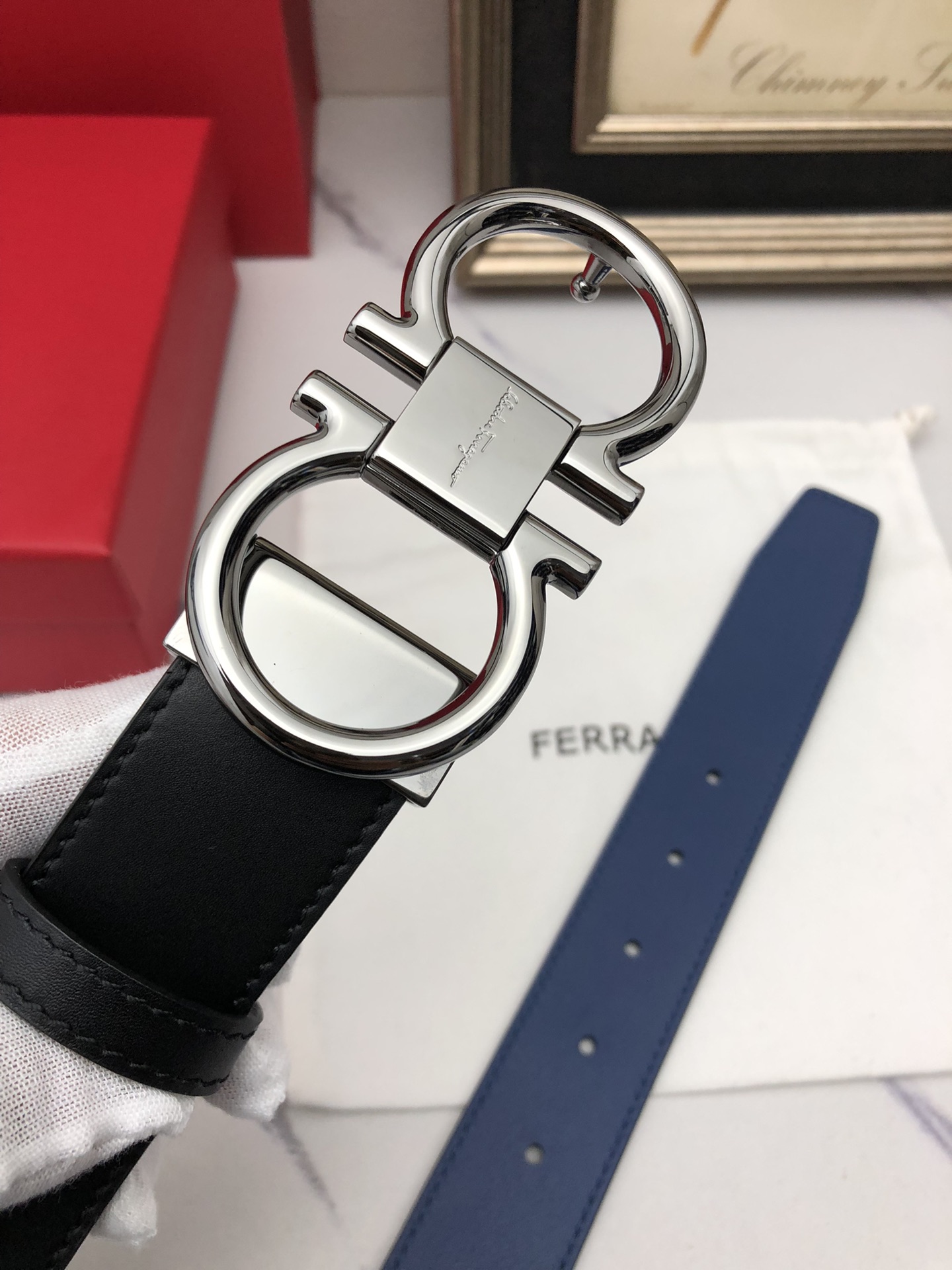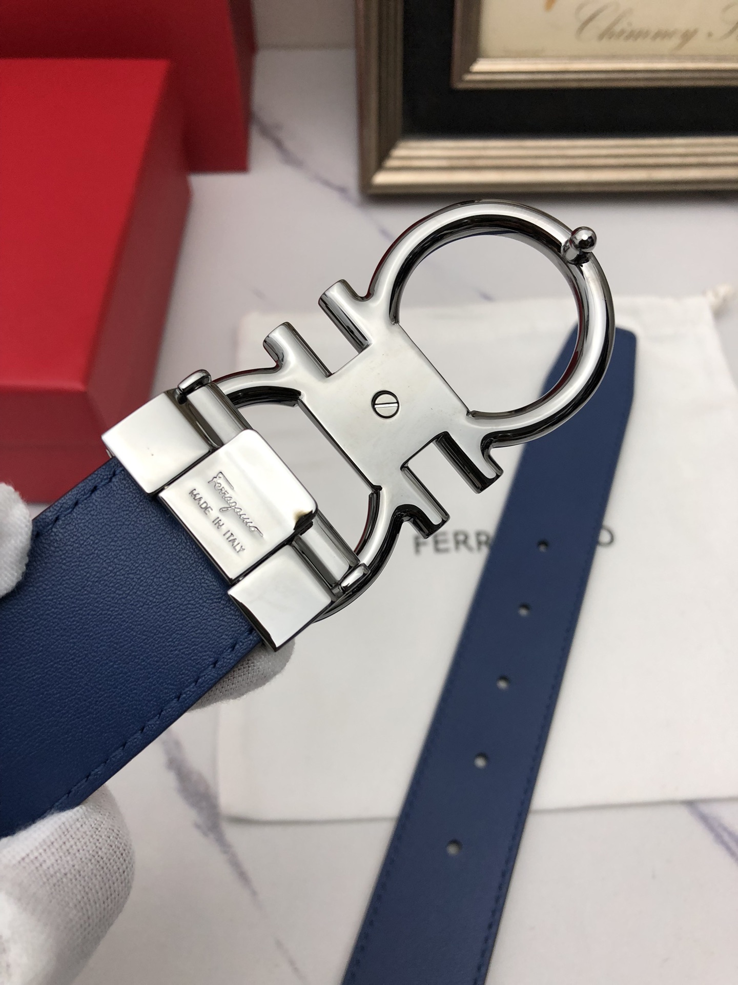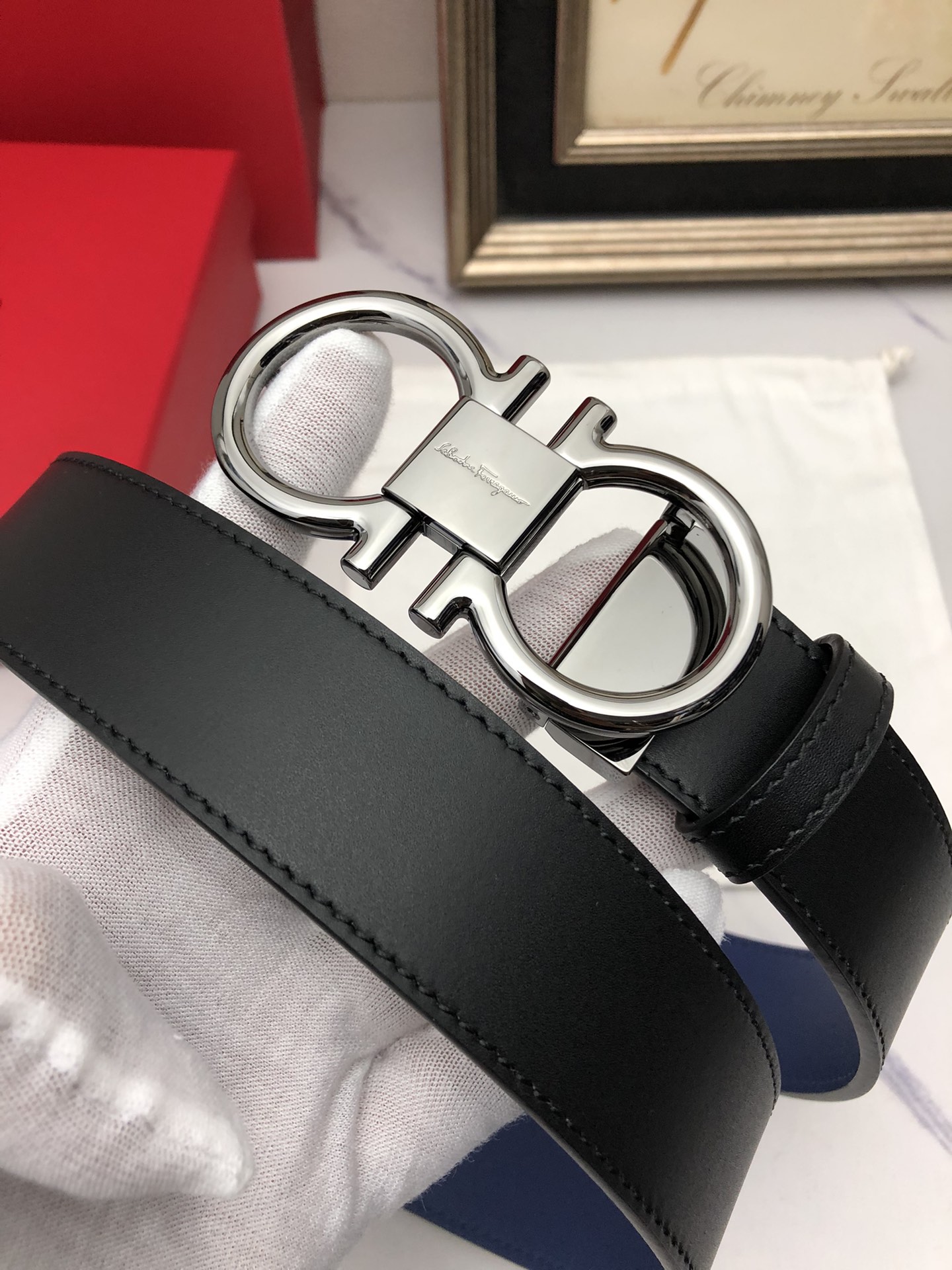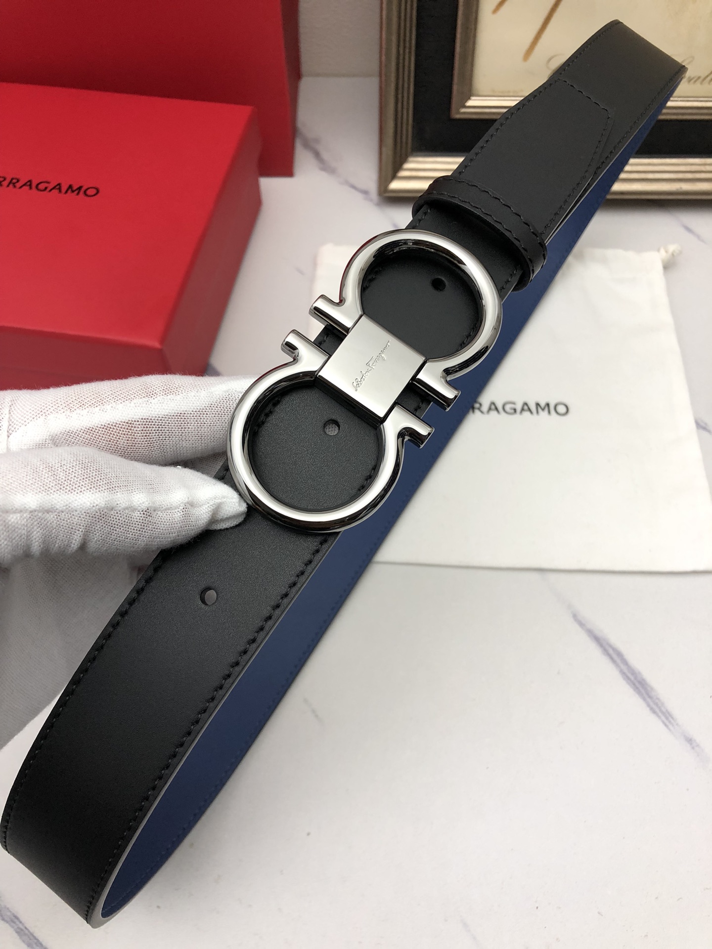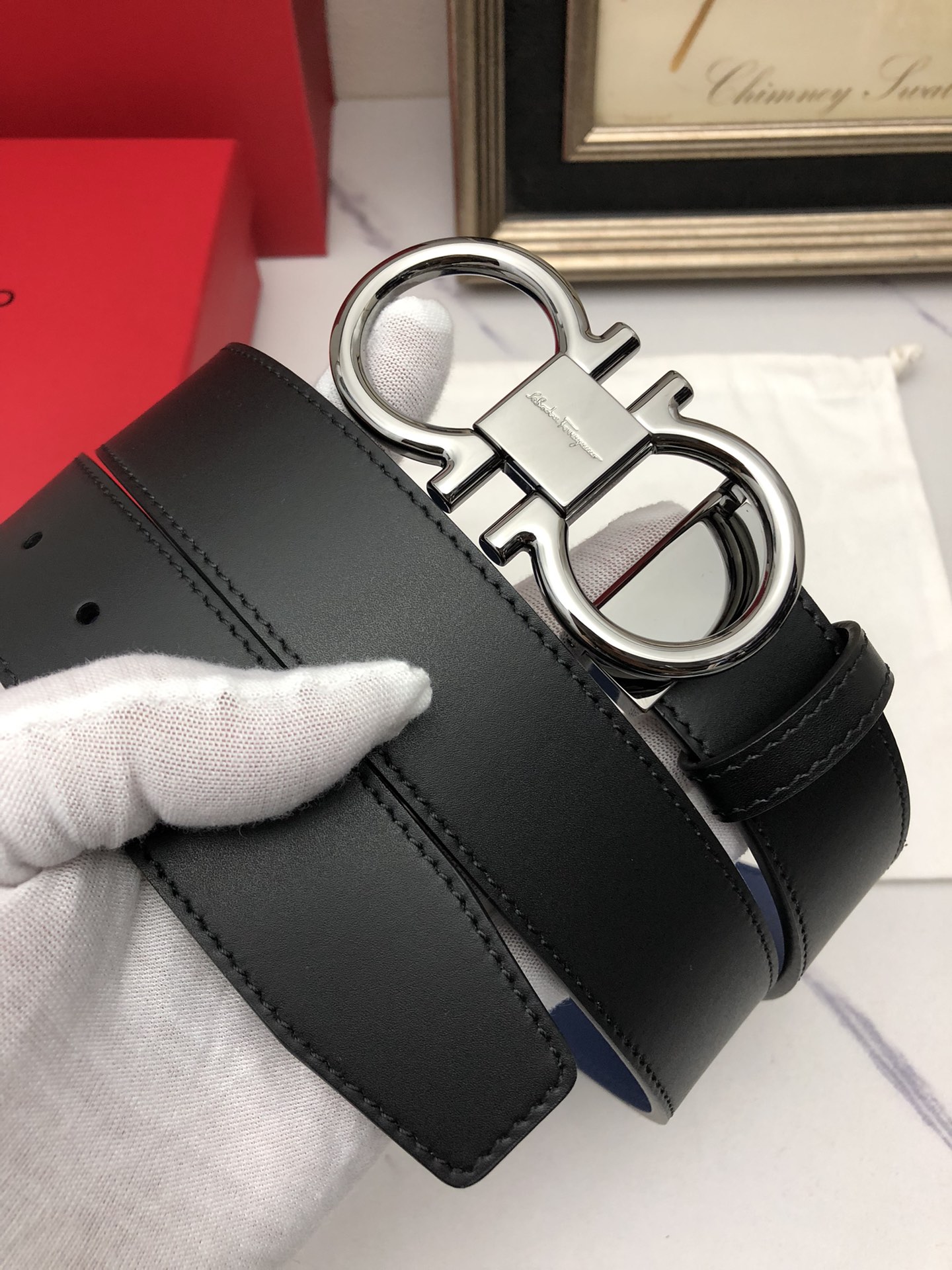 这款皮带是AAAAA 1:1 质量 (非常棒). 使用了和原版一模一样的材料. 商标部分也保持了和菲拉格慕/Salvatore Ferragamo一样. 图片拍摄是实物皮带拍摄, 您所收到的实物保证和我们图片一模一样.