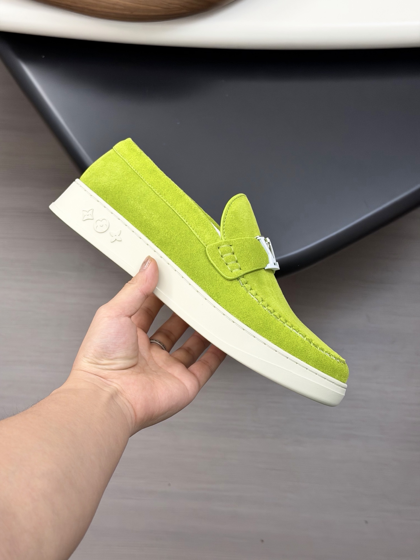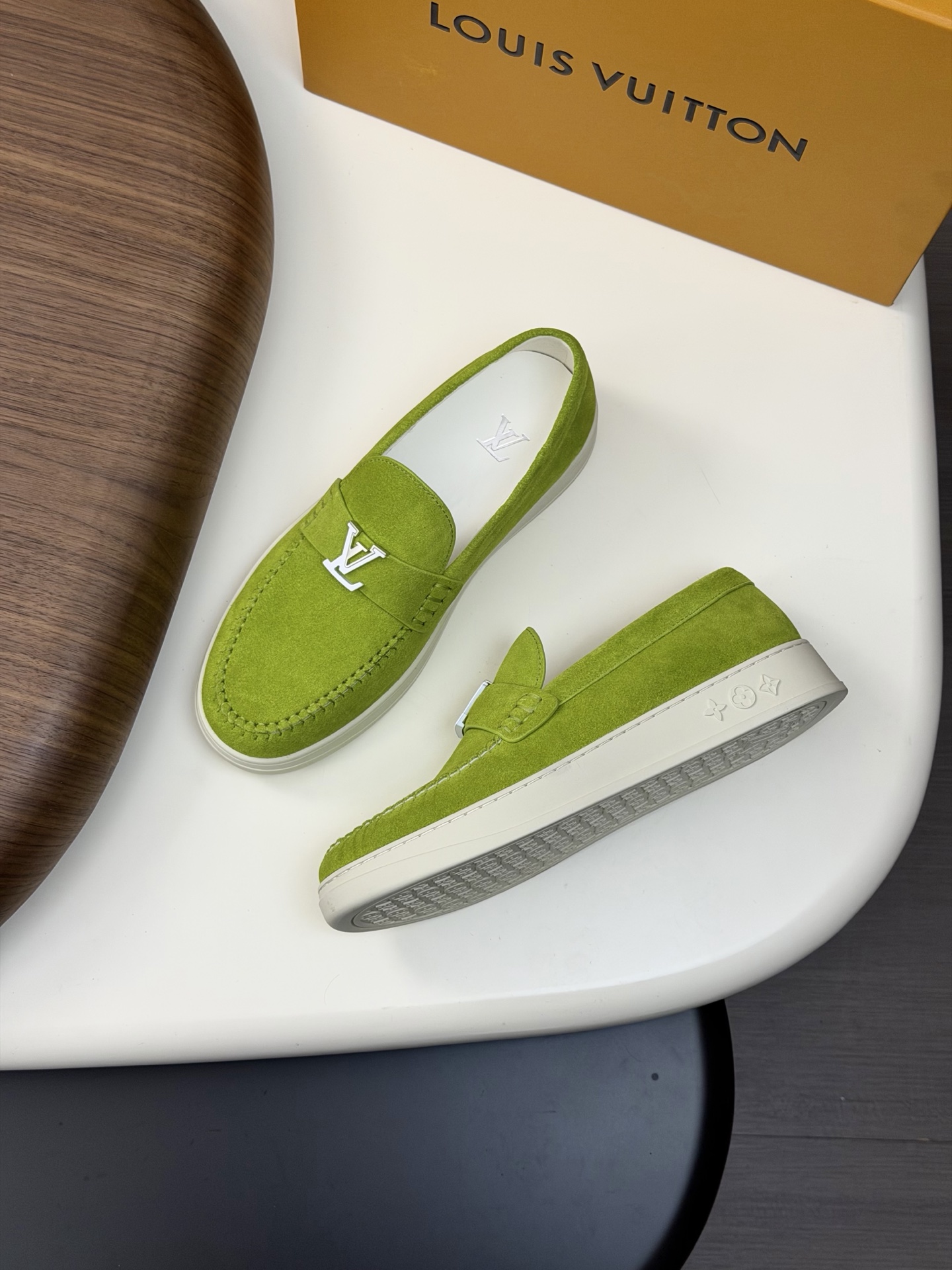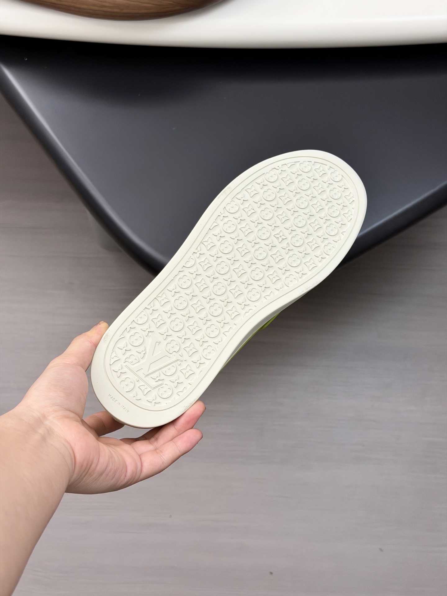 这款鞋子是AAAAA 1:1 质量 (非常棒). 使用了和原版一模一样的材料. 商标部分也保持了和路易威登/Louis Vuitton一样. 图片拍摄是实物鞋子拍摄, 您所收到的实物保证和我们图片一模一样.
