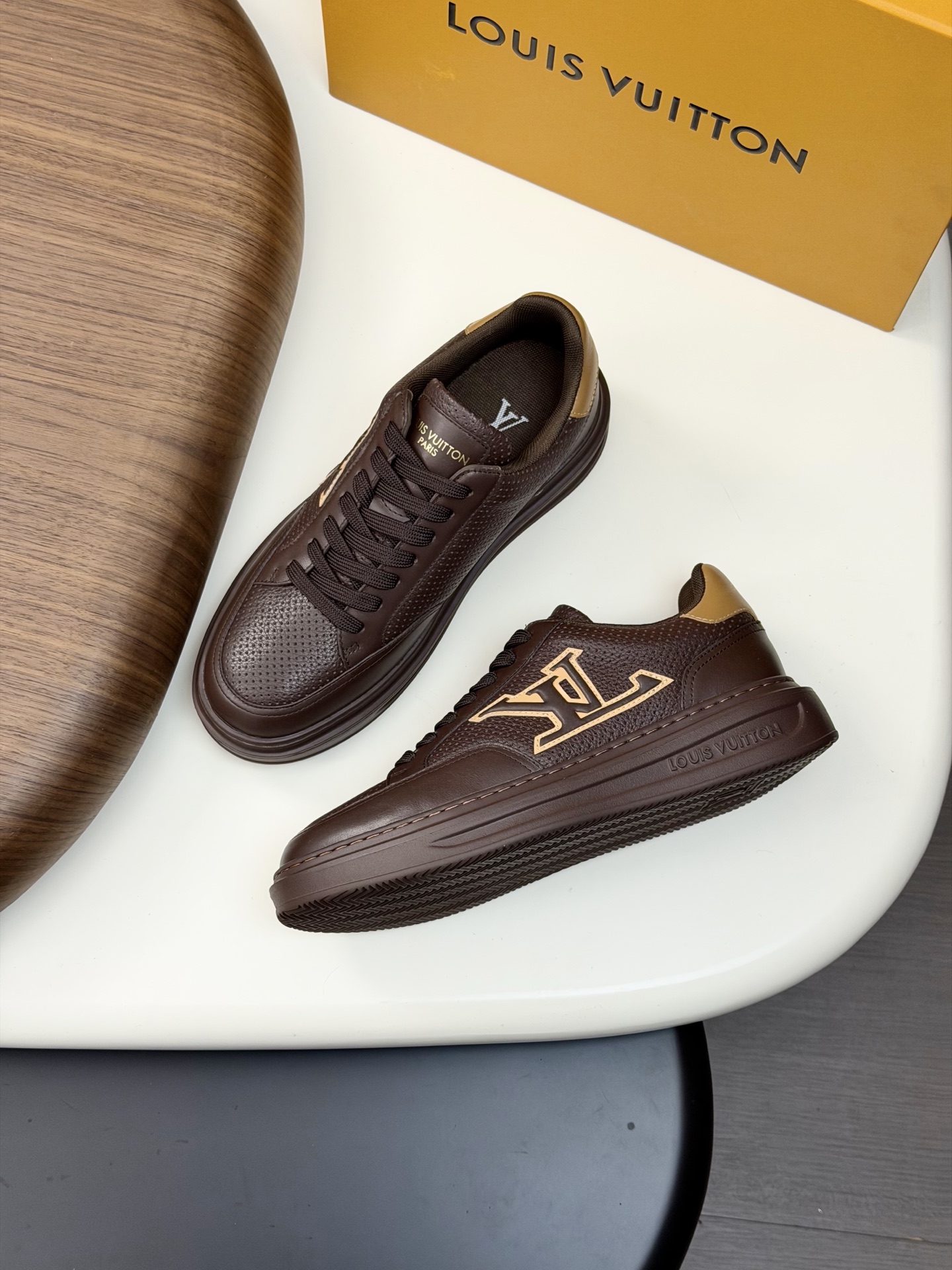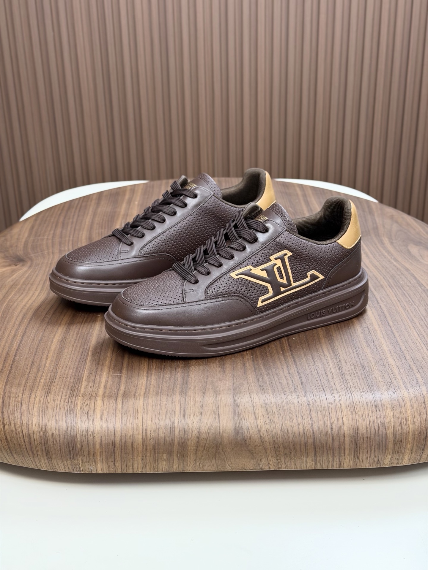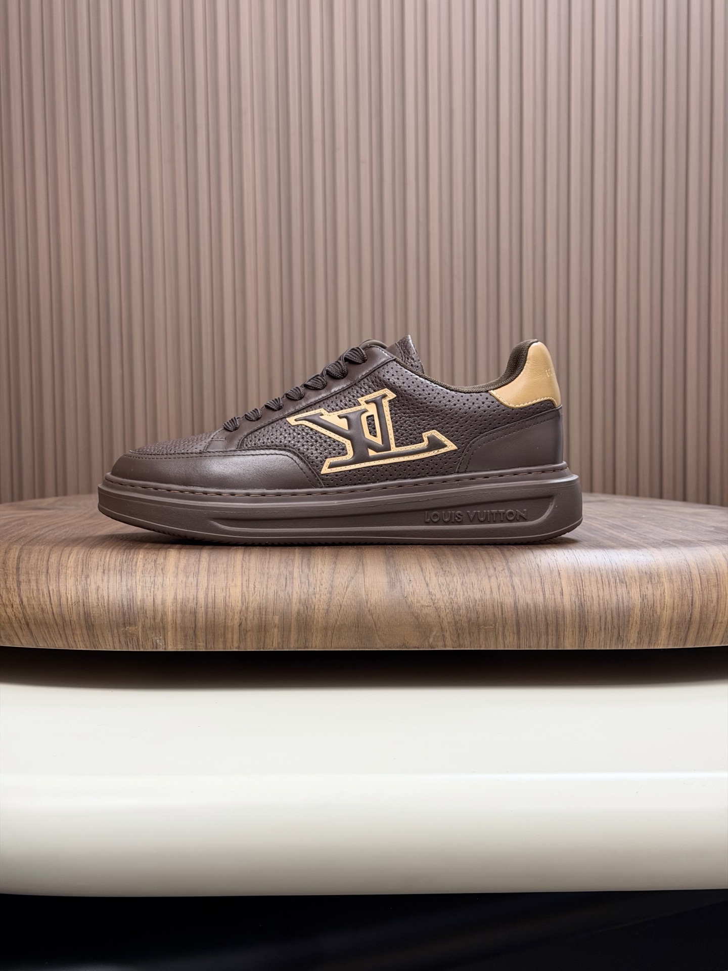 这款鞋子是AAAAA 1:1 质量 (非常棒). 使用了和原版一模一样的材料. 商标部分也保持了和路易威登/Louis Vuitton一样. 图片拍摄是实物鞋子拍摄, 您所收到的实物保证和我们图片一模一样.