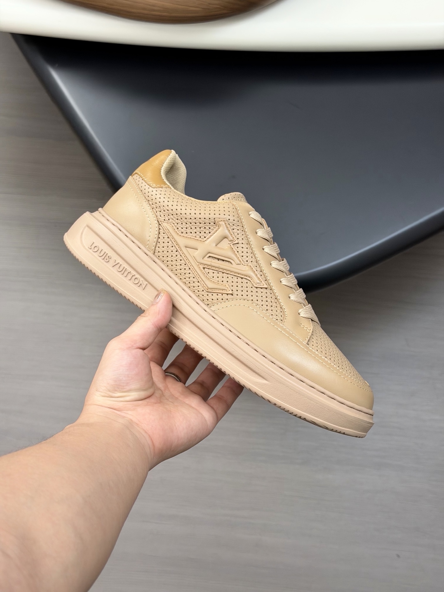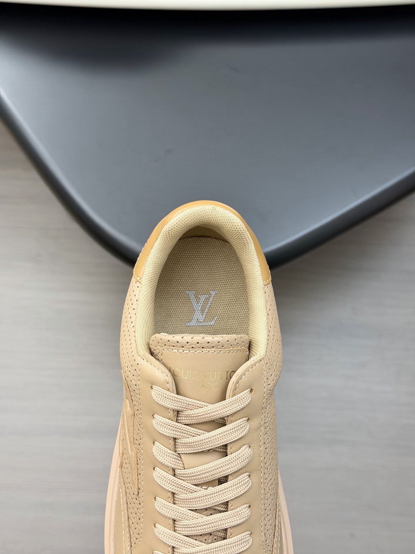 这款鞋子是AAAAA 1:1 质量 (非常棒). 使用了和原版一模一样的材料. 商标部分也保持了和路易威登/Louis Vuitton一样. 图片拍摄是实物鞋子拍摄, 您所收到的实物保证和我们图片一模一样.