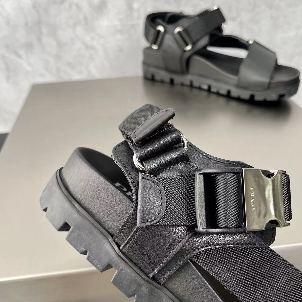 这款鞋子是AAAAA 1:1 质量 (非常棒). 使用了和原版一模一样的材料. 商标部分也保持了和普拉达/Prada一样. 图片拍摄是实物鞋子拍摄, 您所收到的实物保证和我们图片一模一样.