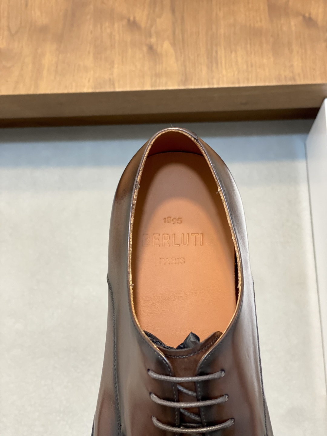 这款鞋子是AAAAA 1:1 质量 (非常棒). 使用了和原版一模一样的材料. 商标部分也保持了和Berluti一样. 图片拍摄是实物鞋子拍摄, 您所收到的实物保证和我们图片一模一样.