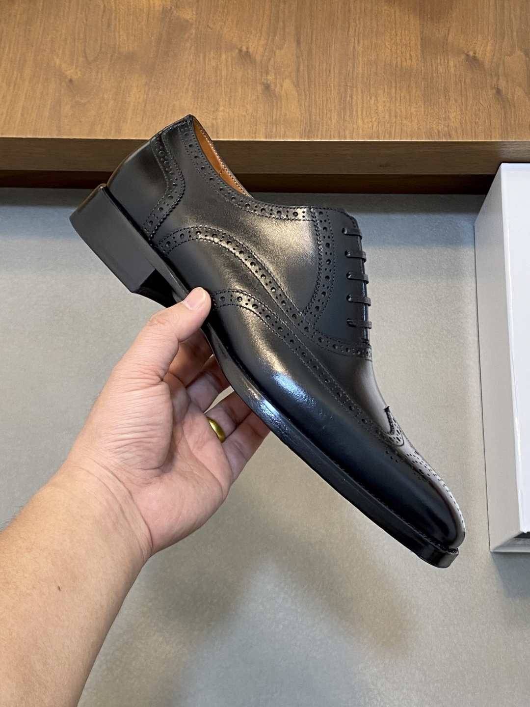 这款鞋子是AAAAA 1:1 质量 (非常棒). 使用了和原版一模一样的材料. 商标部分也保持了和Berluti一样. 图片拍摄是实物鞋子拍摄, 您所收到的实物保证和我们图片一模一样.