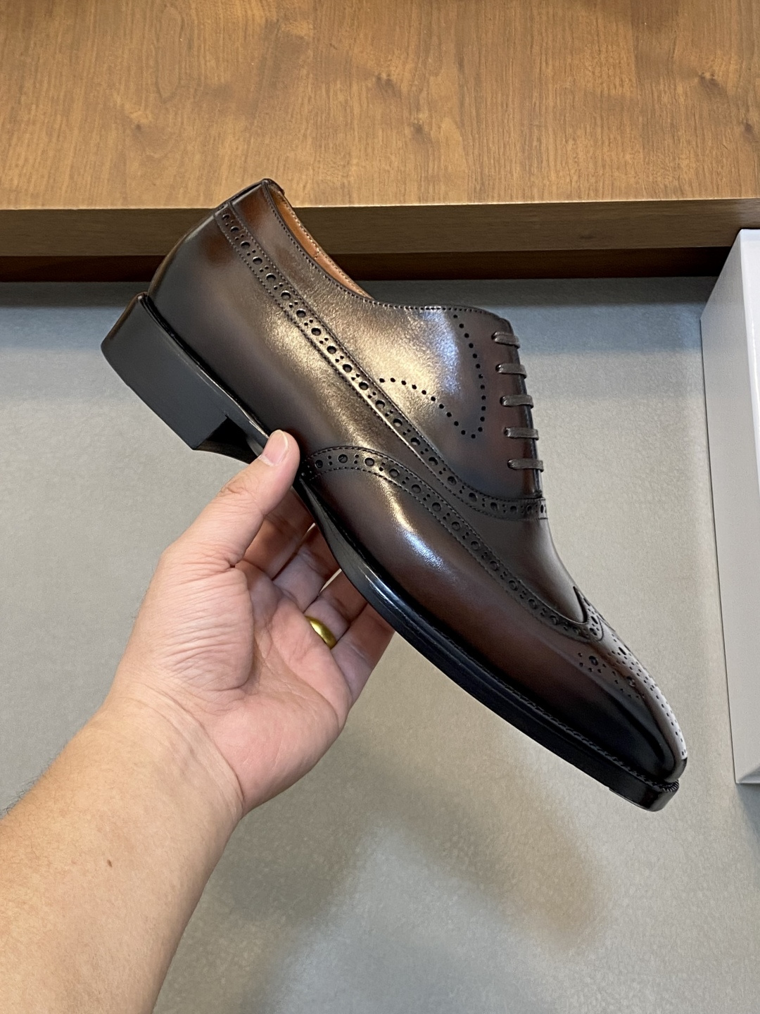 这款鞋子是AAAAA 1:1 质量 (非常棒). 使用了和原版一模一样的材料. 商标部分也保持了和Berluti一样. 图片拍摄是实物鞋子拍摄, 您所收到的实物保证和我们图片一模一样.