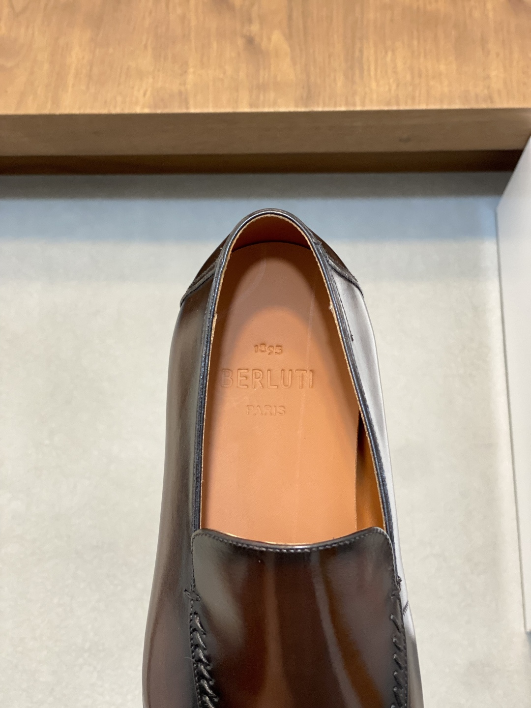 这款鞋子是AAAAA 1:1 质量 (非常棒). 使用了和原版一模一样的材料. 商标部分也保持了和Berluti一样. 图片拍摄是实物鞋子拍摄, 您所收到的实物保证和我们图片一模一样.