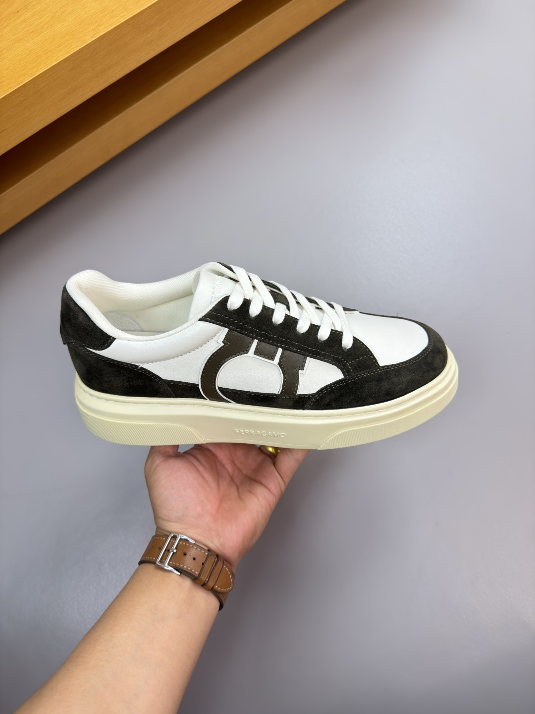 这款鞋子是AAAAA 1:1 质量 (非常棒). 使用了和原版一模一样的材料. 商标部分也保持了和菲拉格慕/Salvatore Ferragamo一样. 图片拍摄是实物鞋子拍摄, 您所收到的实物保证和我们图片一模一样.