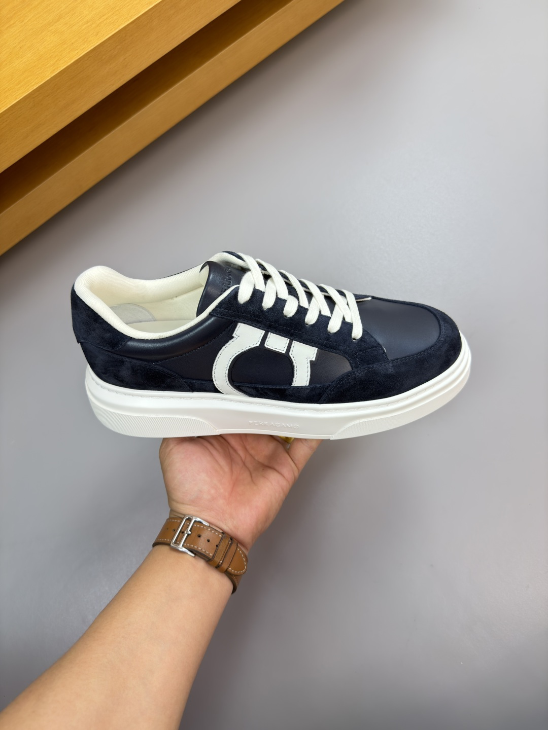 这款鞋子是AAAAA 1:1 质量 (非常棒). 使用了和原版一模一样的材料. 商标部分也保持了和菲拉格慕/Salvatore Ferragamo一样. 图片拍摄是实物鞋子拍摄, 您所收到的实物保证和我们图片一模一样.