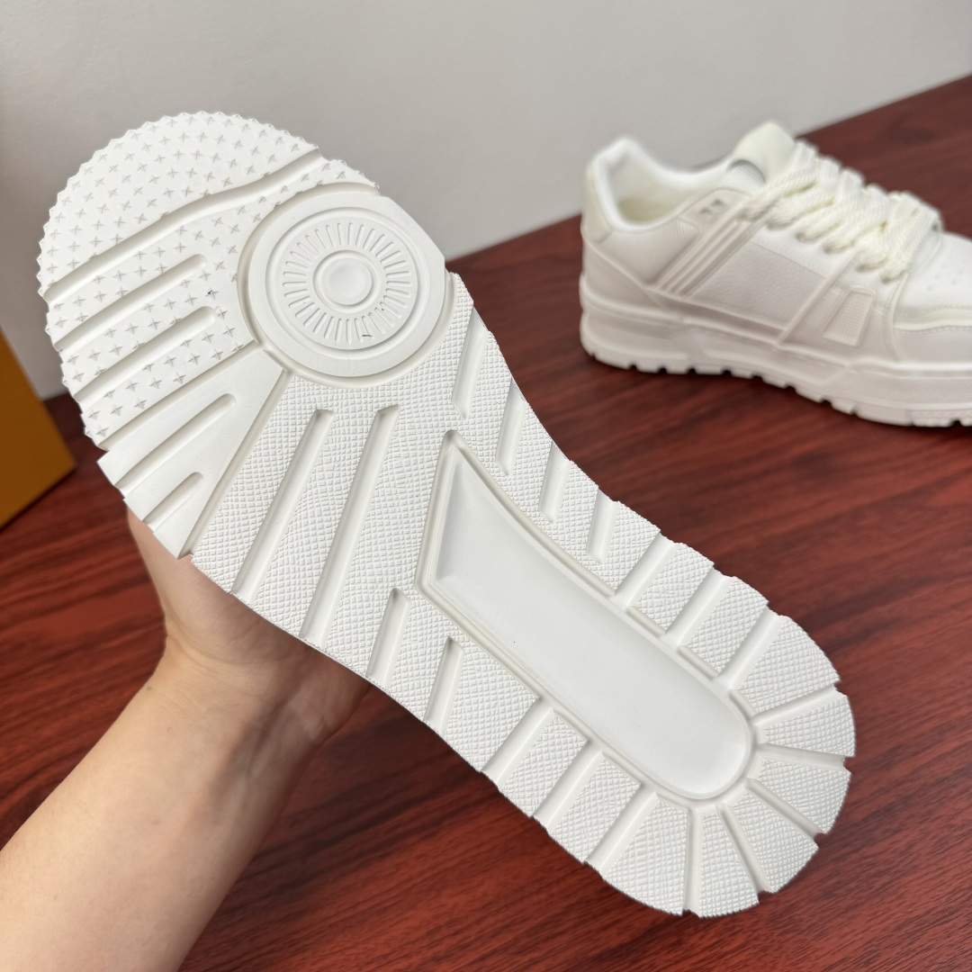 这款鞋子是AAAAA 1:1 质量 (非常棒). 使用了和原版一模一样的材料. 商标部分也保持了和路易威登/Louis Vuitton一样. 图片拍摄是实物鞋子拍摄, 您所收到的实物保证和我们图片一模一样.