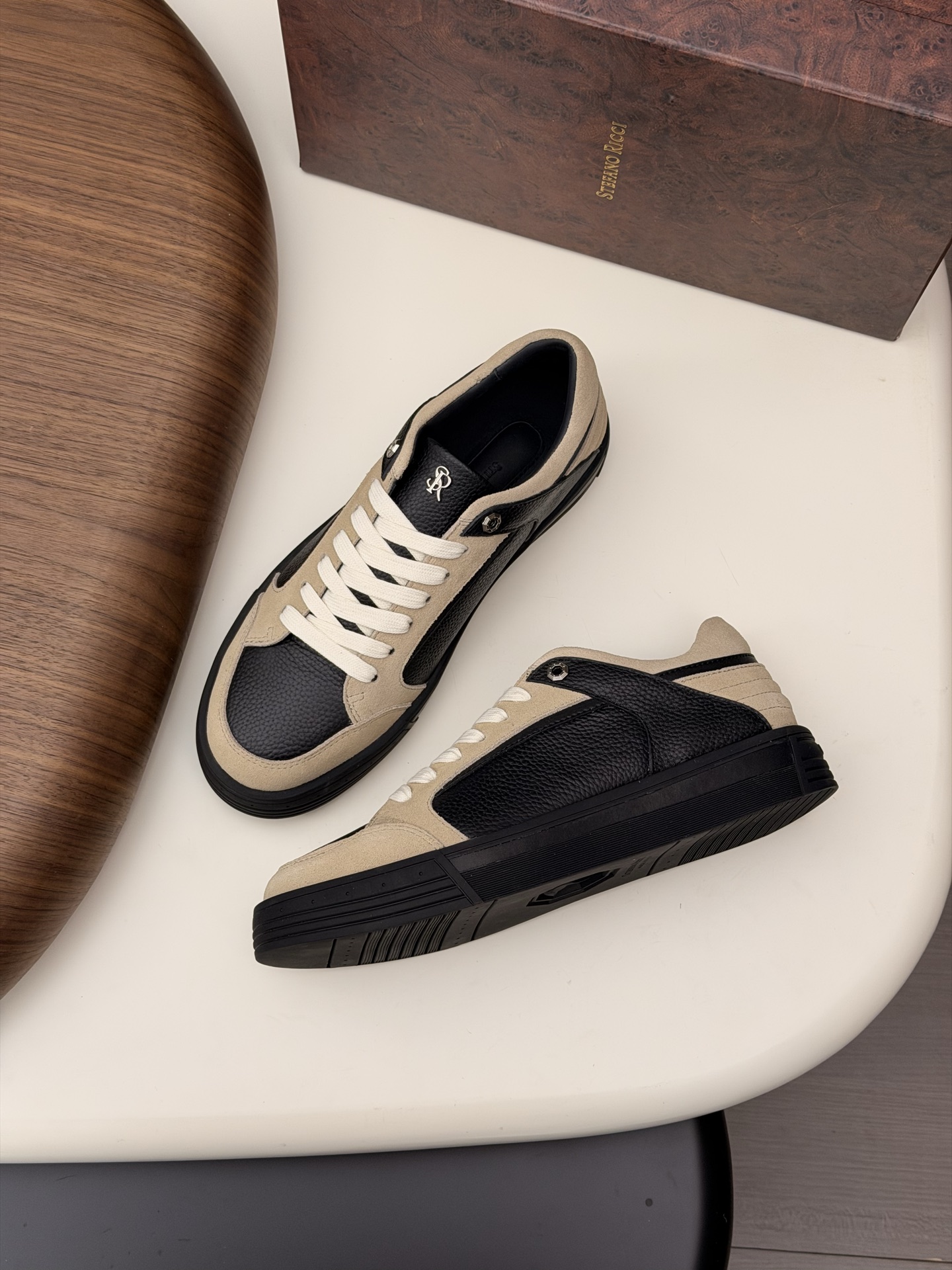 这款鞋子是AAAAA 1:1 质量 (非常棒). 使用了和原版一模一样的材料. 商标部分也保持了和史蒂芬劳.尼治/Stefano Ricci一样. 图片拍摄是实物鞋子拍摄, 您所收到的实物保证和我们图片一模一样.