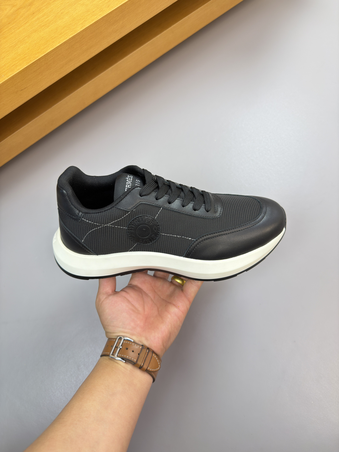 这款鞋子是AAAAA 1:1 质量 (非常棒). 使用了和原版一模一样的材料. 商标部分也保持了和爱马仕/Hermes一样. 图片拍摄是实物鞋子拍摄, 您所收到的实物保证和我们图片一模一样.