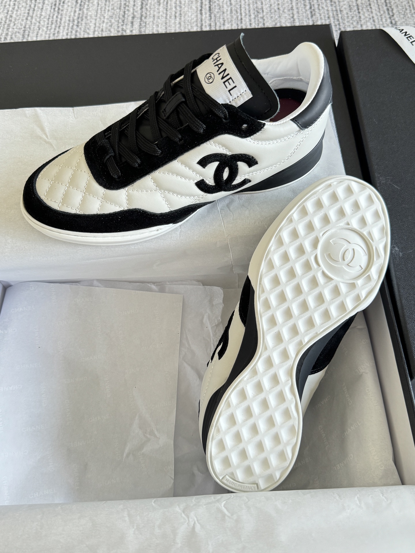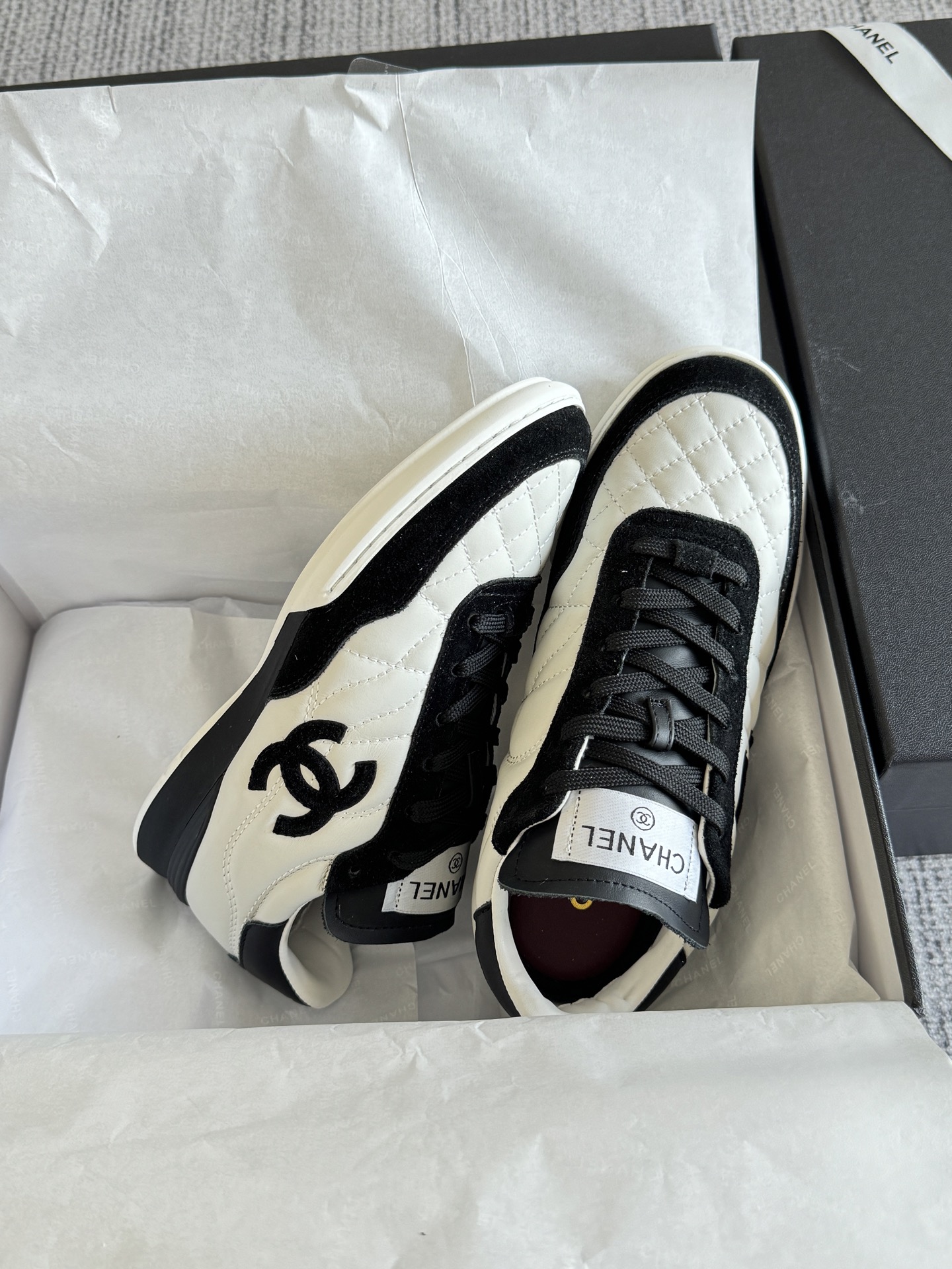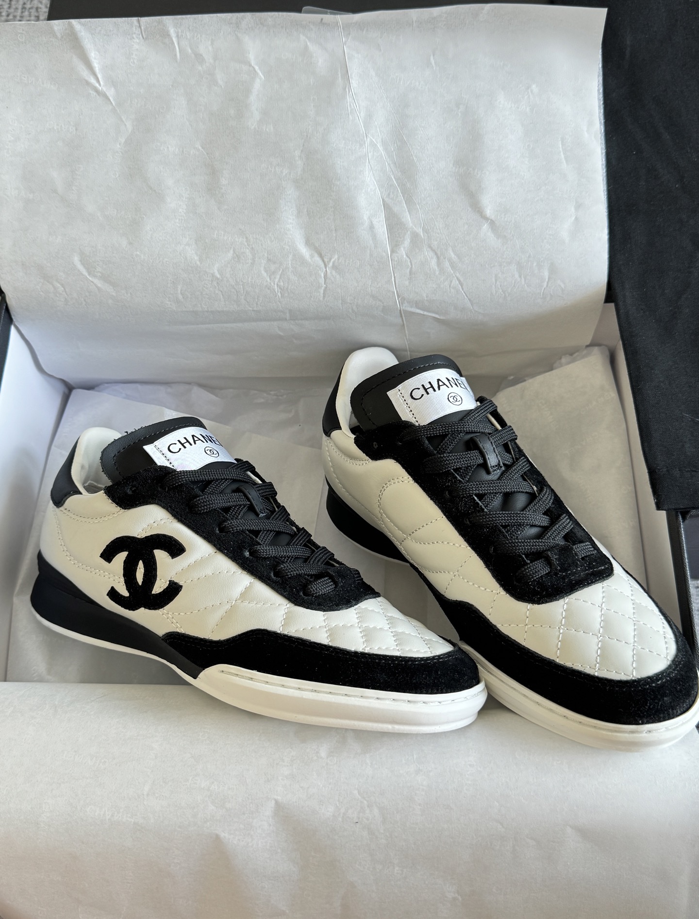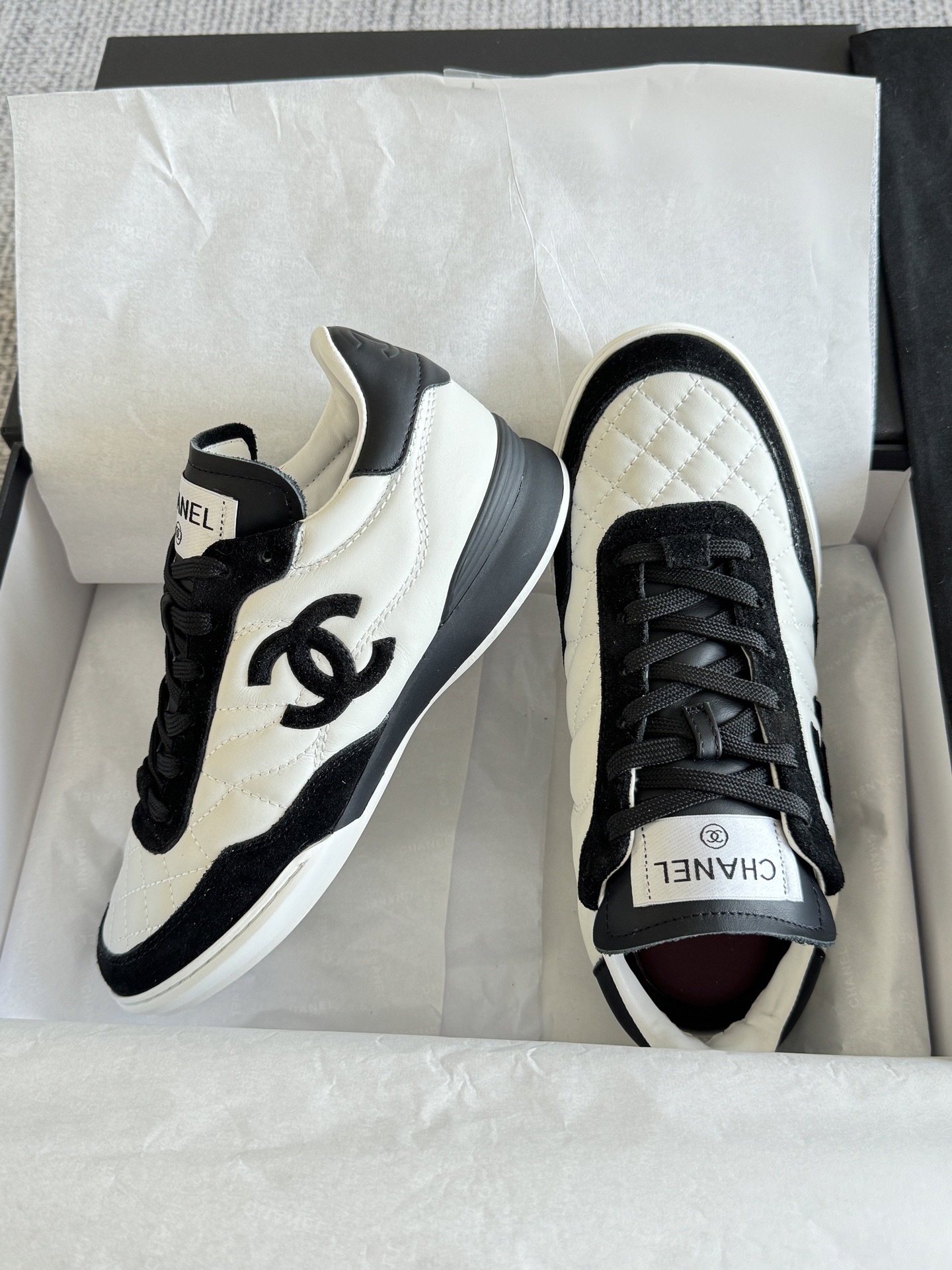 这款鞋子是AAAAA 1:1 质量 (非常棒). 使用了和原版一模一样的材料. 商标部分也保持了和香奈儿/Chanel一样. 图片拍摄是实物鞋子拍摄, 您所收到的实物保证和我们图片一模一样.