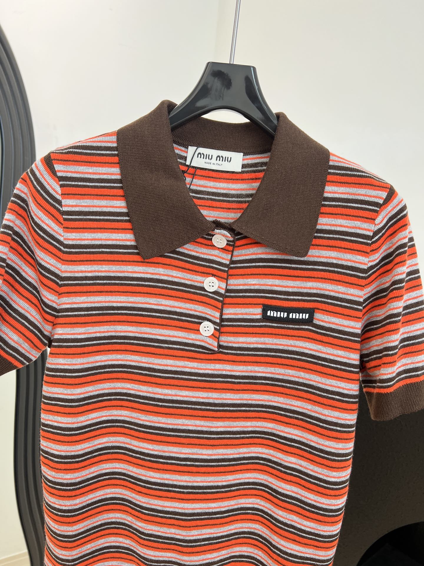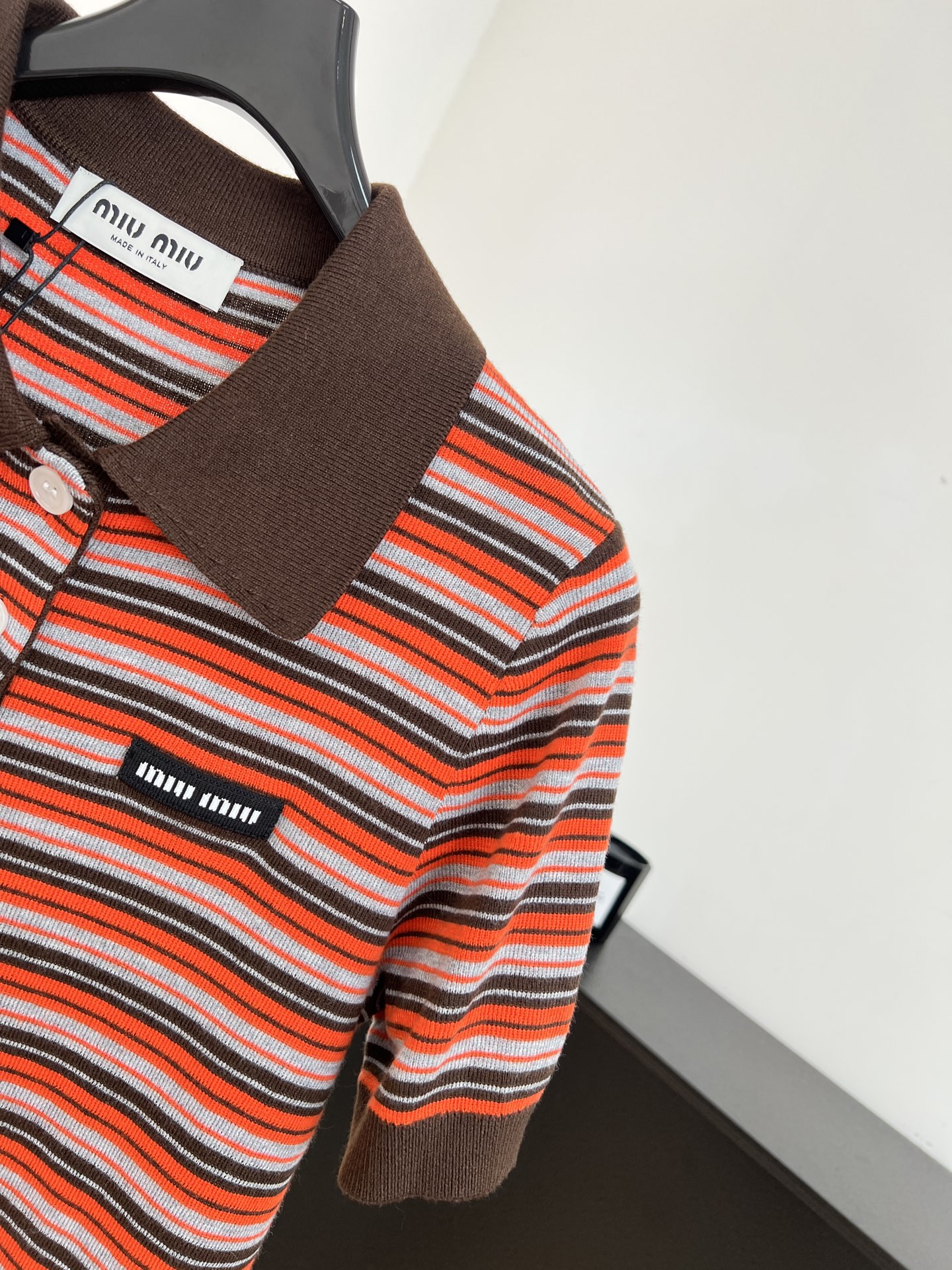 这款衣服是AAAAA 1:1 质量 (非常棒). 使用了和原版一模一样的材料. 商标部分也保持了和缪缪/Miu Miu一样. 图片拍摄是实物衣服拍摄, 您所收到的实物保证和我们图片一模一样.