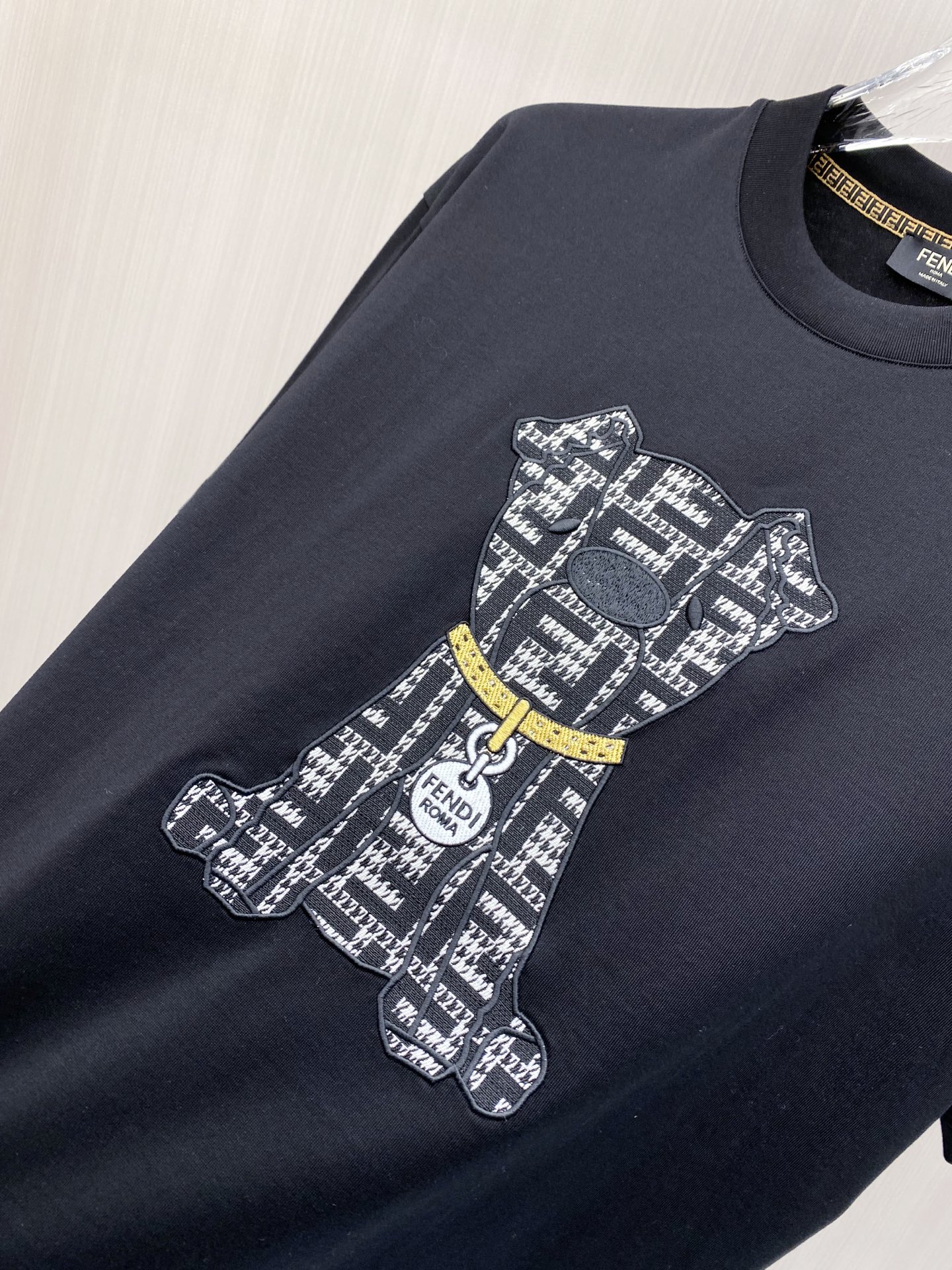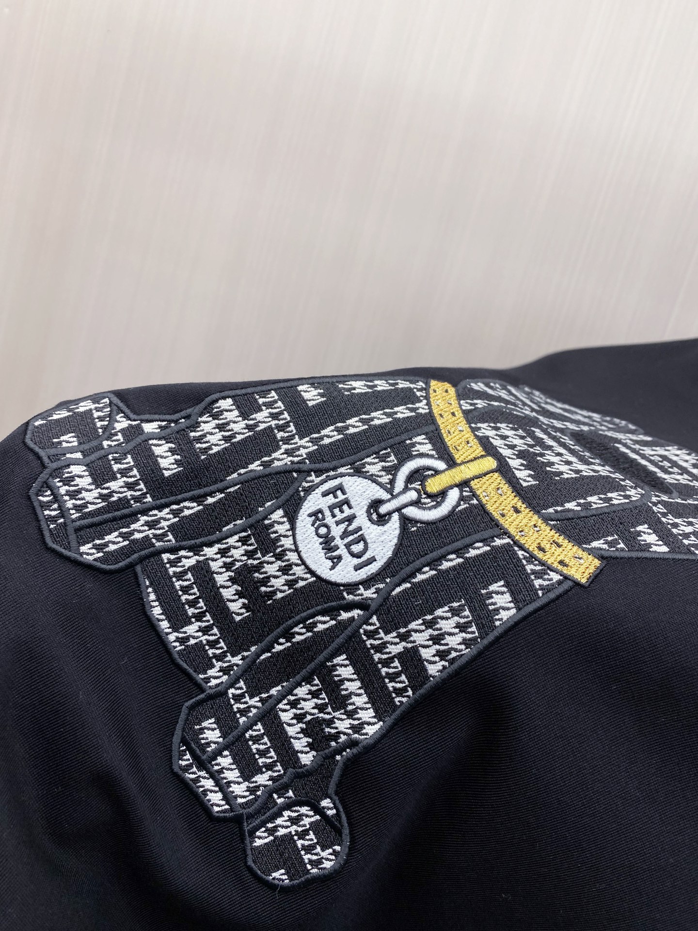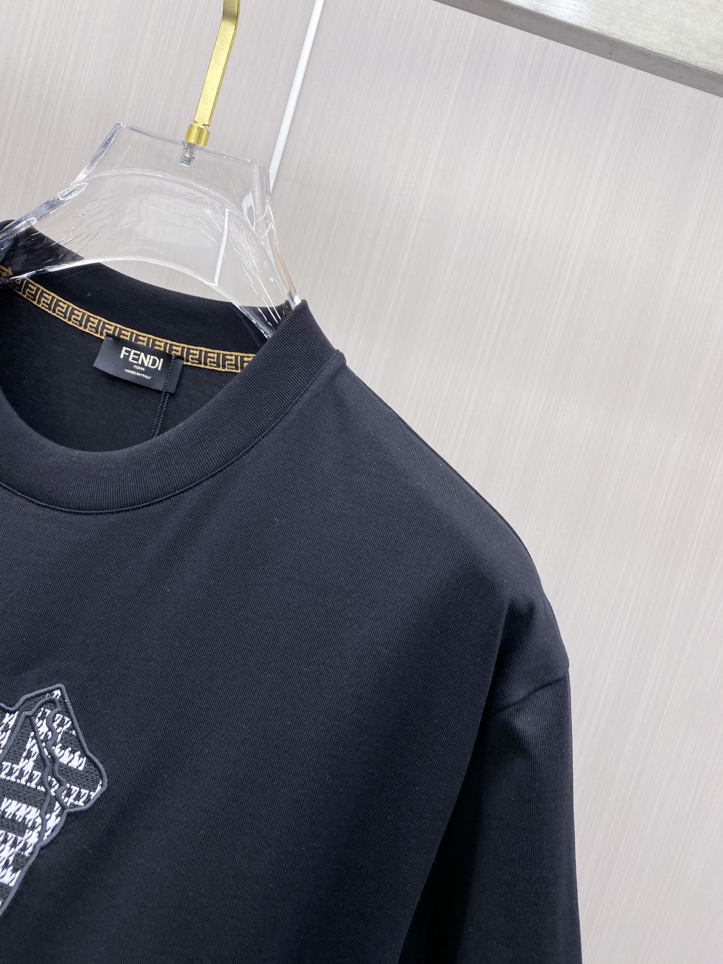这款衣服是AAAAA 1:1 质量 (非常棒). 使用了和原版一模一样的材料. 商标部分也保持了和芬迪/Fendi一样. 图片拍摄是实物衣服拍摄, 您所收到的实物保证和我们图片一模一样.