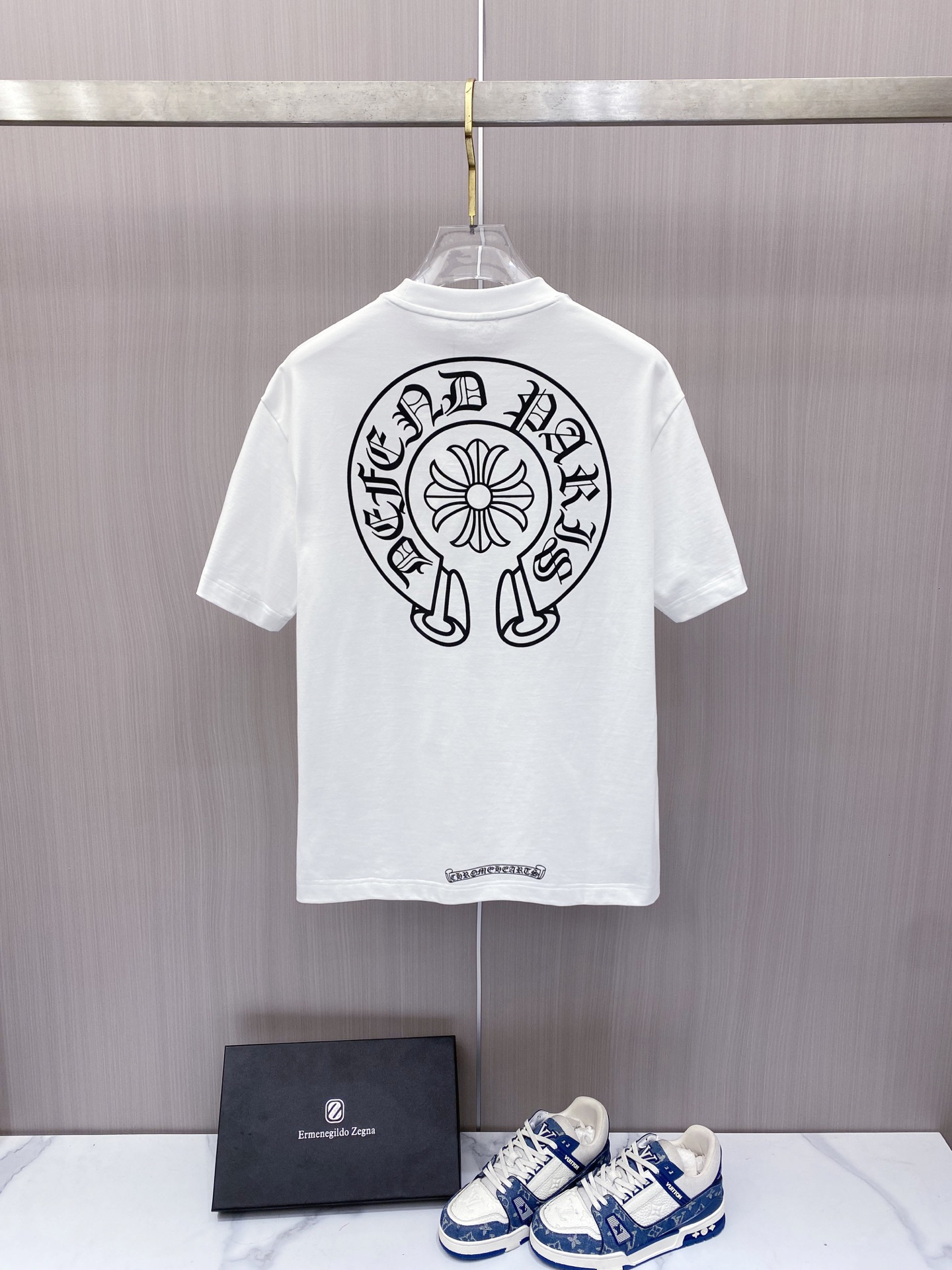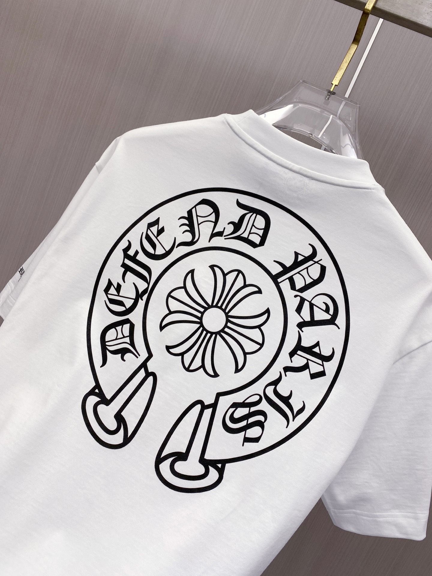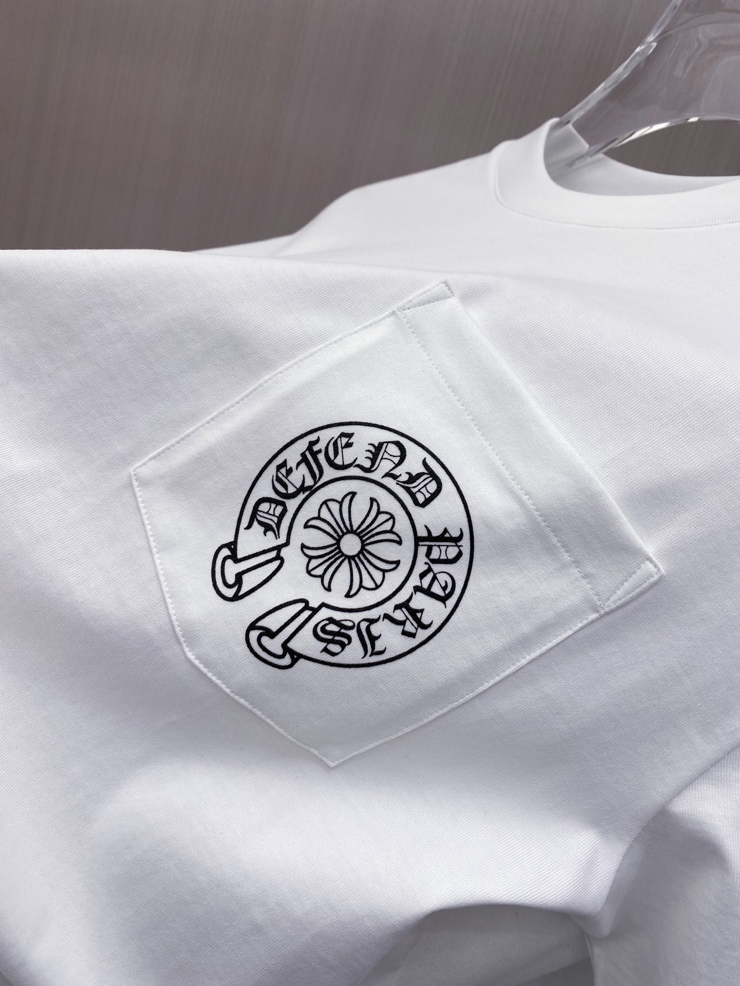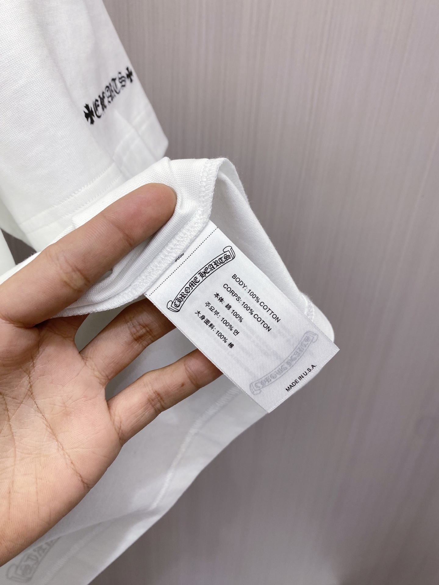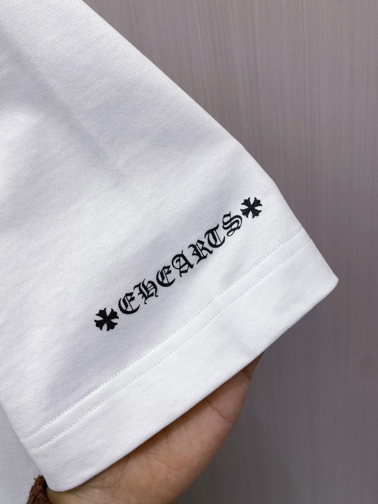 这款衣服是AAAAA 1:1 质量 (非常棒). 使用了和原版一模一样的材料. 商标部分也保持了和克罗心/Chrome Hearts一样. 图片拍摄是实物衣服拍摄, 您所收到的实物保证和我们图片一模一样.