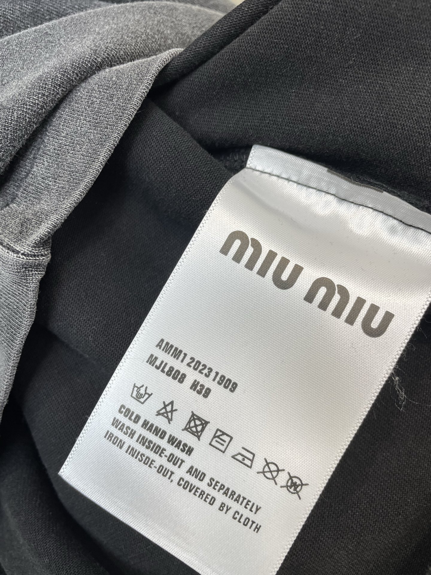 这款衣服是AAAAA 1:1 质量 (非常棒). 使用了和原版一模一样的材料. 商标部分也保持了和缪缪/Miu Miu一样. 图片拍摄是实物衣服拍摄, 您所收到的实物保证和我们图片一模一样.