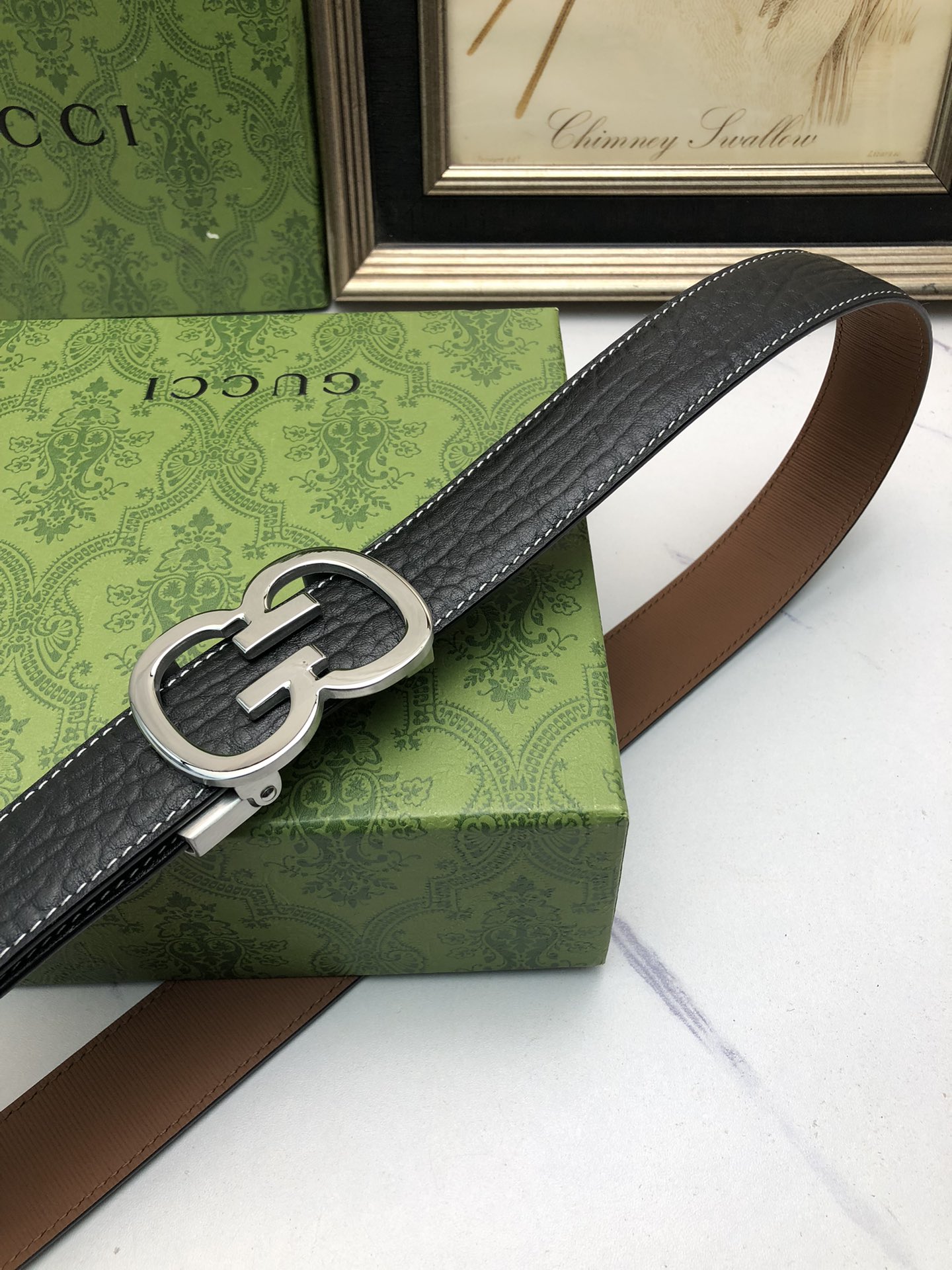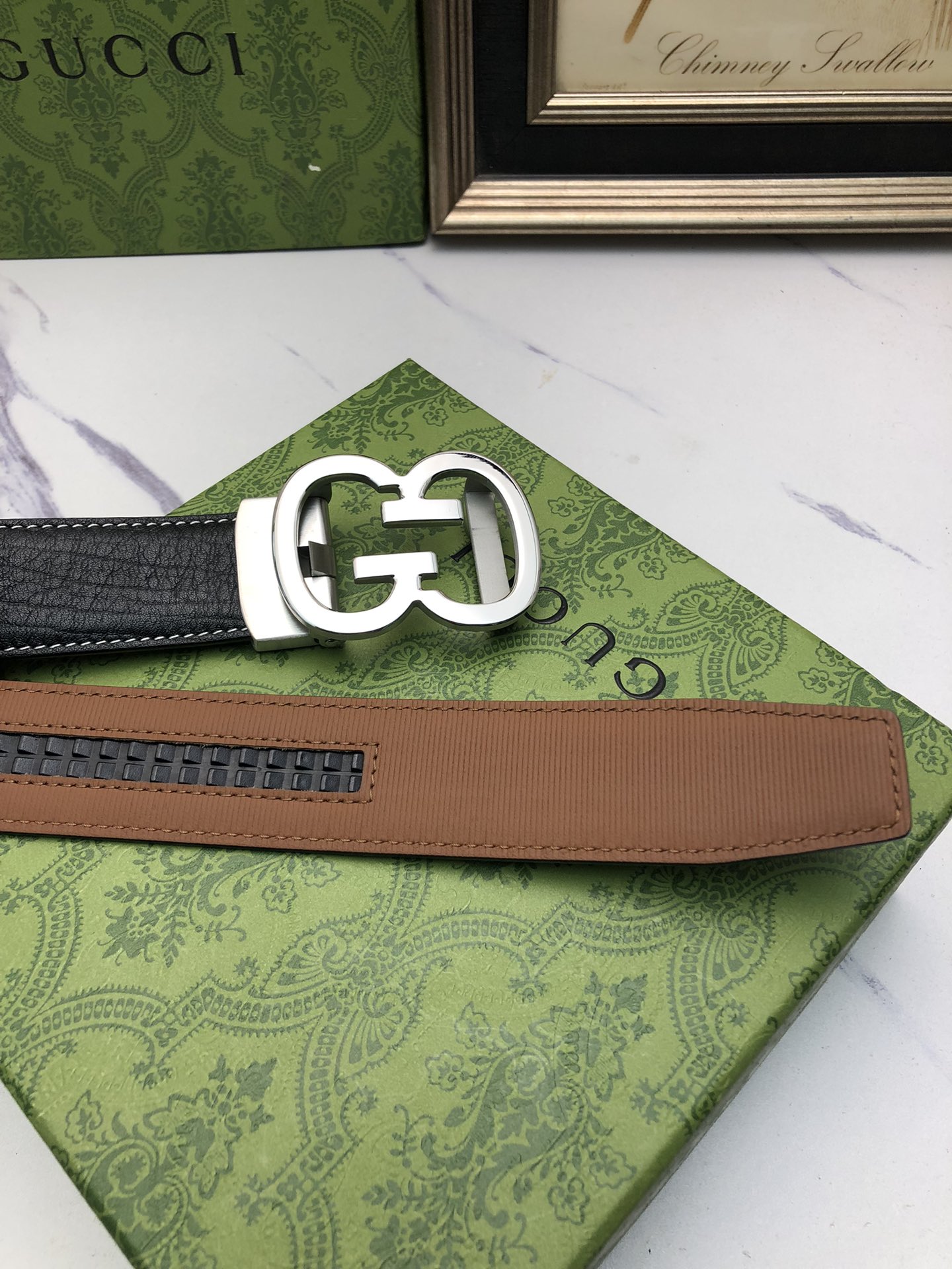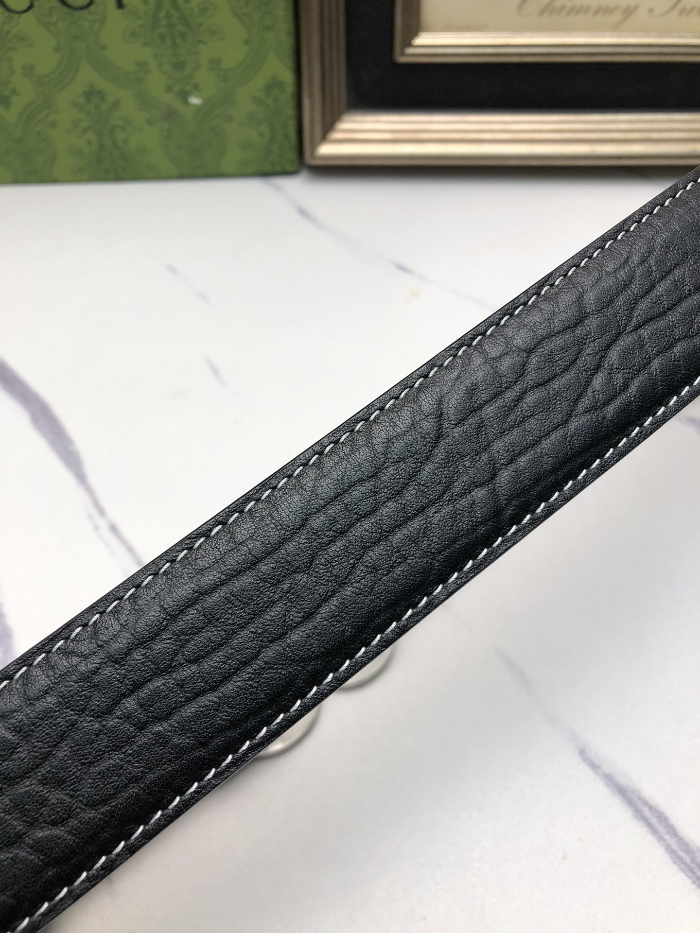 这款皮带是AAAAA 1:1 质量 (非常棒). 使用了和原版一模一样的材料. 商标部分也保持了和古奇/Gucci一样. 图片拍摄是实物皮带拍摄, 您所收到的实物保证和我们图片一模一样.
