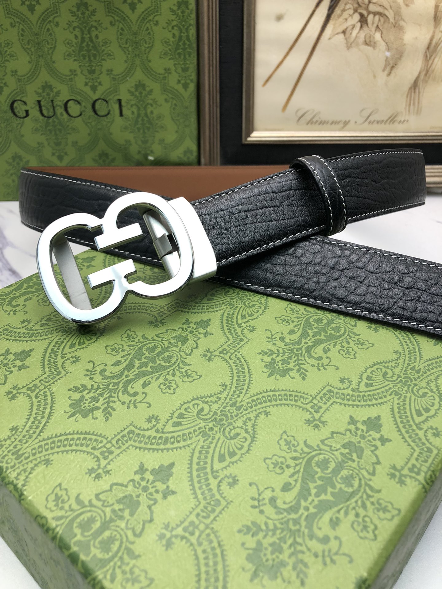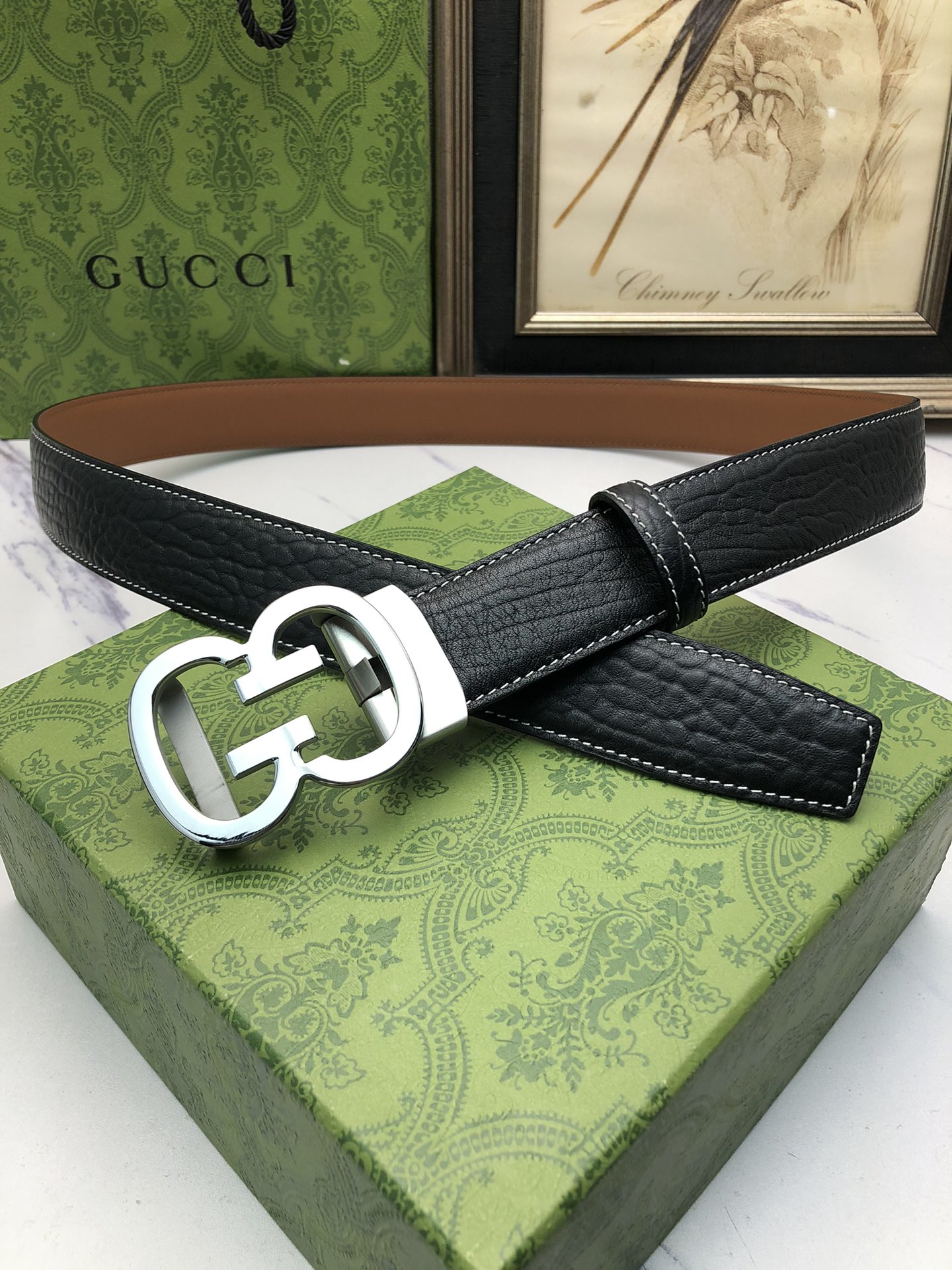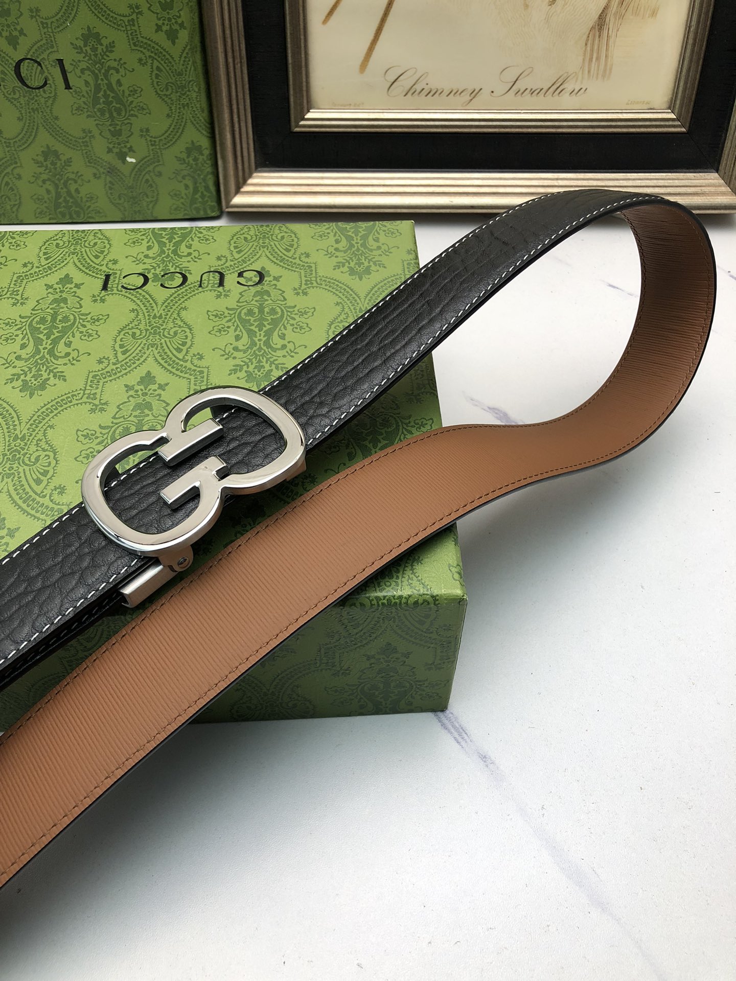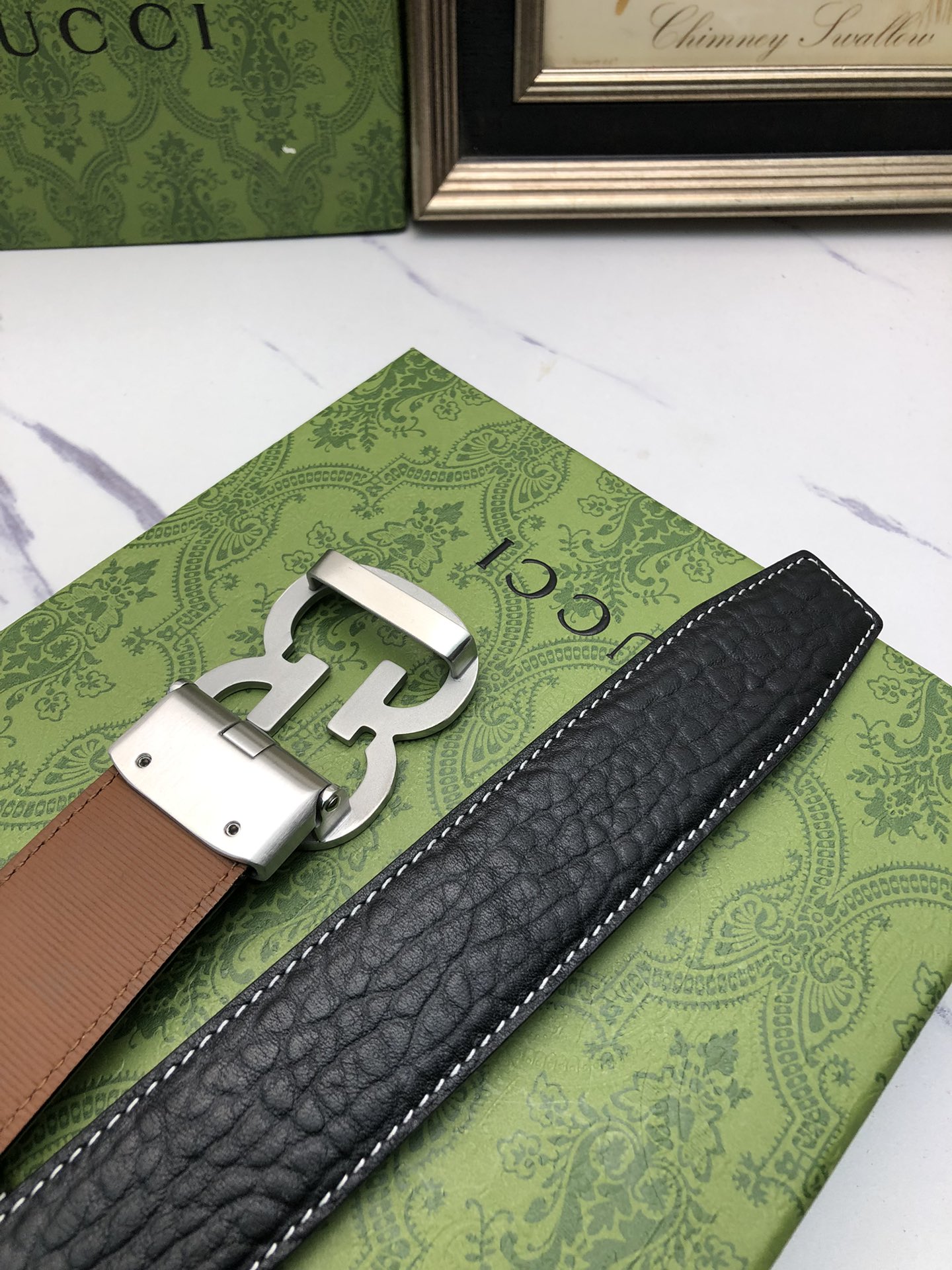 这款皮带是AAAAA 1:1 质量 (非常棒). 使用了和原版一模一样的材料. 商标部分也保持了和古奇/Gucci一样. 图片拍摄是实物皮带拍摄, 您所收到的实物保证和我们图片一模一样.