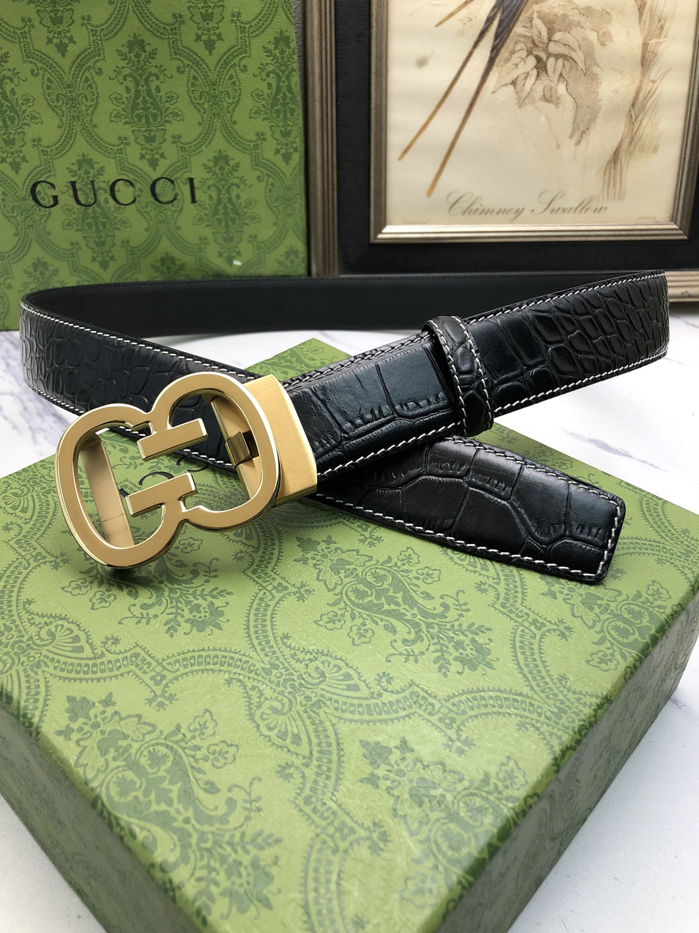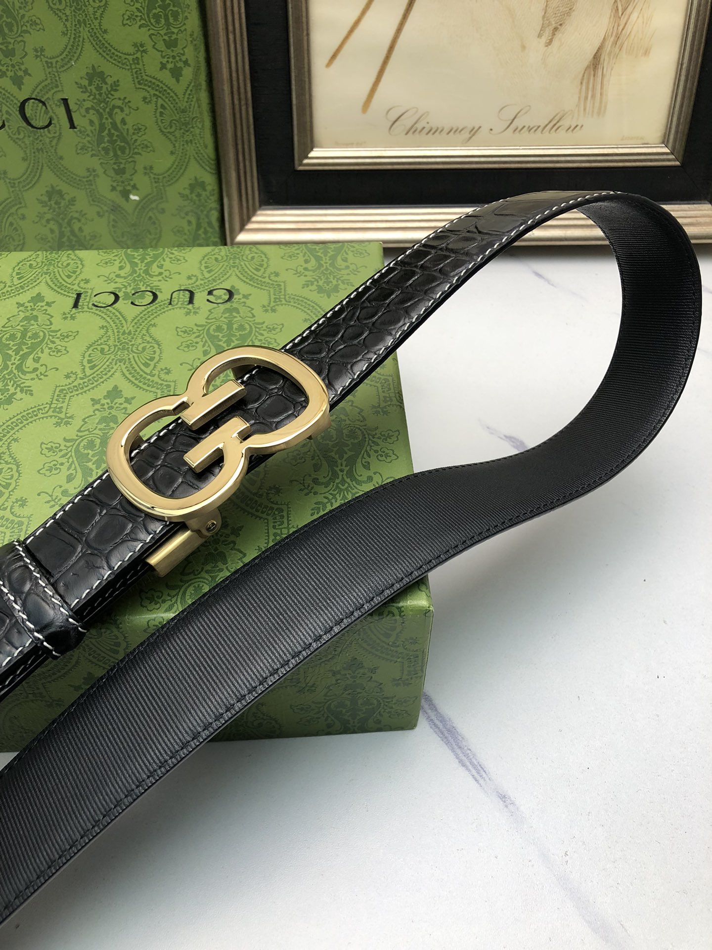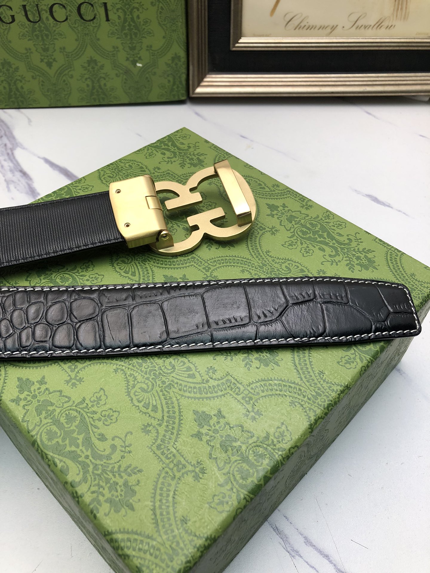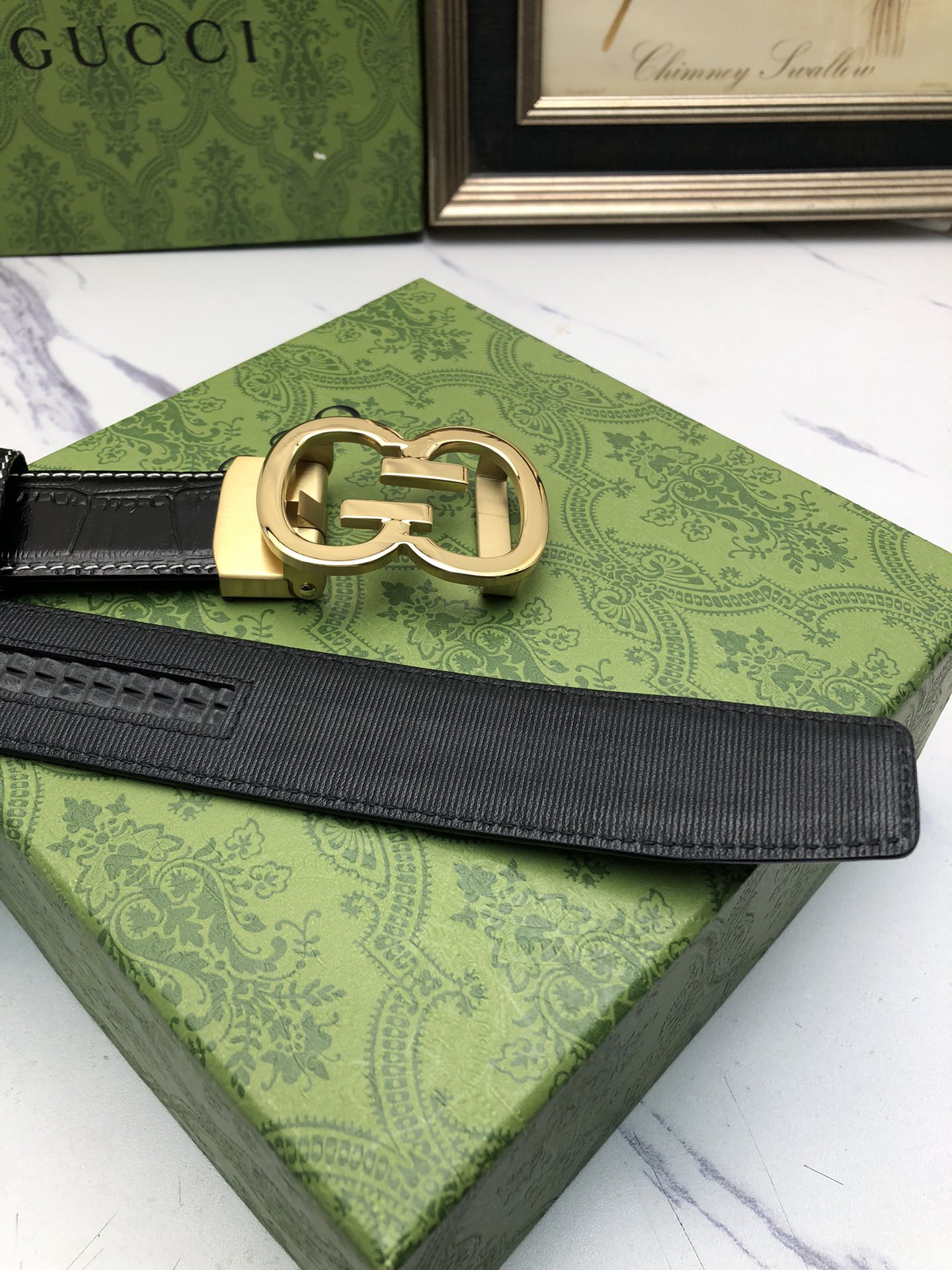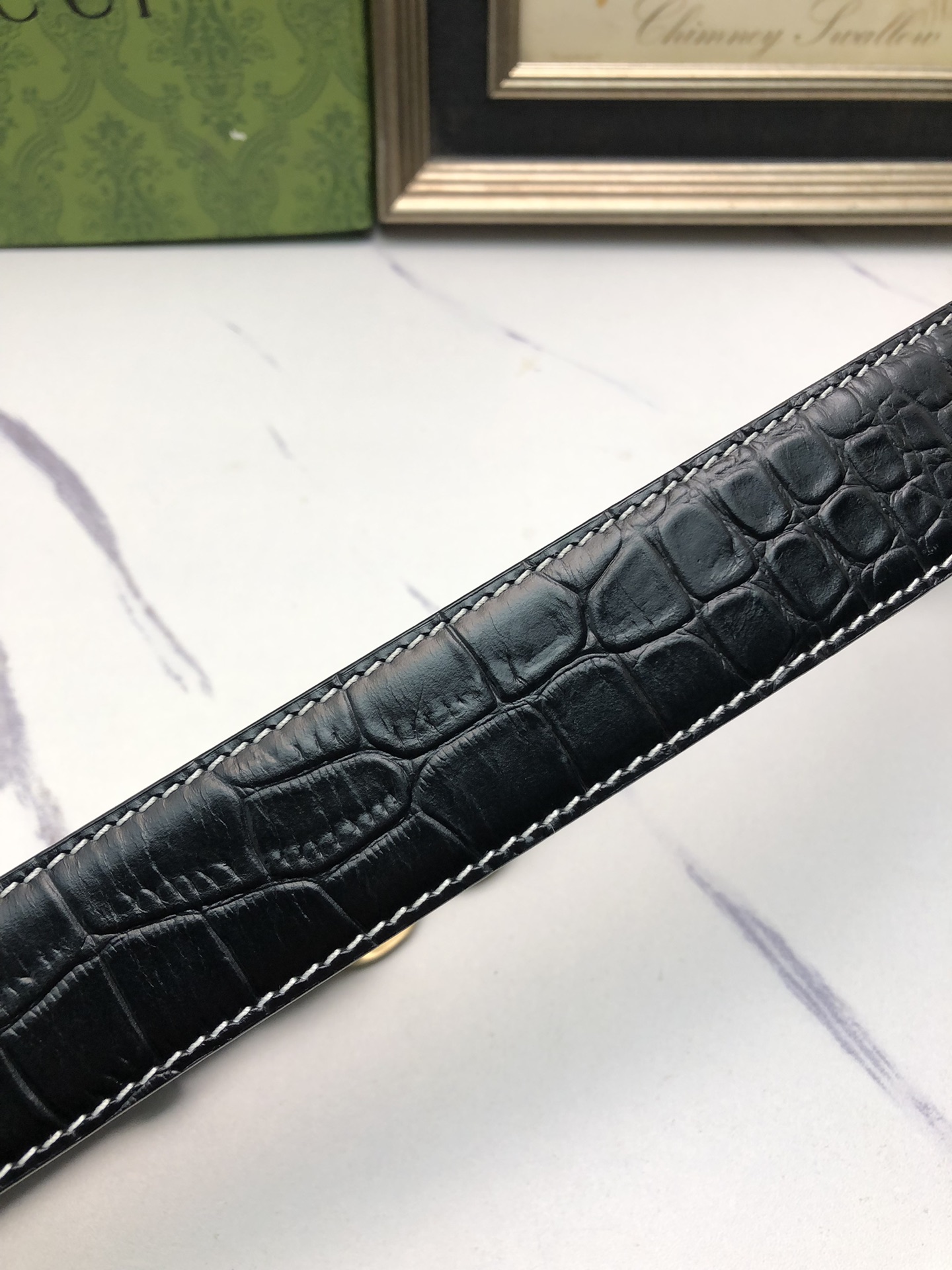 这款皮带是AAAAA 1:1 质量 (非常棒). 使用了和原版一模一样的材料. 商标部分也保持了和古奇/Gucci一样. 图片拍摄是实物皮带拍摄, 您所收到的实物保证和我们图片一模一样.