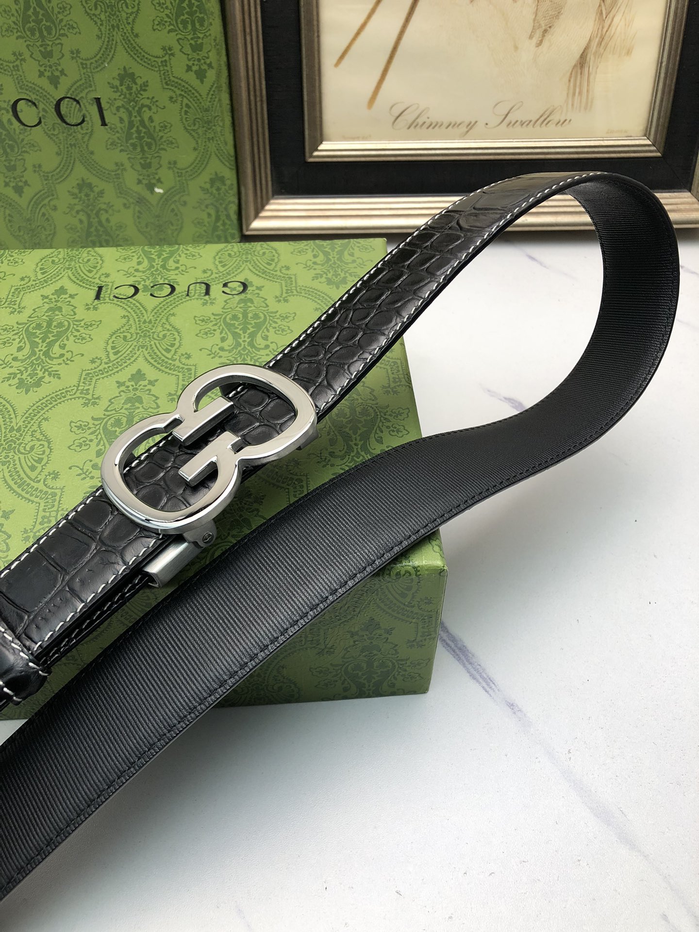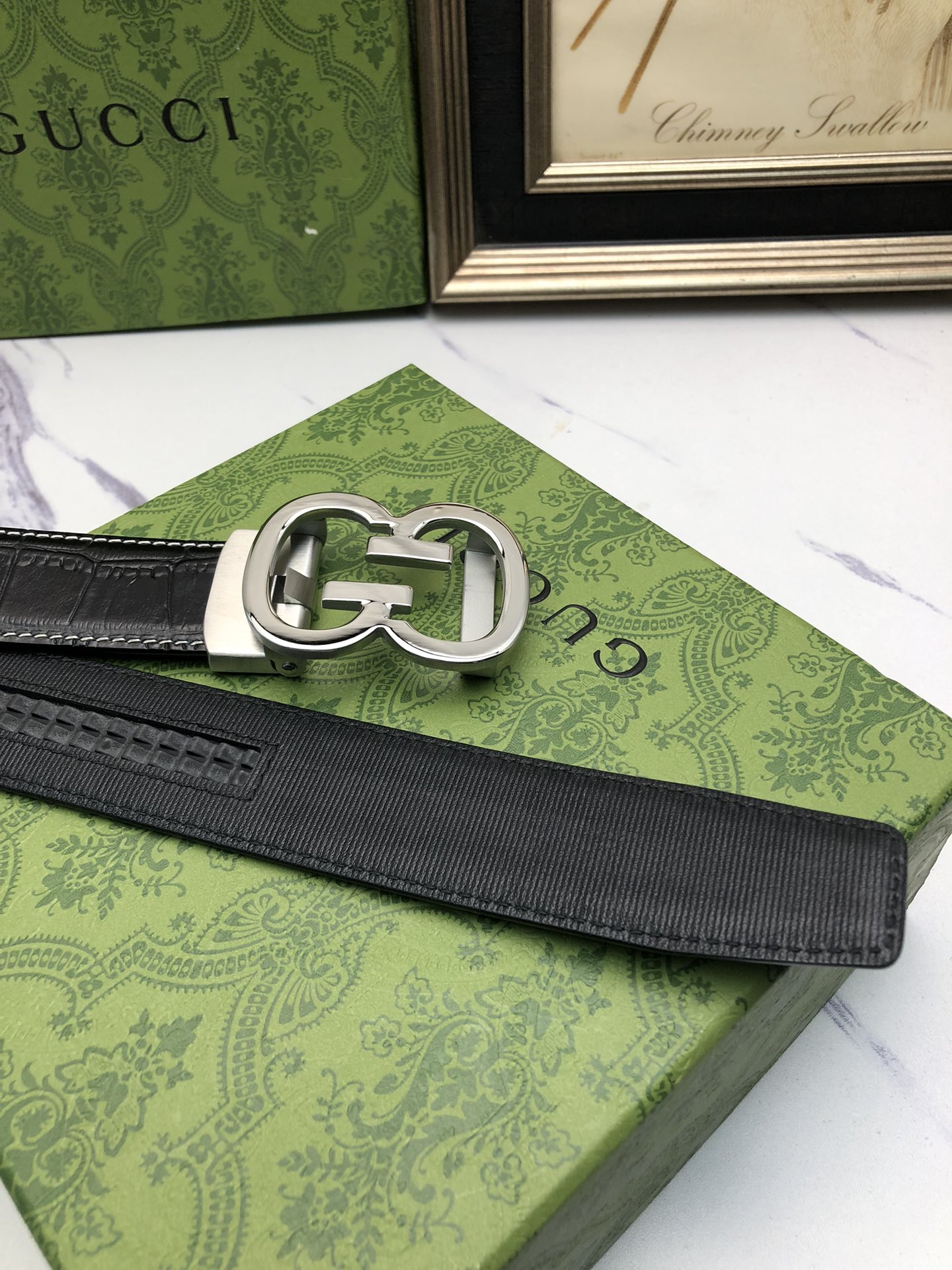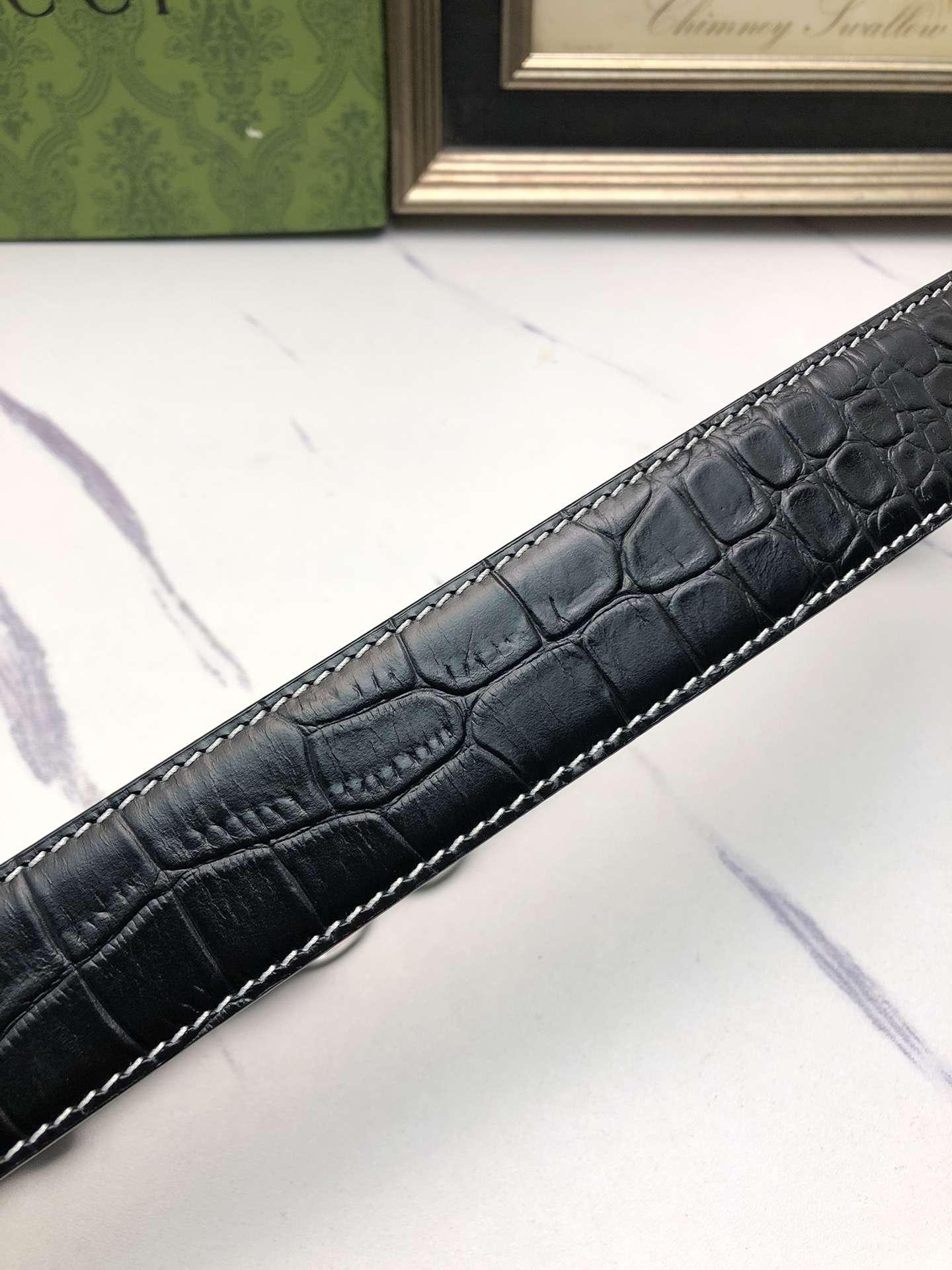 这款皮带是AAAAA 1:1 质量 (非常棒). 使用了和原版一模一样的材料. 商标部分也保持了和古奇/Gucci一样. 图片拍摄是实物皮带拍摄, 您所收到的实物保证和我们图片一模一样.