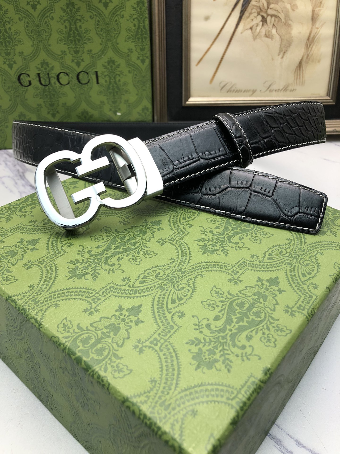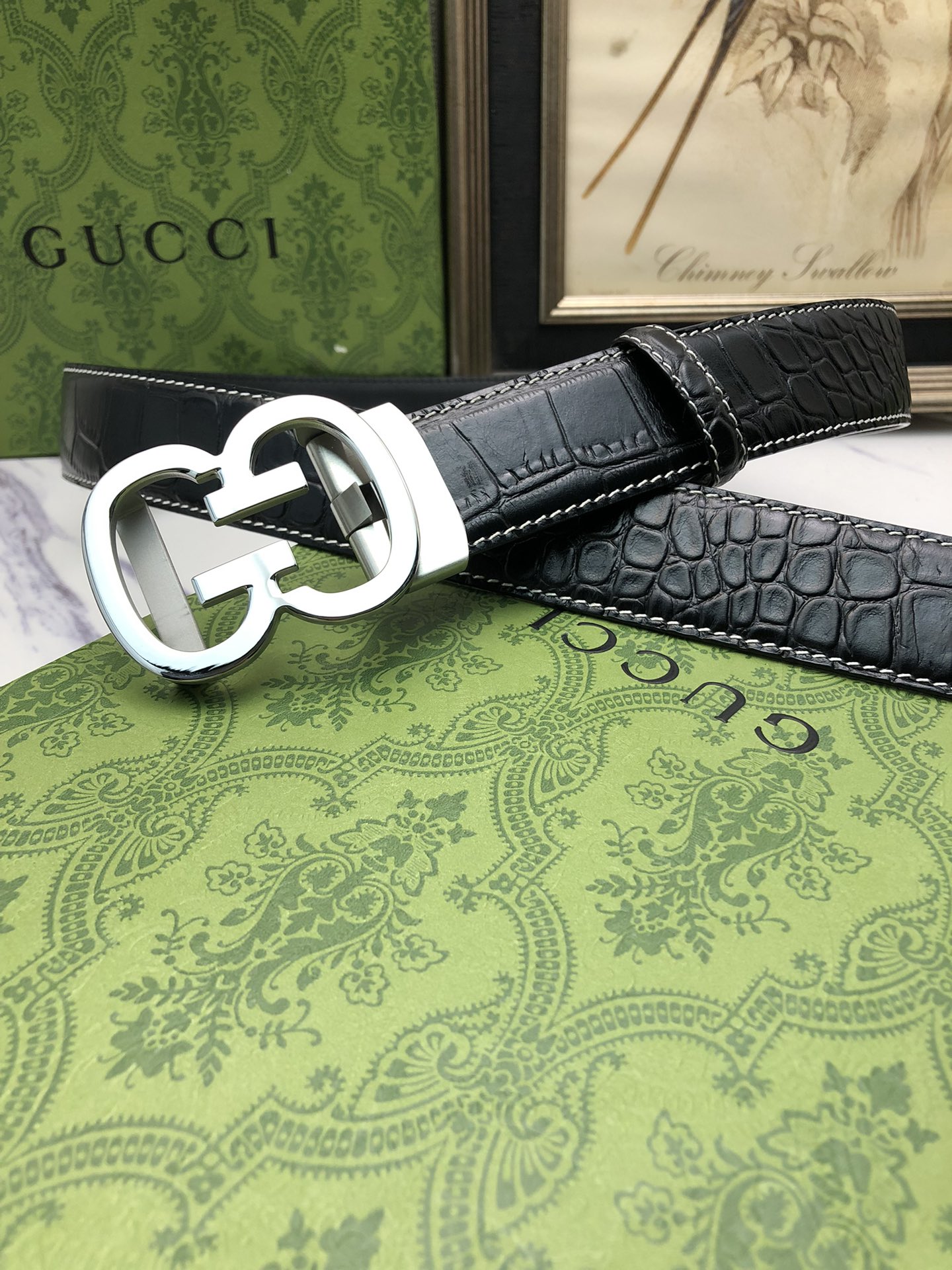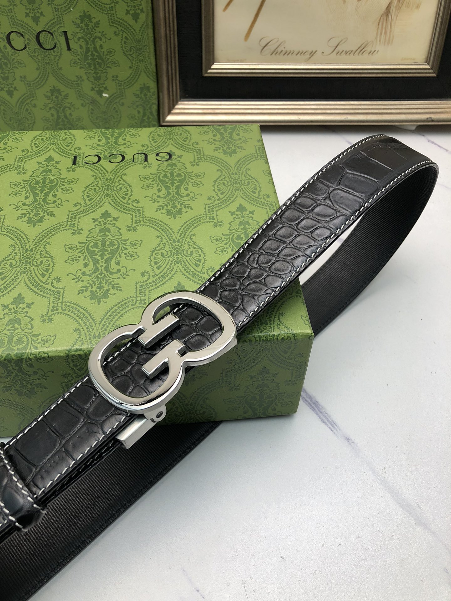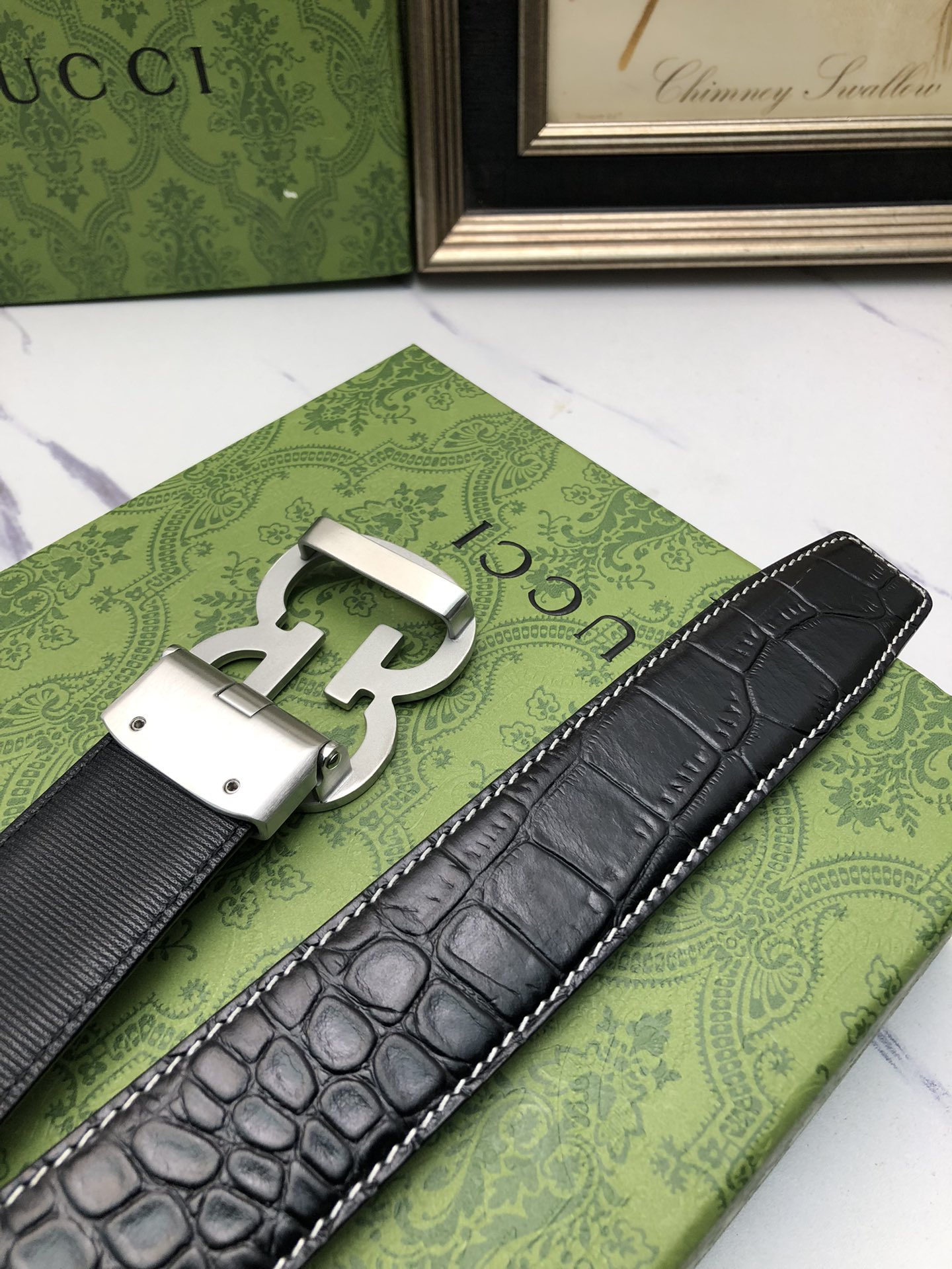 这款皮带是AAAAA 1:1 质量 (非常棒). 使用了和原版一模一样的材料. 商标部分也保持了和古奇/Gucci一样. 图片拍摄是实物皮带拍摄, 您所收到的实物保证和我们图片一模一样.