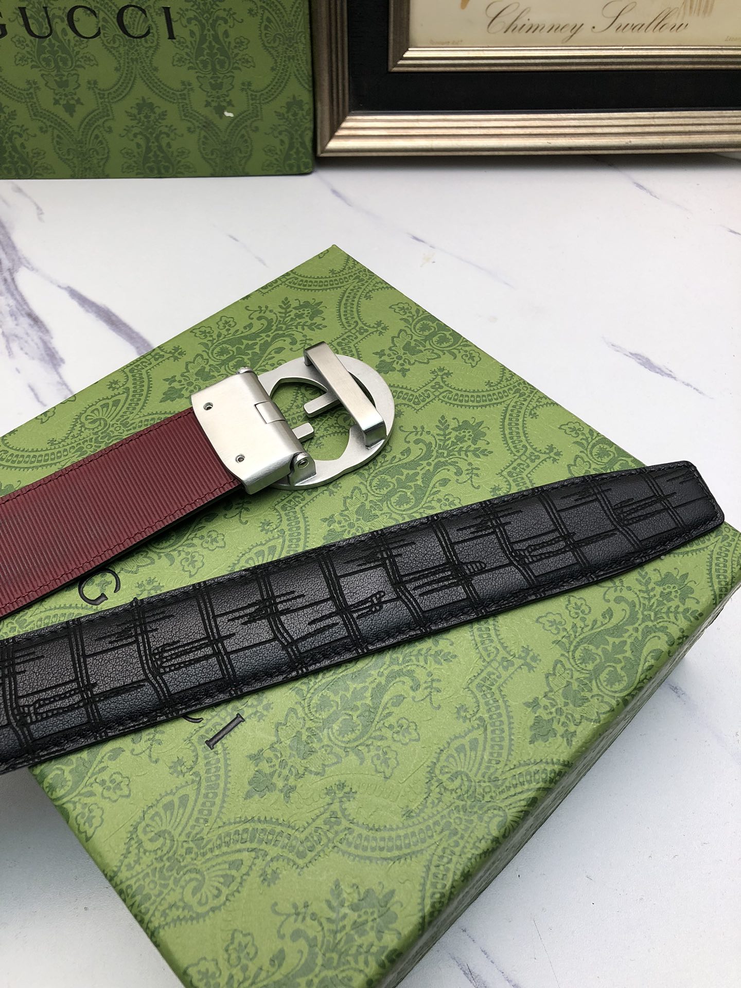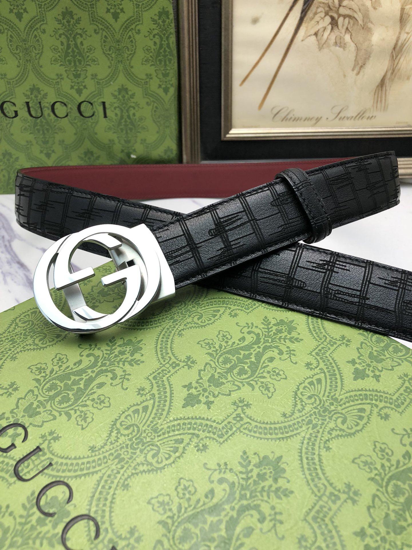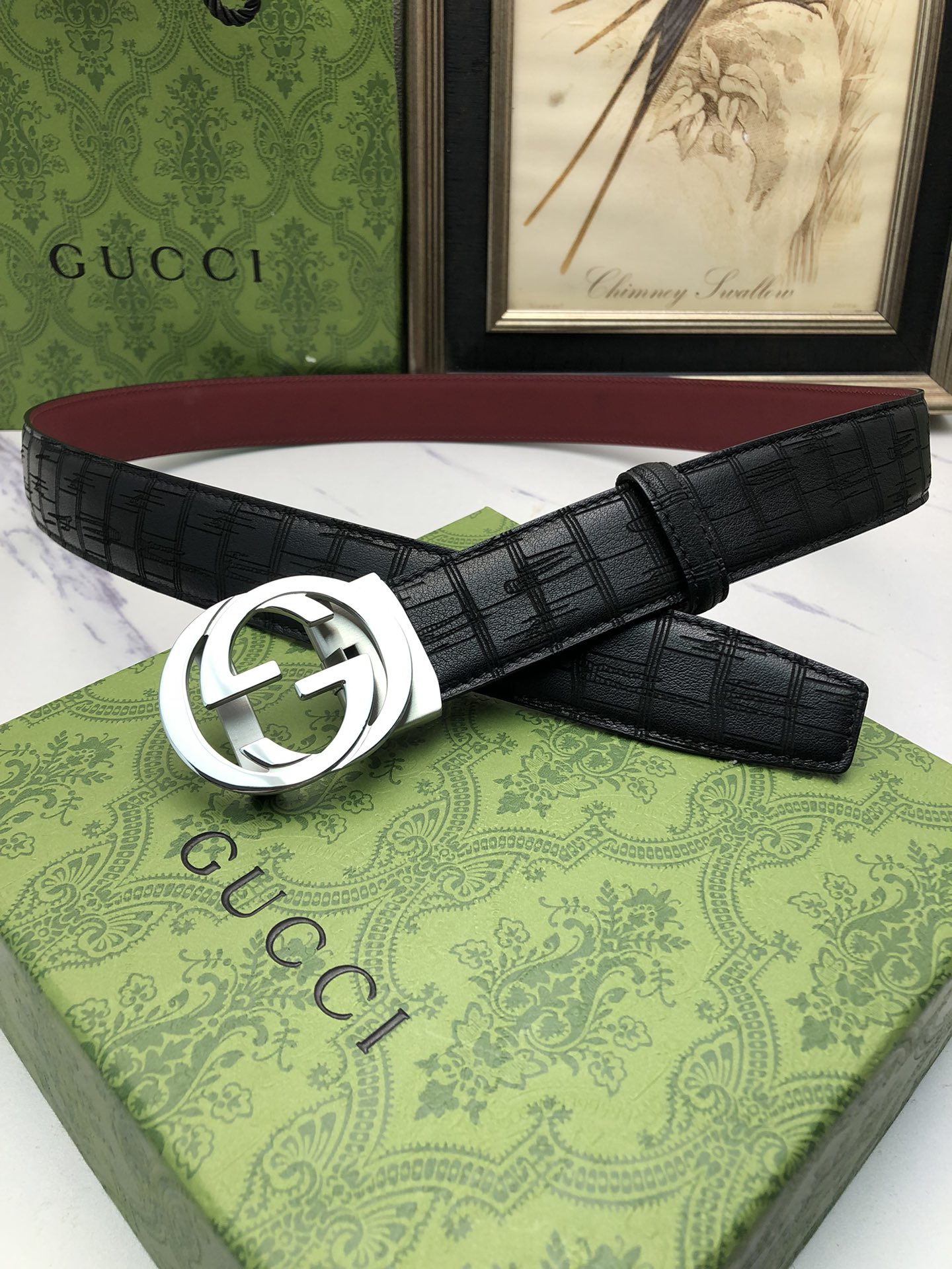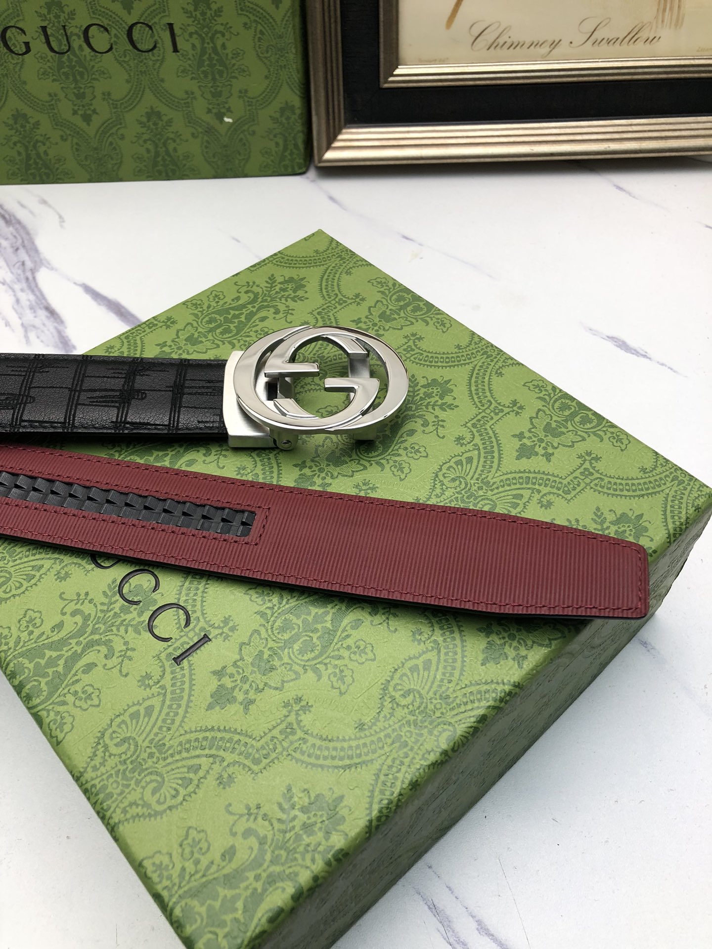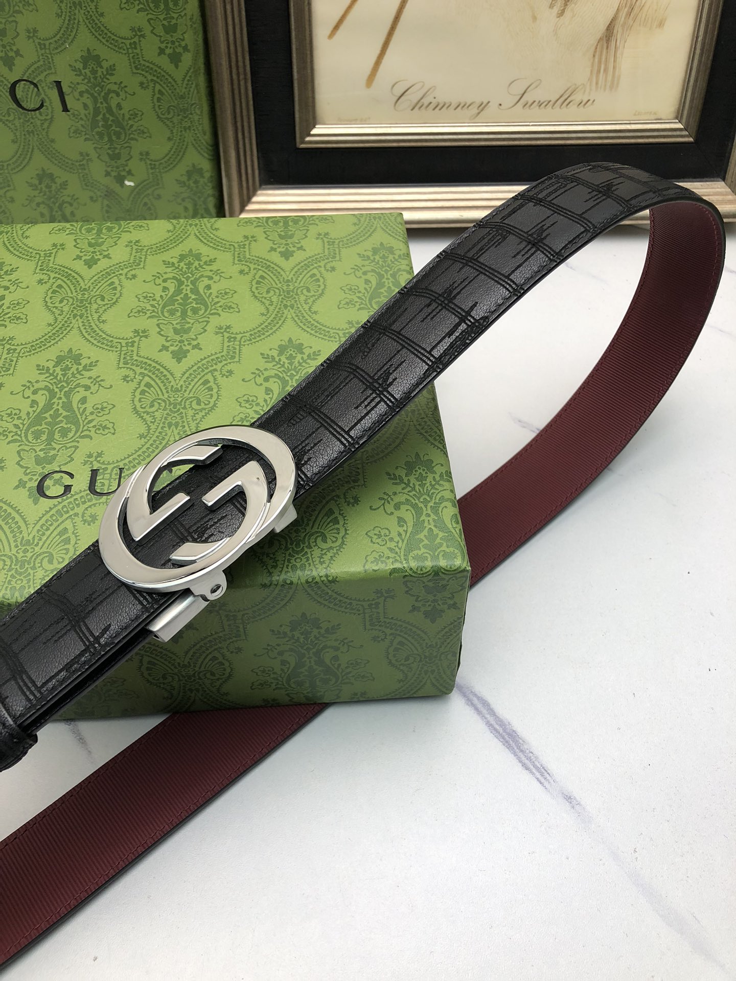 这款皮带是AAAAA 1:1 质量 (非常棒). 使用了和原版一模一样的材料. 商标部分也保持了和古奇/Gucci一样. 图片拍摄是实物皮带拍摄, 您所收到的实物保证和我们图片一模一样.