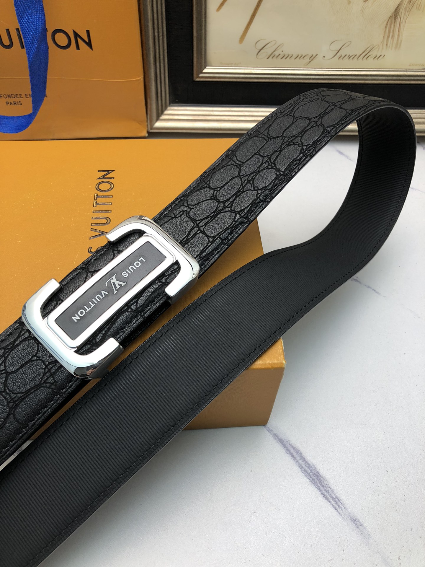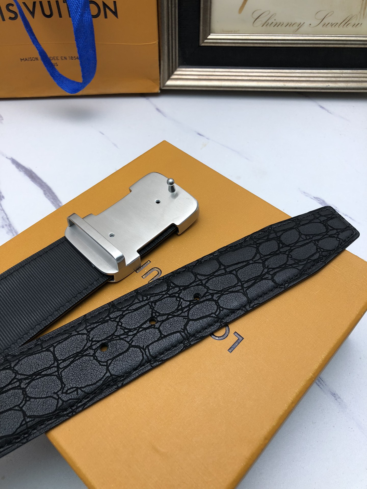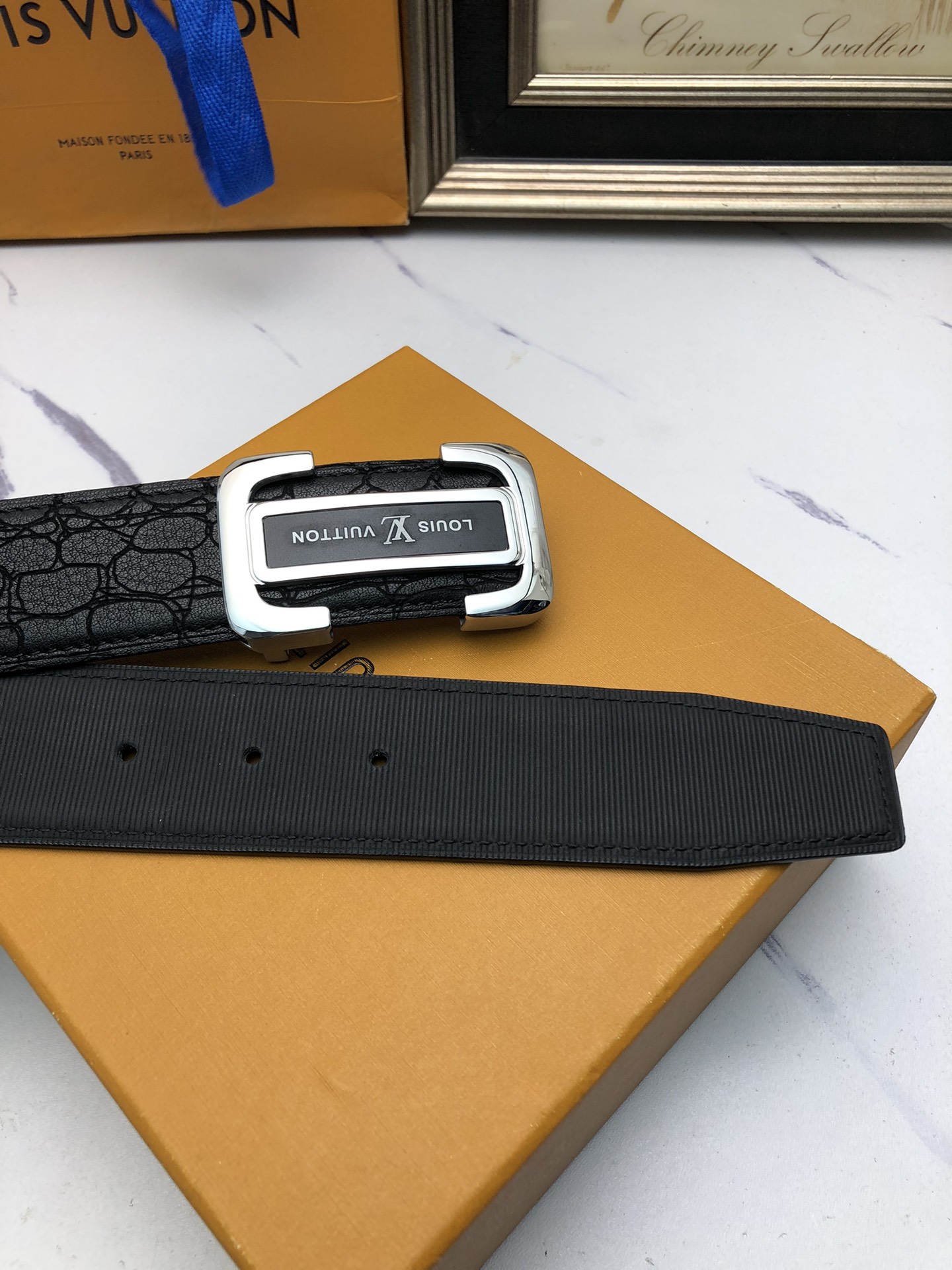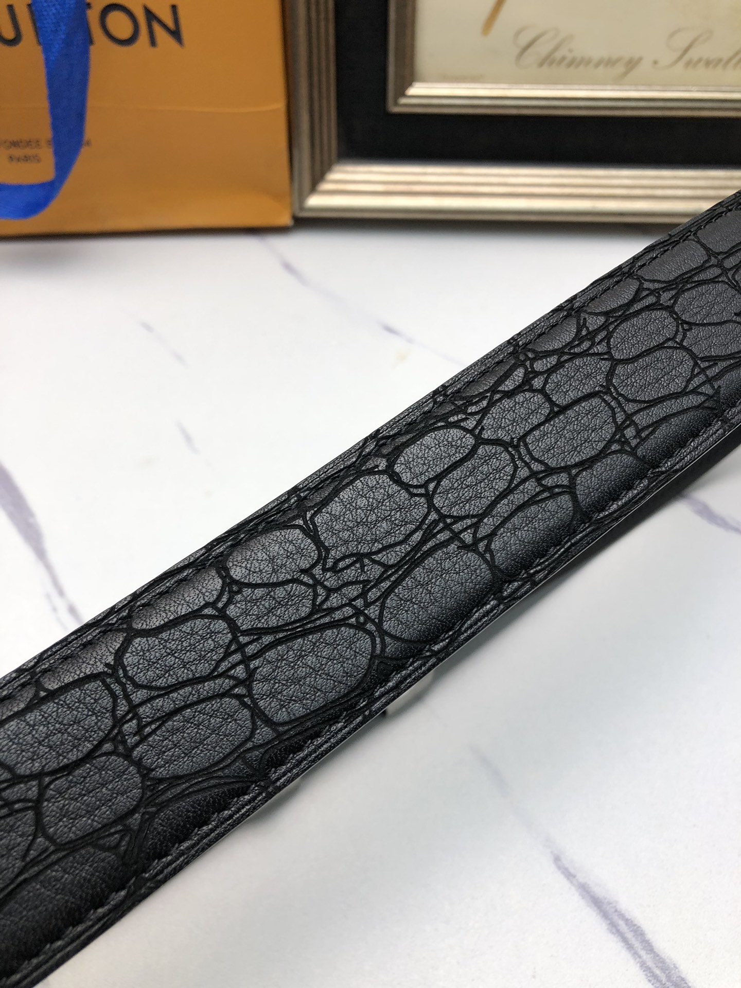 这款皮带是AAAAA 1:1 质量 (非常棒). 使用了和原版一模一样的材料. 商标部分也保持了和一样. 图片拍摄是实物皮带拍摄, 您所收到的实物保证和我们图片一模一样.