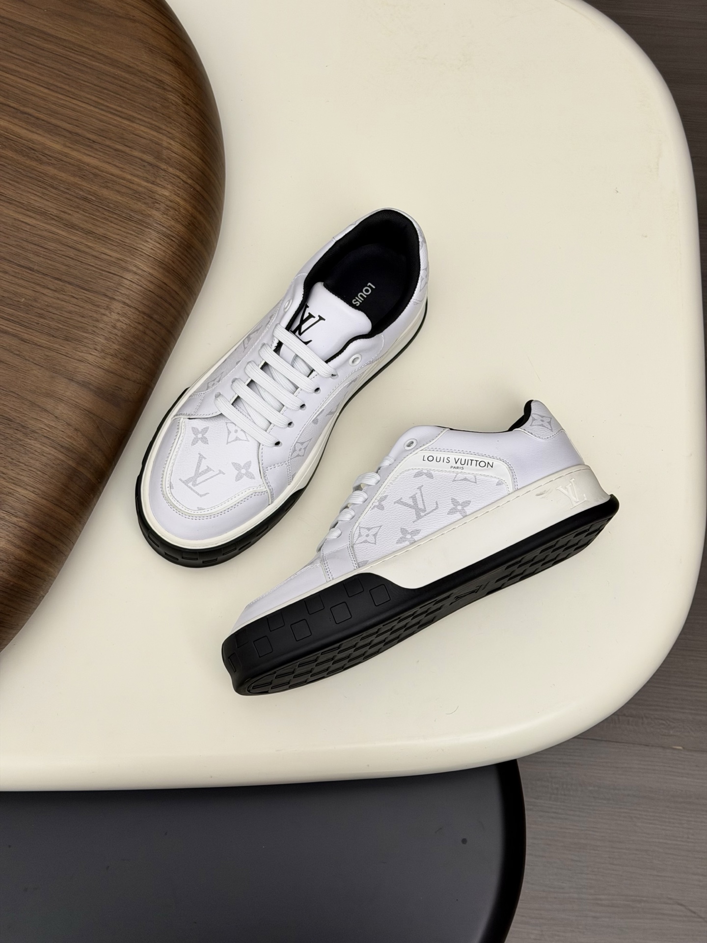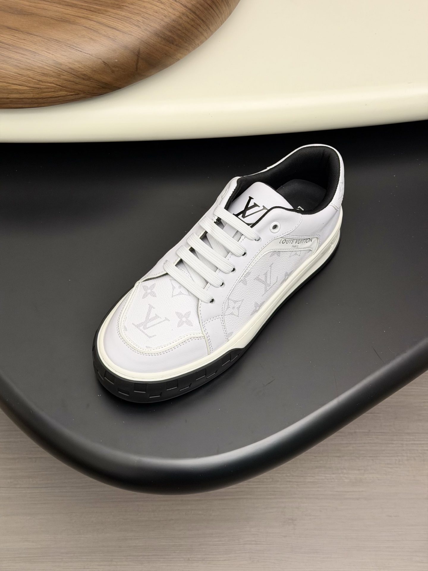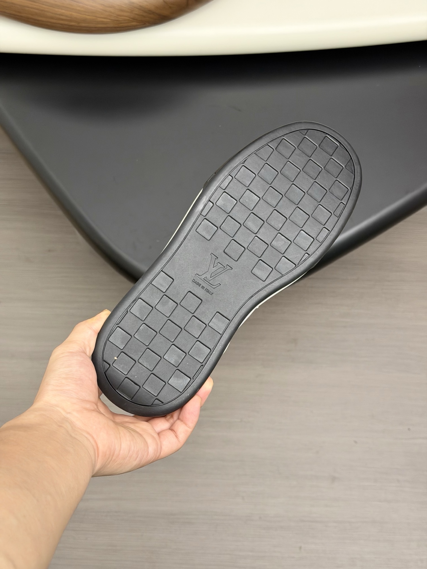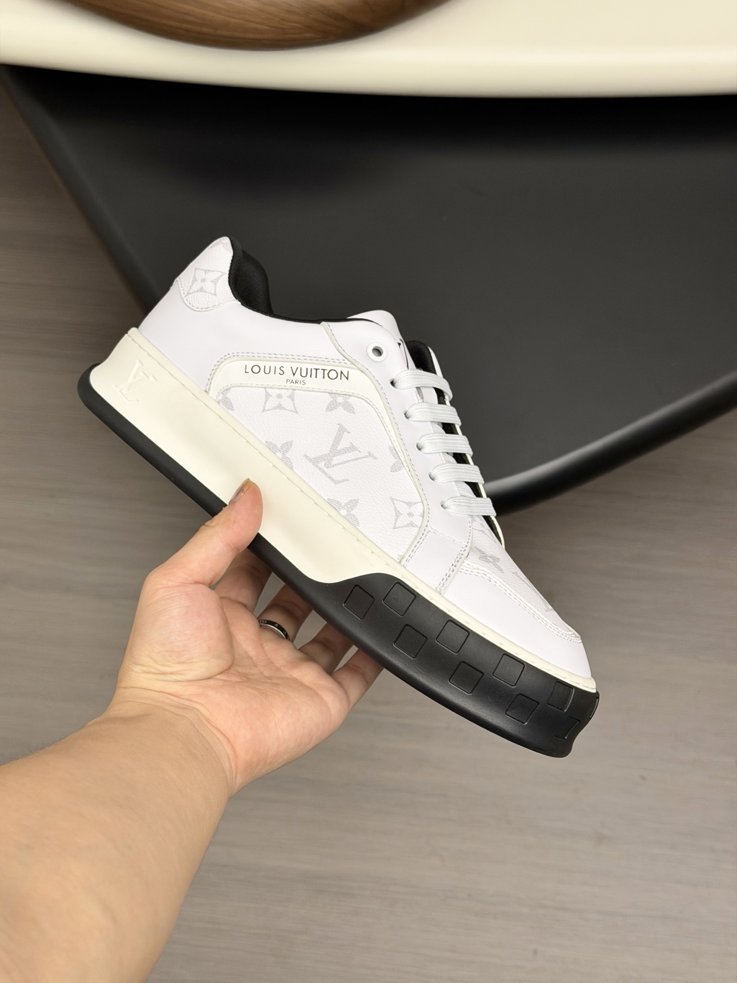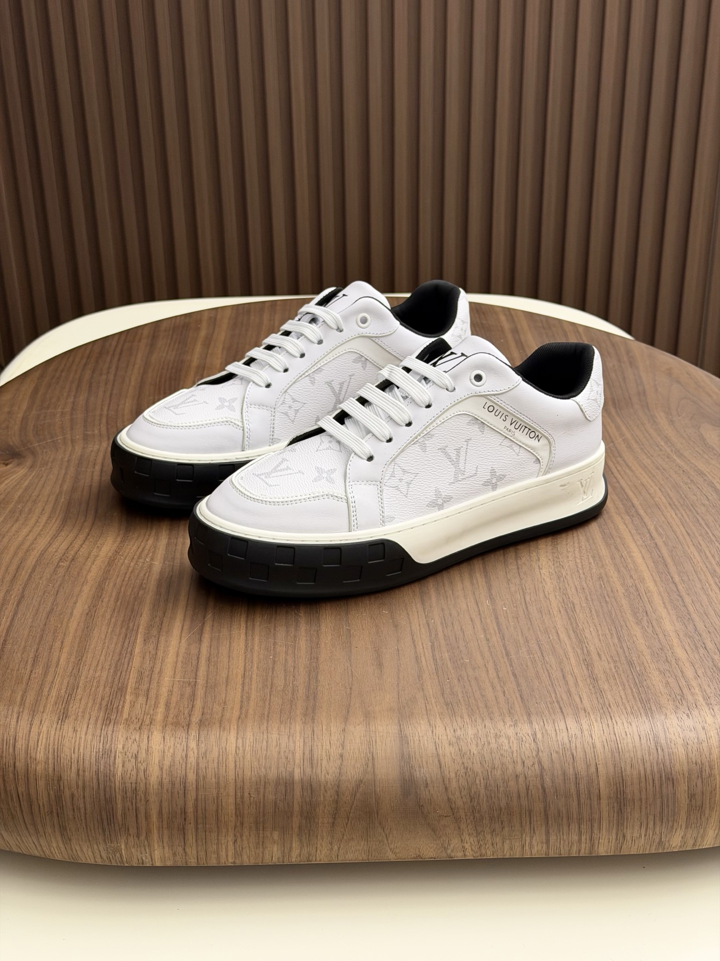 这款鞋子是AAAAA 1:1 质量 (非常棒). 使用了和原版一模一样的材料. 商标部分也保持了和路易威登/Louis Vuitton一样. 图片拍摄是实物鞋子拍摄, 您所收到的实物保证和我们图片一模一样.