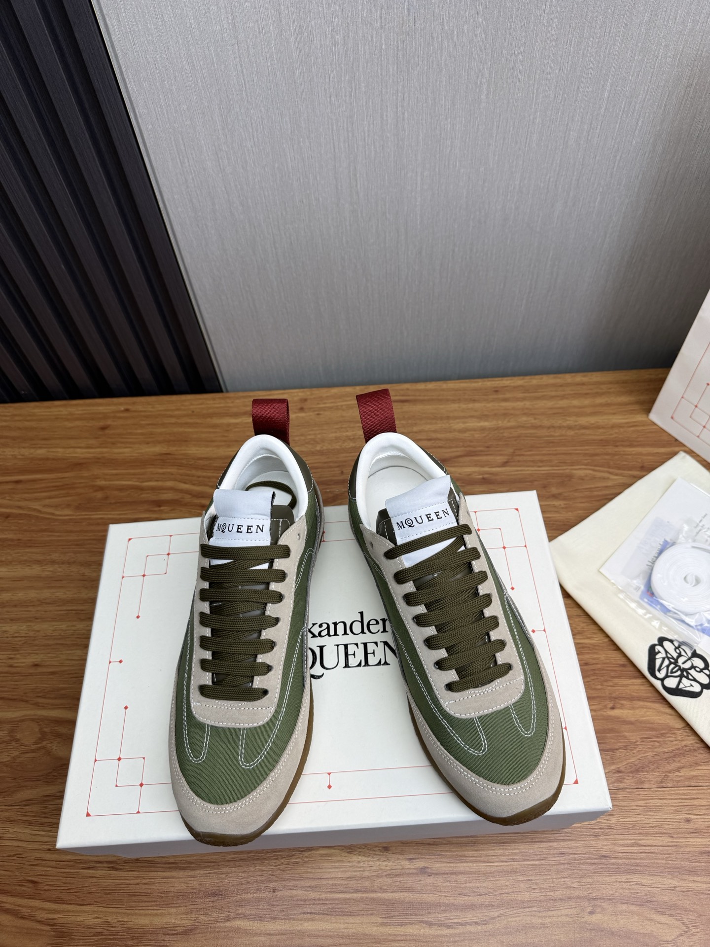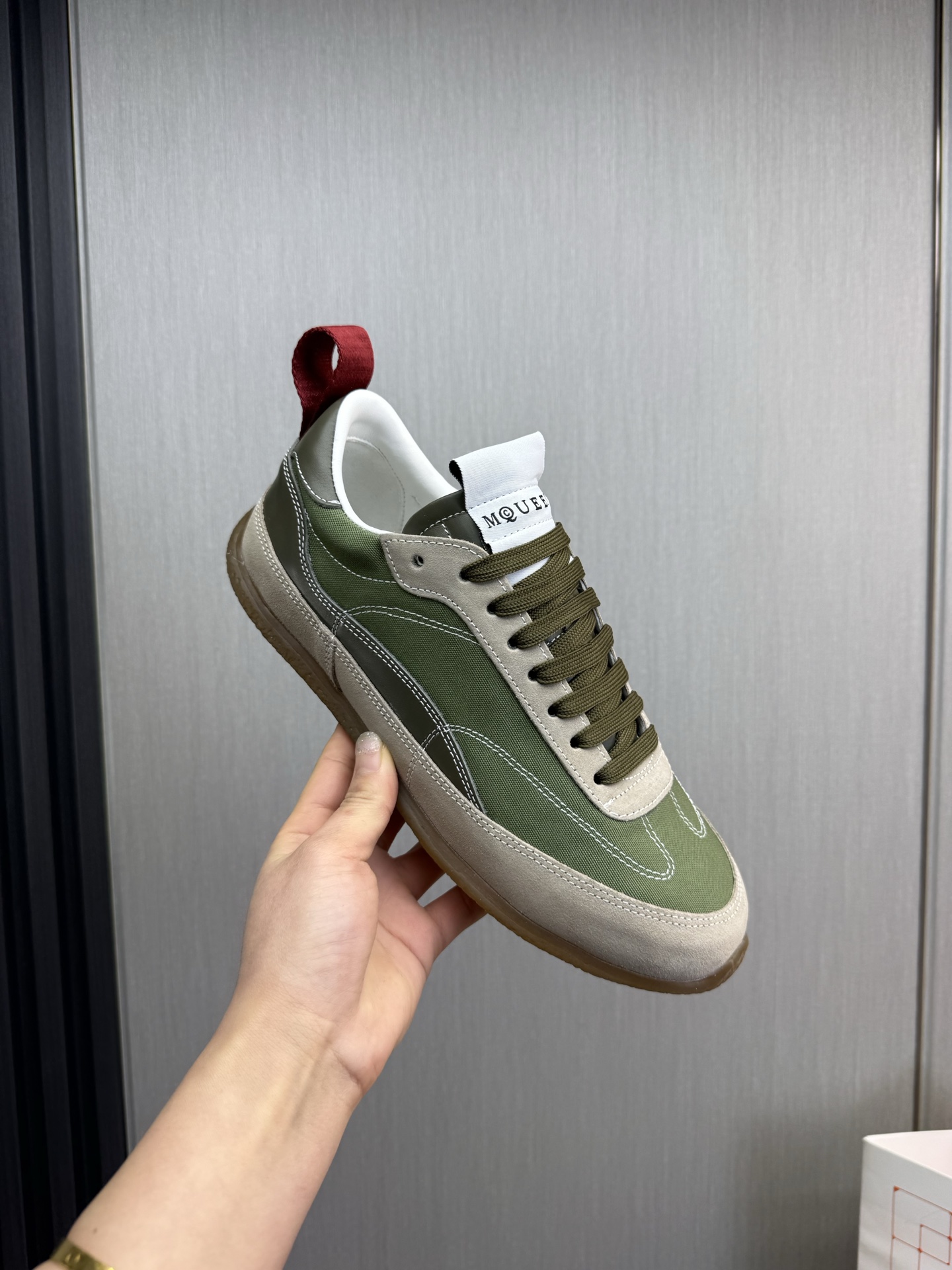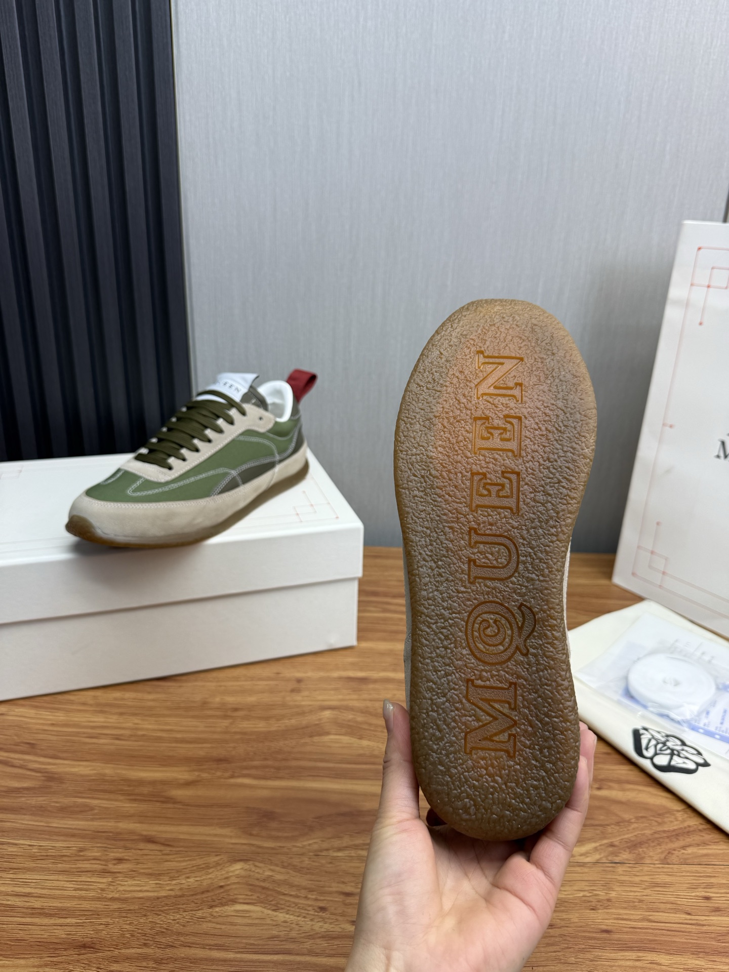 这款鞋子是AAAAA 1:1 质量 (非常棒). 使用了和原版一模一样的材料. 商标部分也保持了和亚历山大·麦昆/McQueen一样. 图片拍摄是实物鞋子拍摄, 您所收到的实物保证和我们图片一模一样.