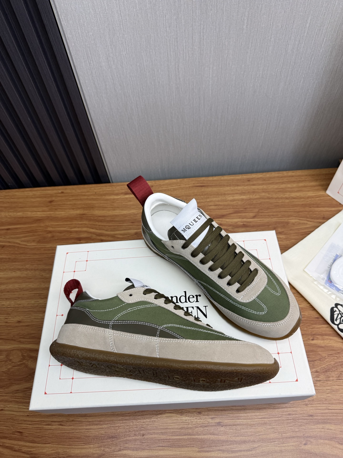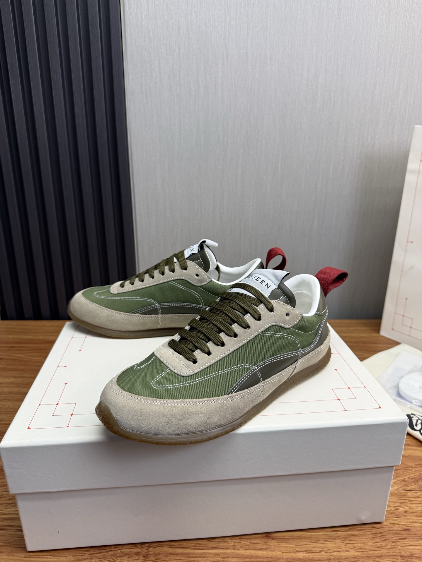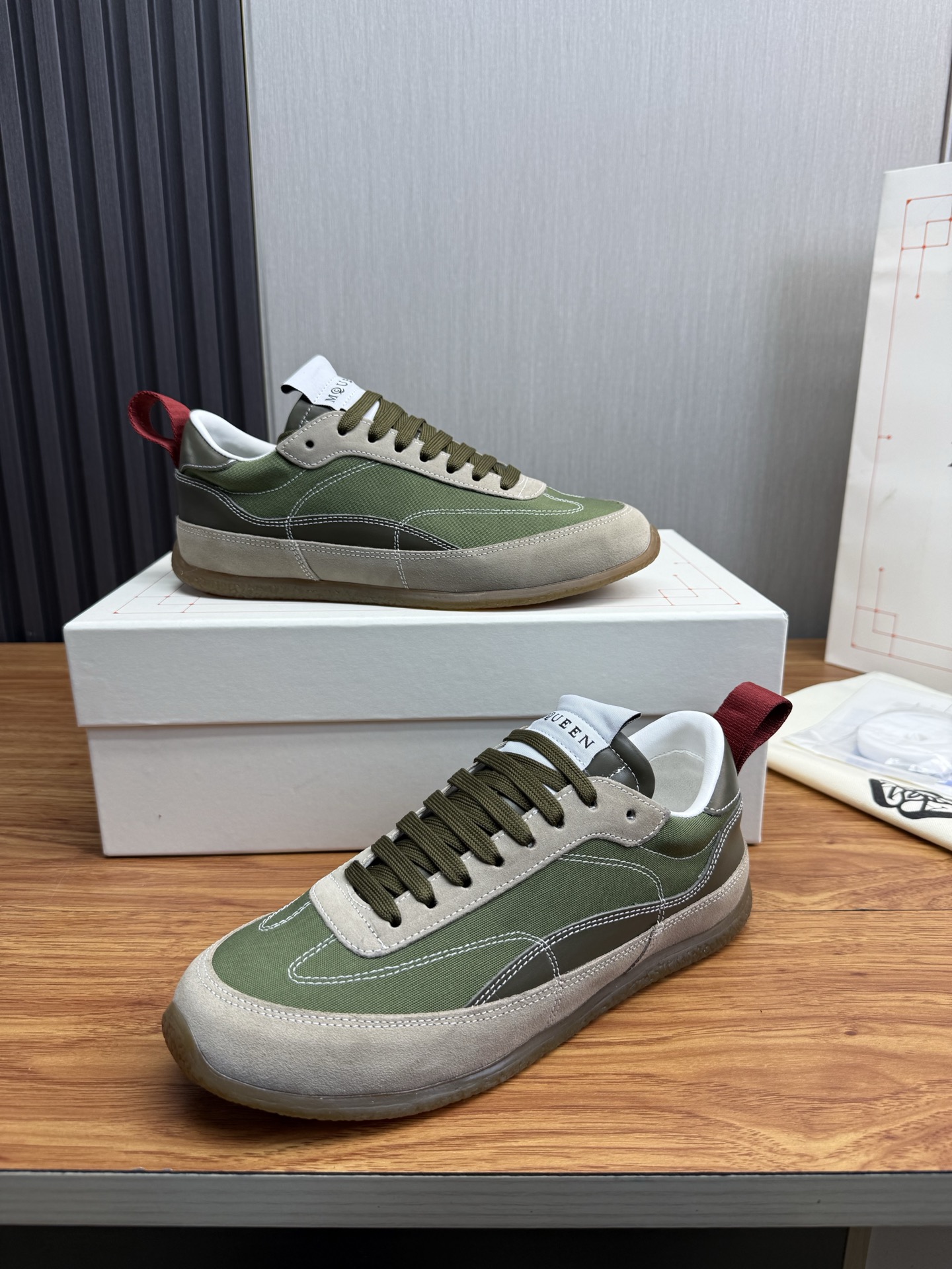 这款鞋子是AAAAA 1:1 质量 (非常棒). 使用了和原版一模一样的材料. 商标部分也保持了和亚历山大·麦昆/McQueen一样. 图片拍摄是实物鞋子拍摄, 您所收到的实物保证和我们图片一模一样.