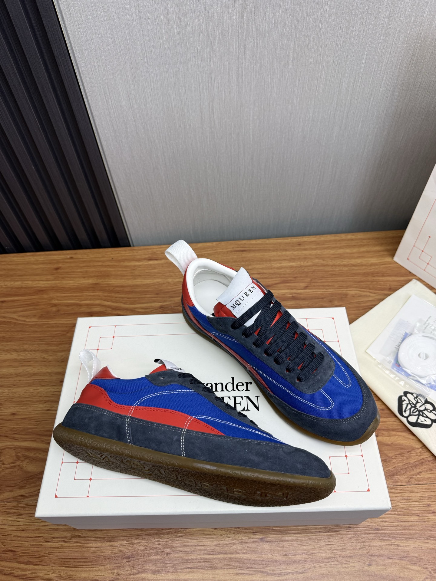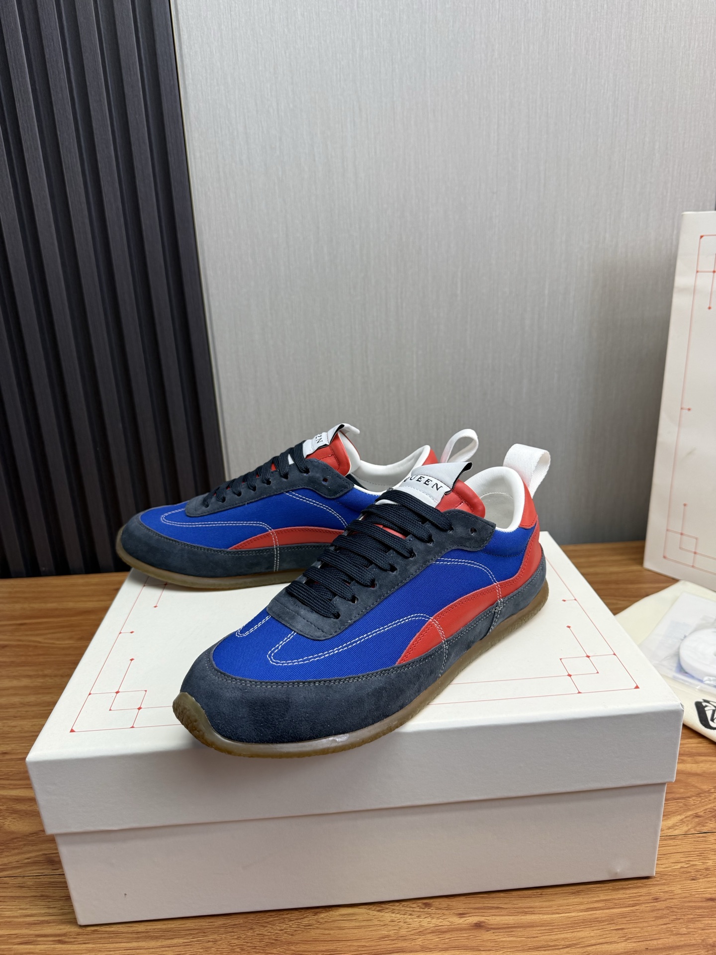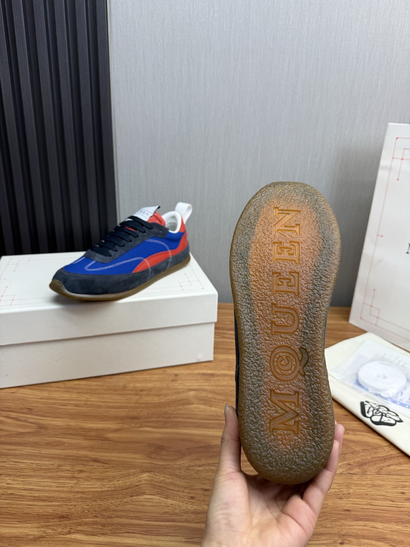 这款鞋子是AAAAA 1:1 质量 (非常棒). 使用了和原版一模一样的材料. 商标部分也保持了和亚历山大·麦昆/McQueen一样. 图片拍摄是实物鞋子拍摄, 您所收到的实物保证和我们图片一模一样.