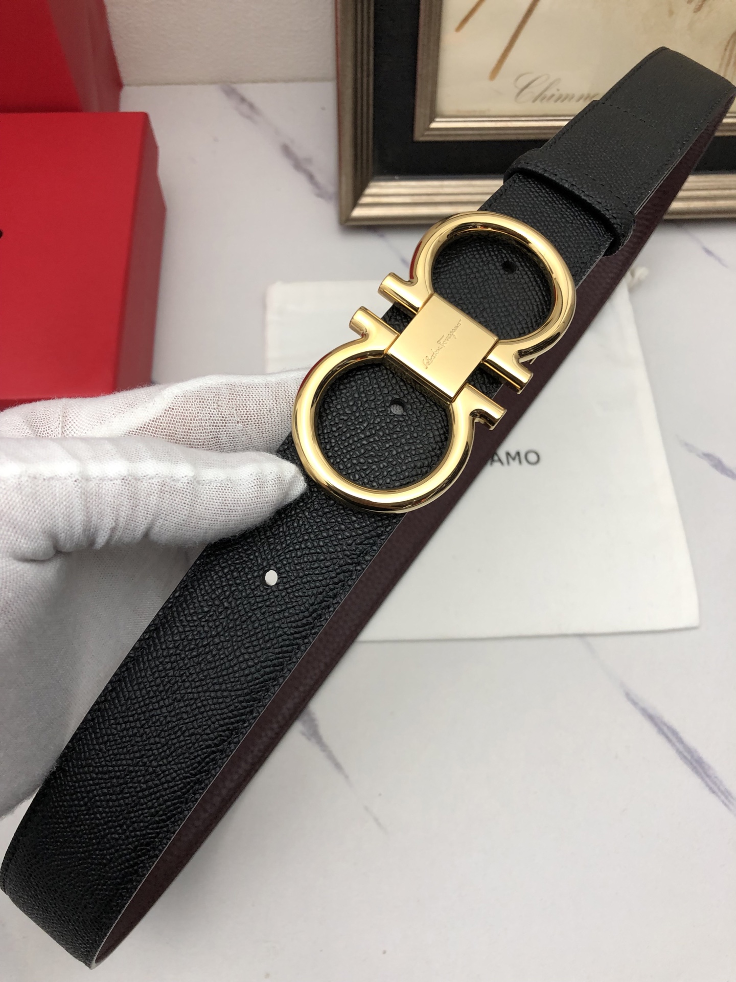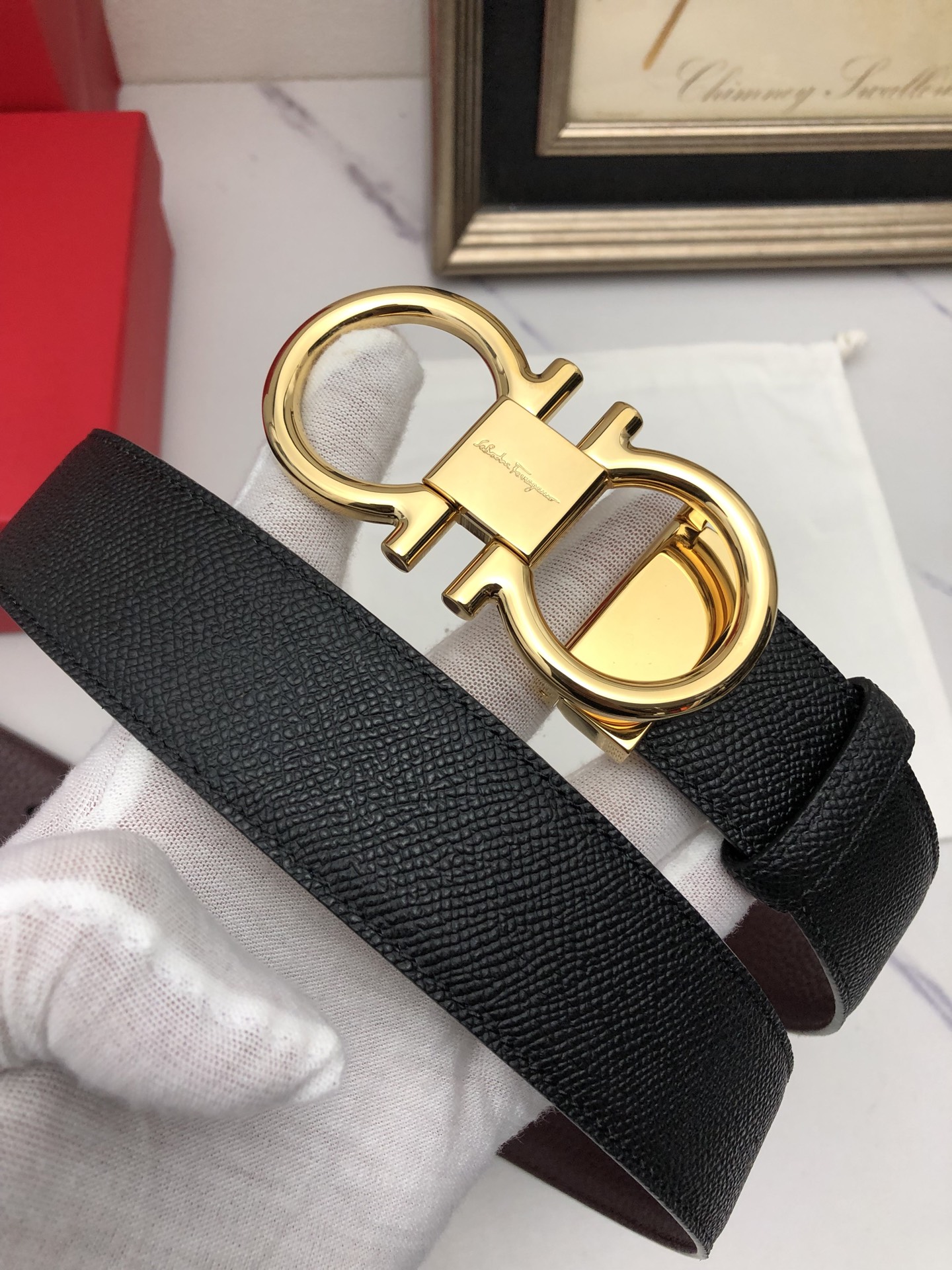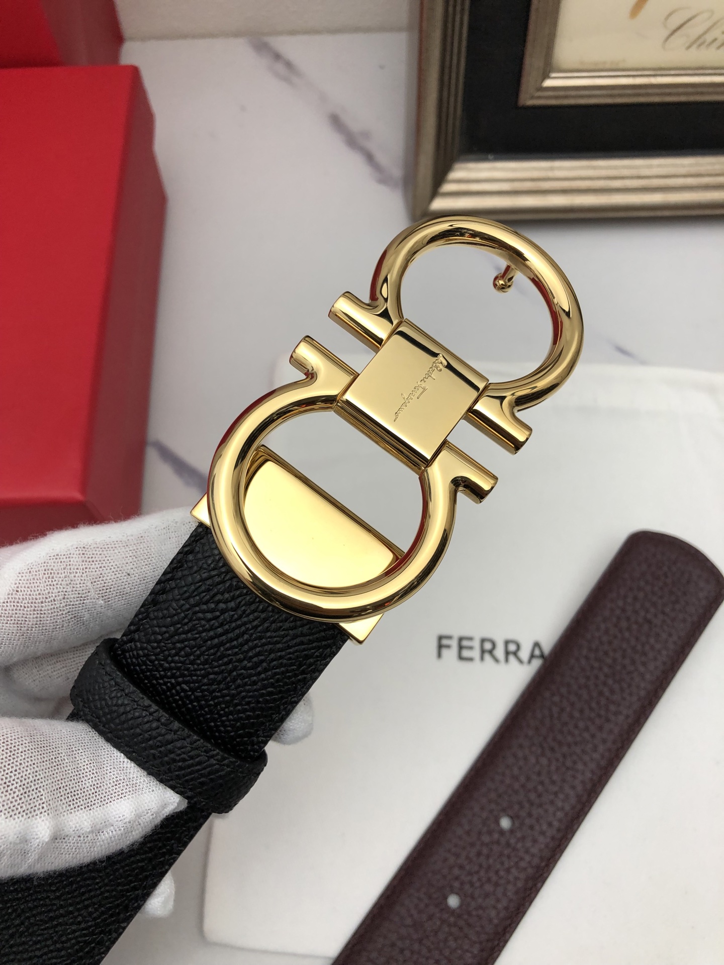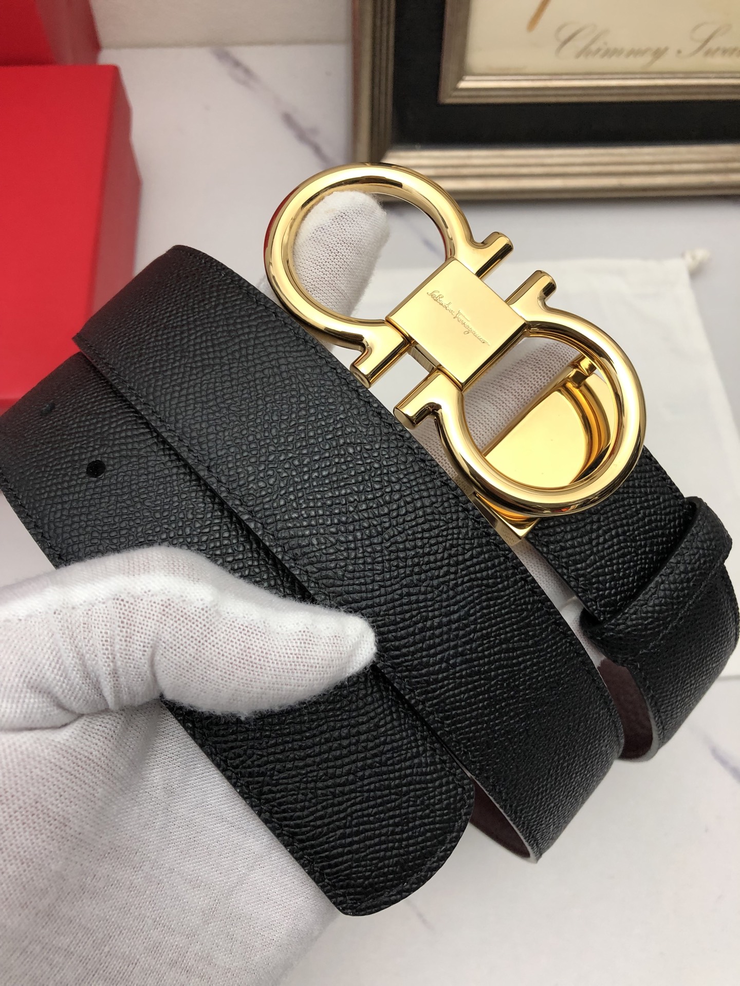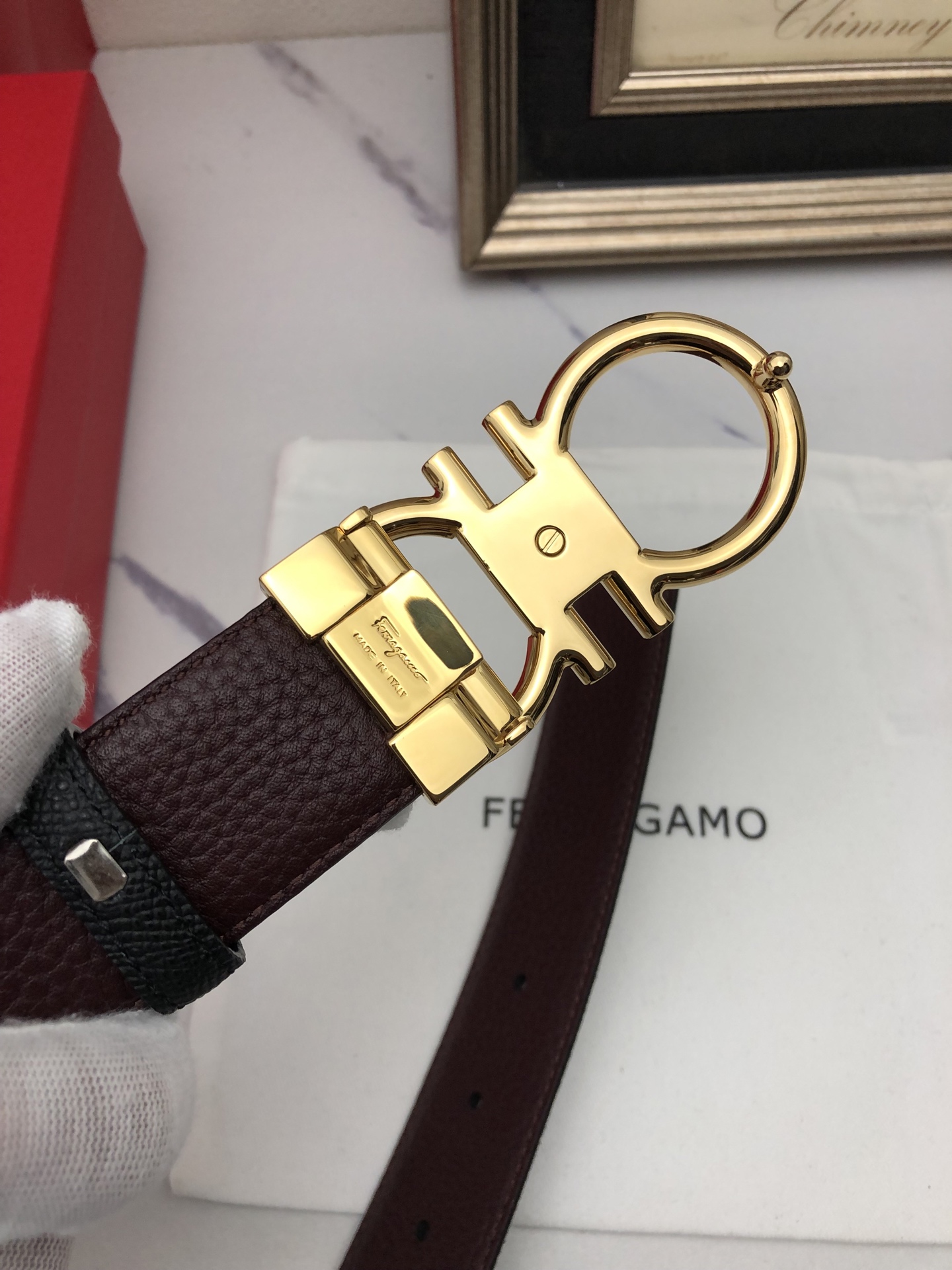 这款皮带是AAAAA 1:1 质量 (非常棒). 使用了和原版一模一样的材料. 商标部分也保持了和菲拉格慕/Salvatore Ferragamo一样. 图片拍摄是实物皮带拍摄, 您所收到的实物保证和我们图片一模一样.