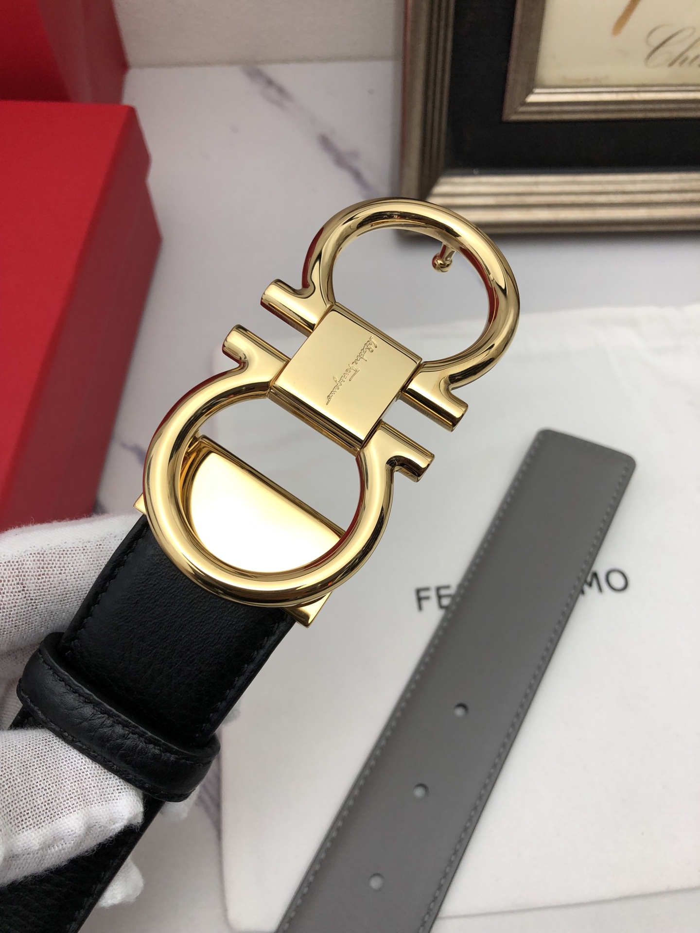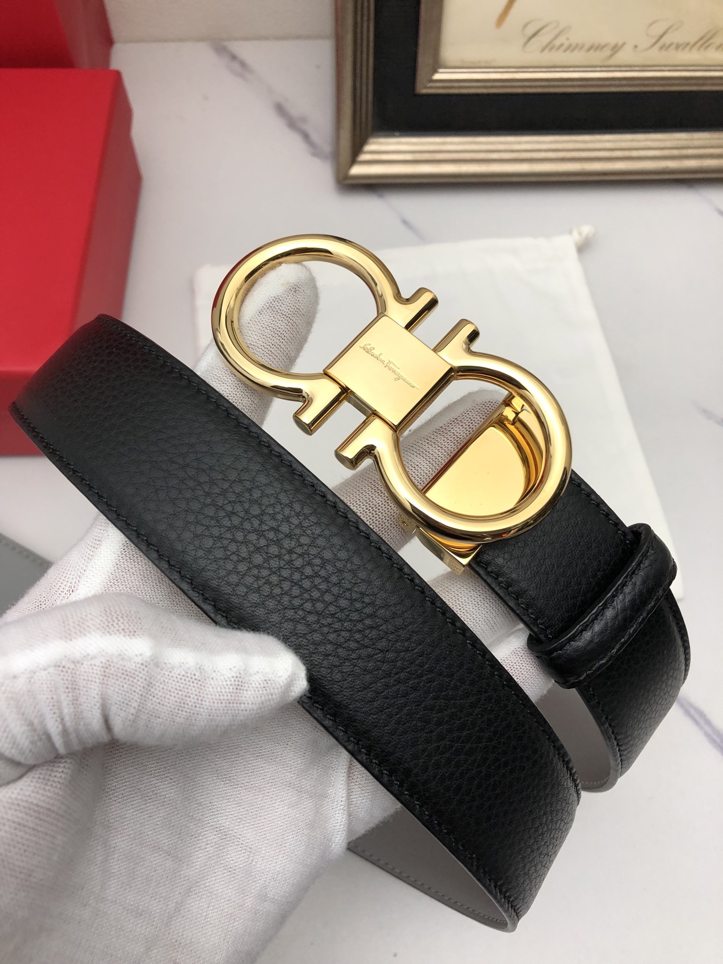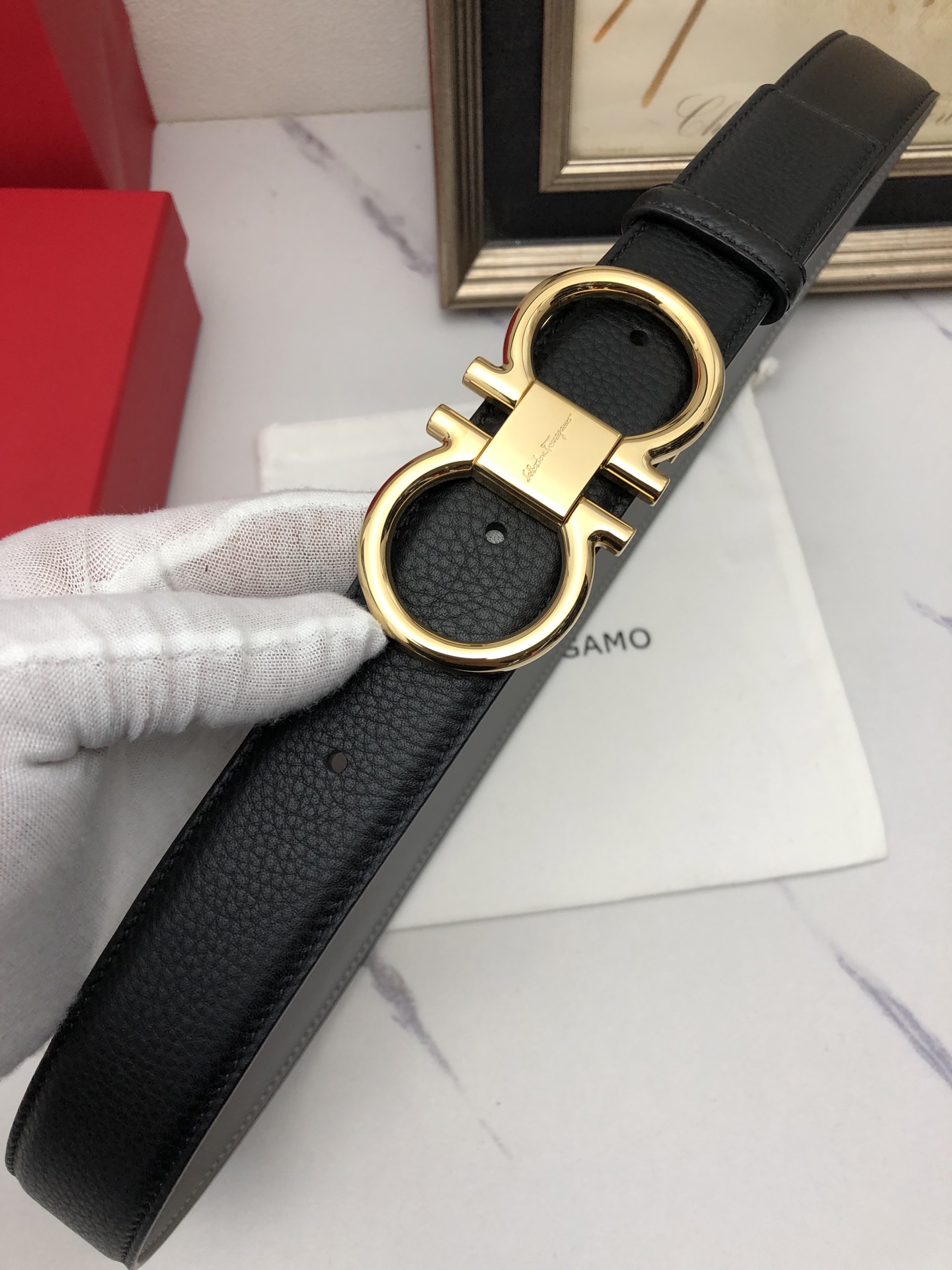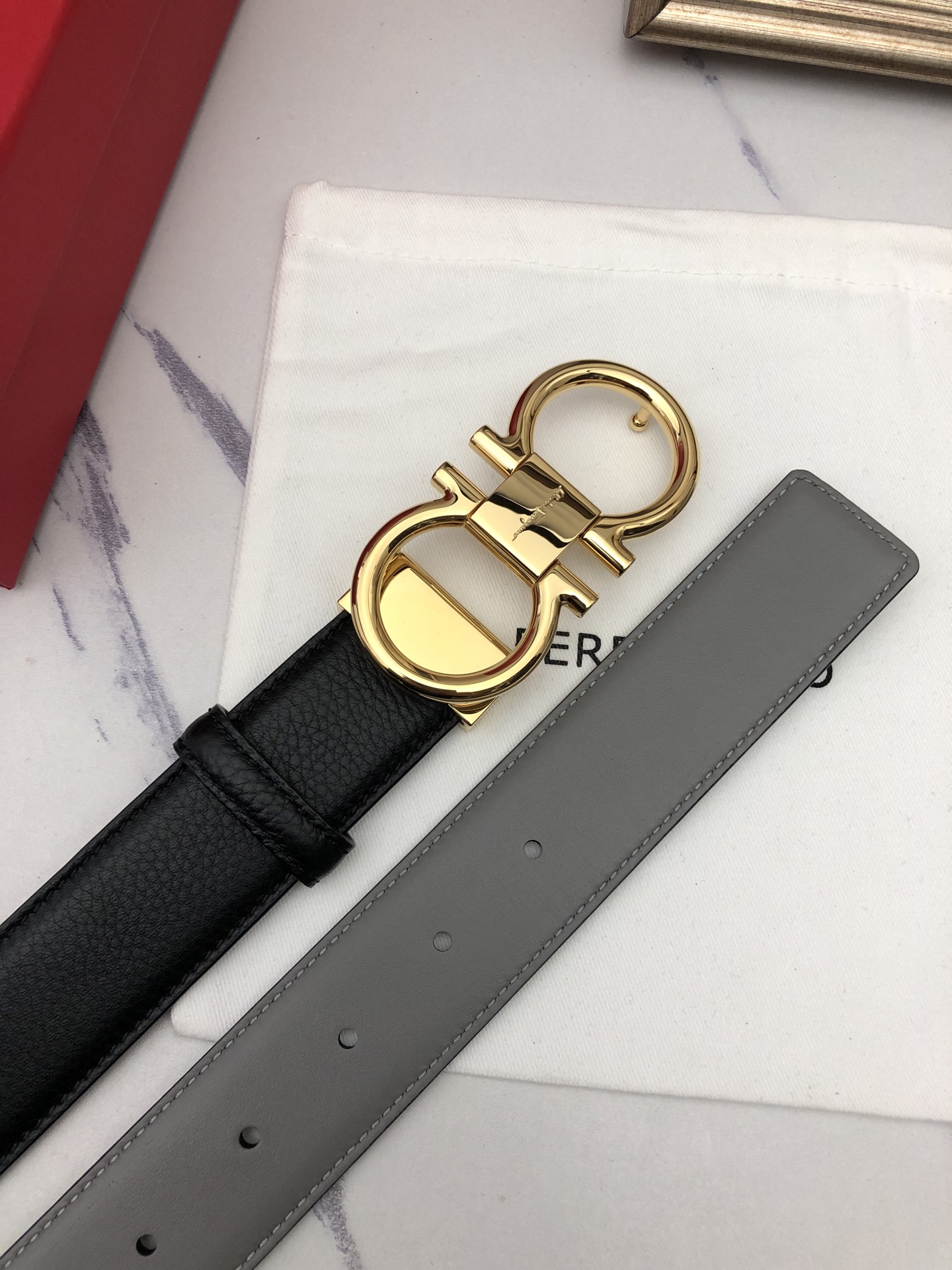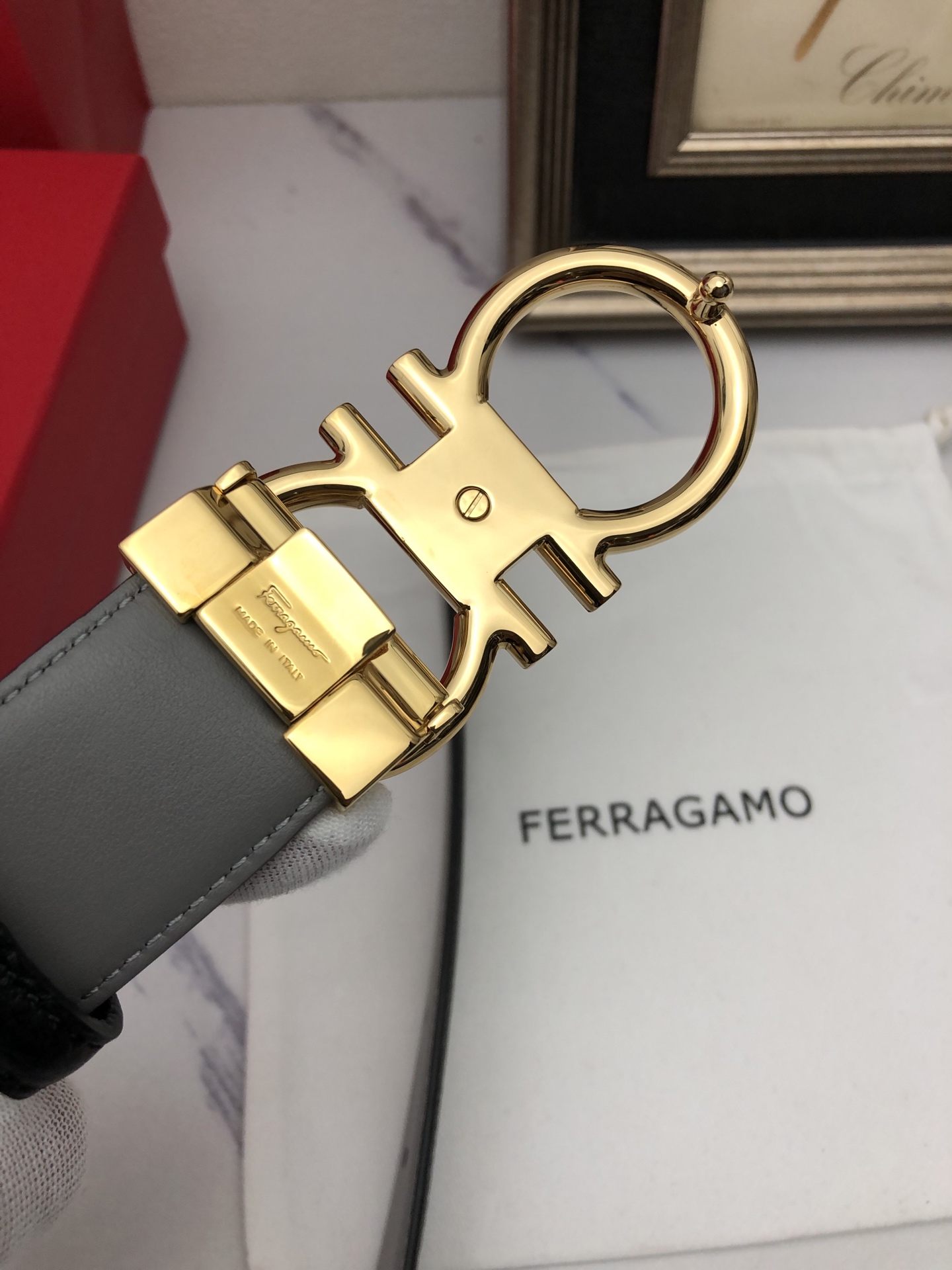 这款皮带是AAAAA 1:1 质量 (非常棒). 使用了和原版一模一样的材料. 商标部分也保持了和菲拉格慕/Salvatore Ferragamo一样. 图片拍摄是实物皮带拍摄, 您所收到的实物保证和我们图片一模一样.
