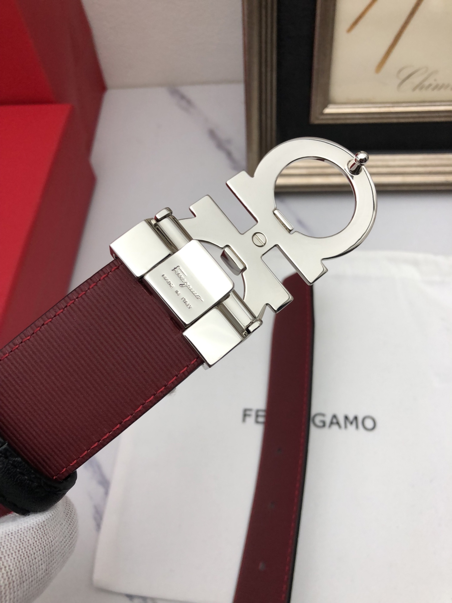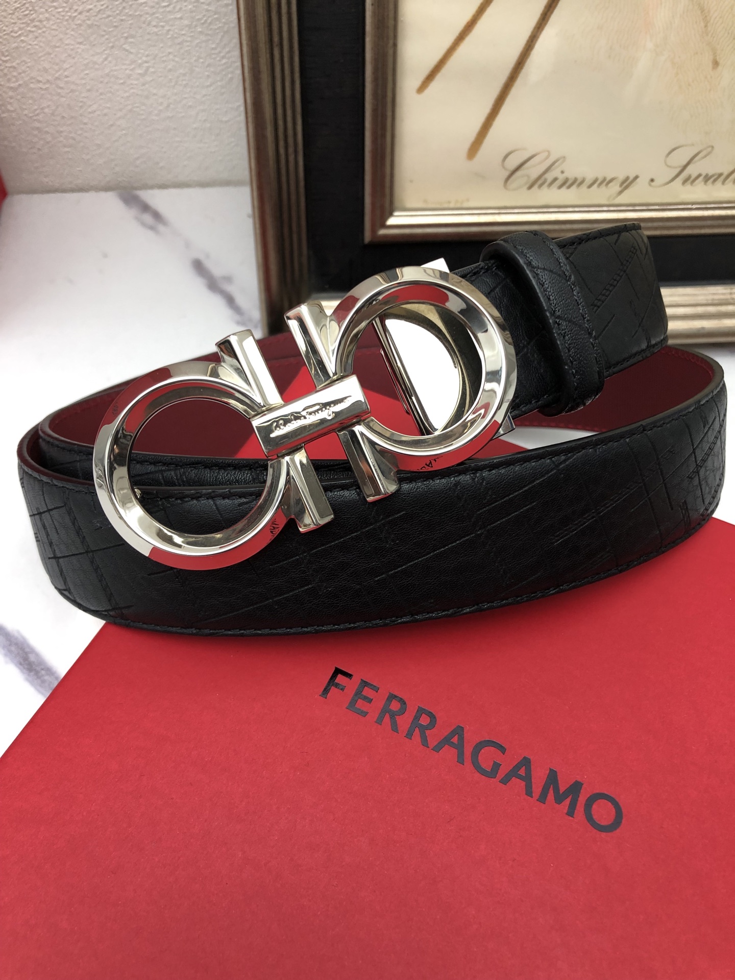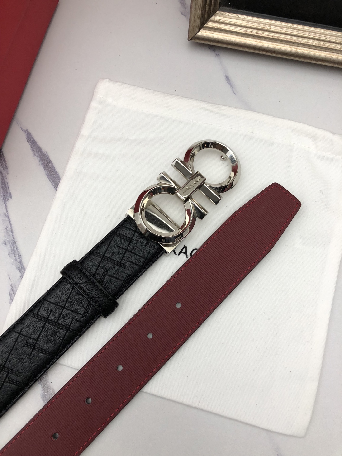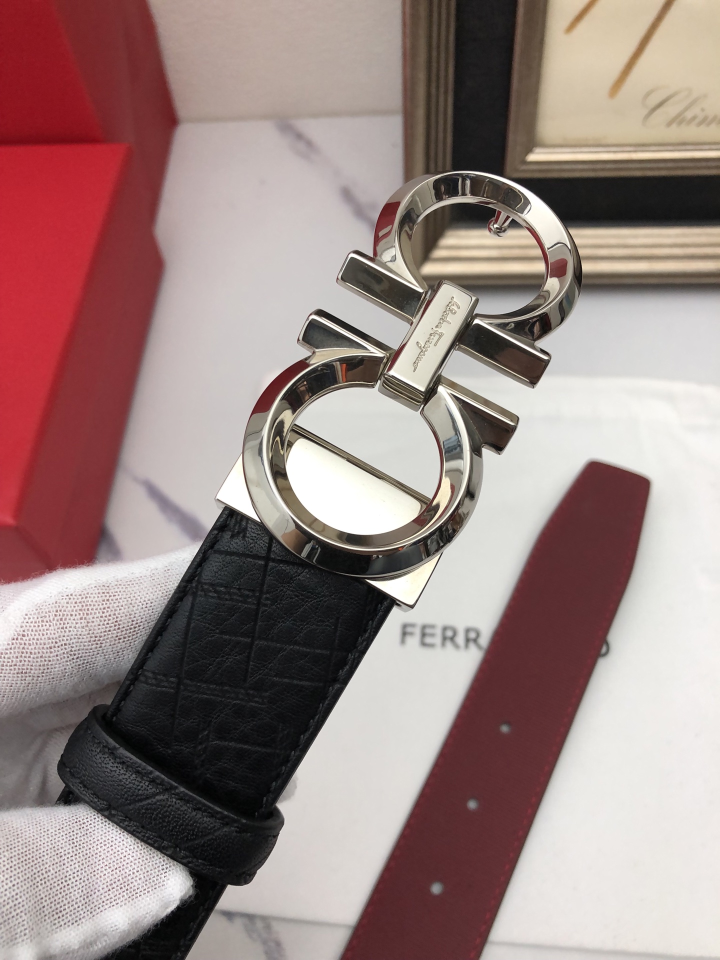 这款皮带是AAAAA 1:1 质量 (非常棒). 使用了和原版一模一样的材料. 商标部分也保持了和菲拉格慕/Salvatore Ferragamo一样. 图片拍摄是实物皮带拍摄, 您所收到的实物保证和我们图片一模一样.